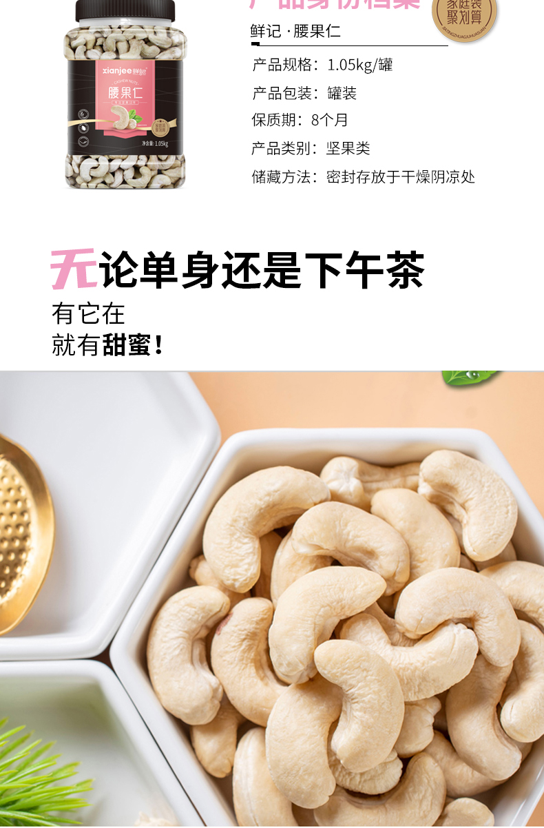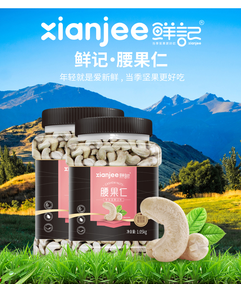 商品名称:鲜记坚果腰果仁1050g量贩大桶装