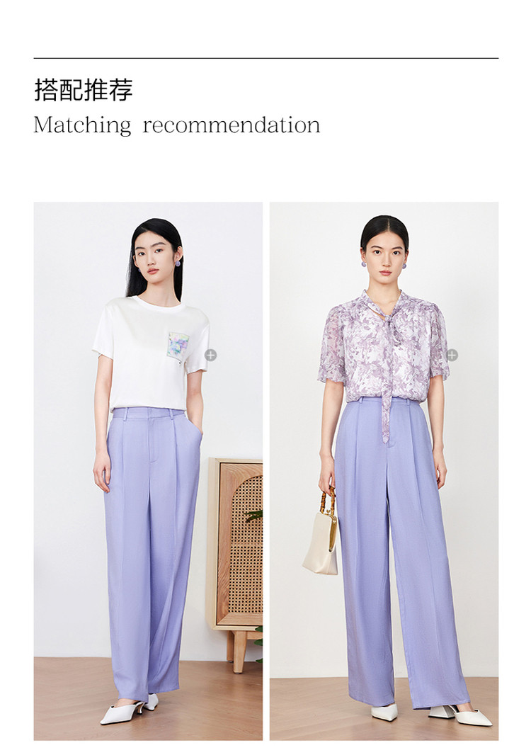 商品名称:玖姿旗下安娜蔻系列OL风通勤阔腿西裤女装夏季新醋酸休闲裤子 889420