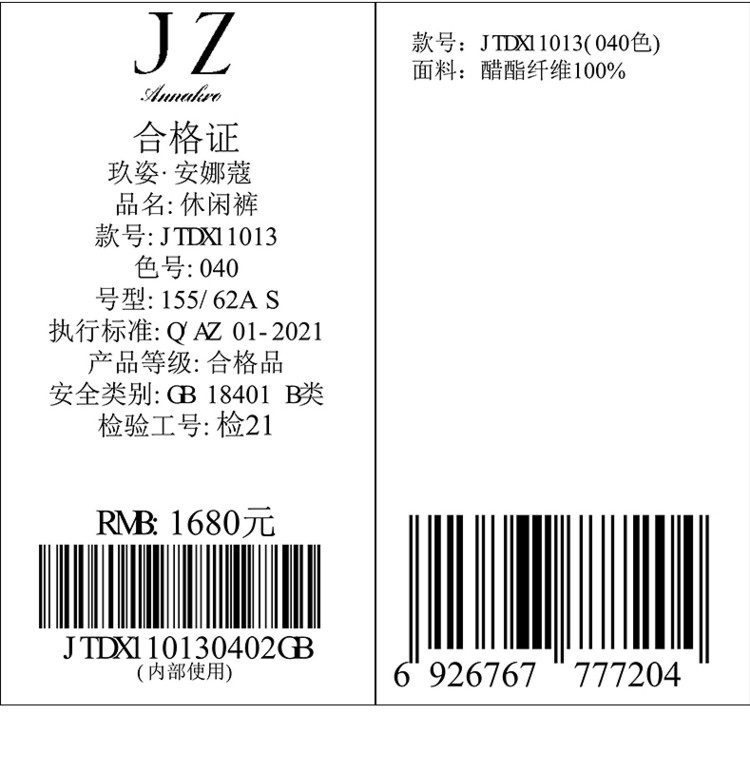 JZ玖姿直筒阔腿裤女装春季职业通勤休闲裤 183948