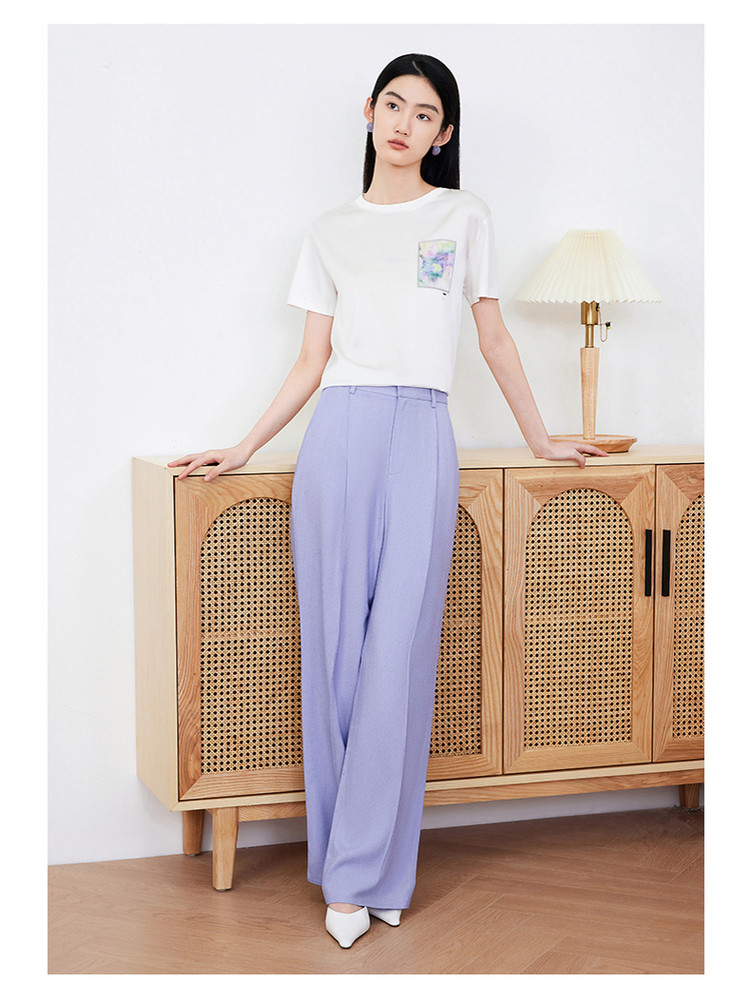 【侧开叉西装裤】春夏款宽松高腰直筒休闲裤女气质百搭时尚 083409