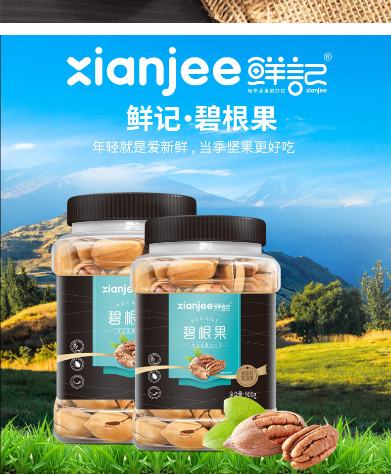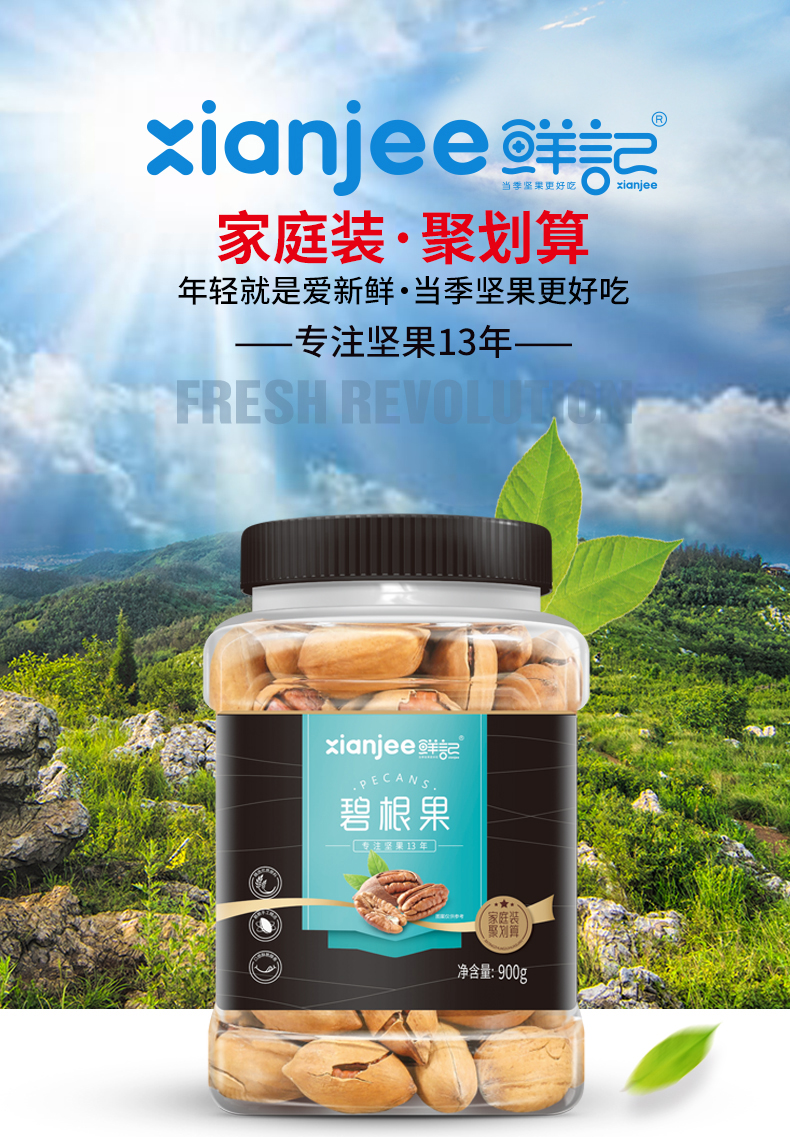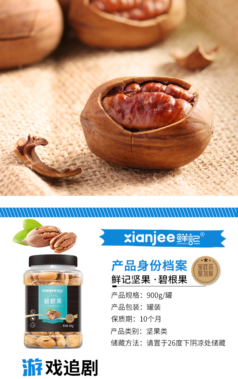 商品名称:鲜记坚果碧根果900g量贩大桶装