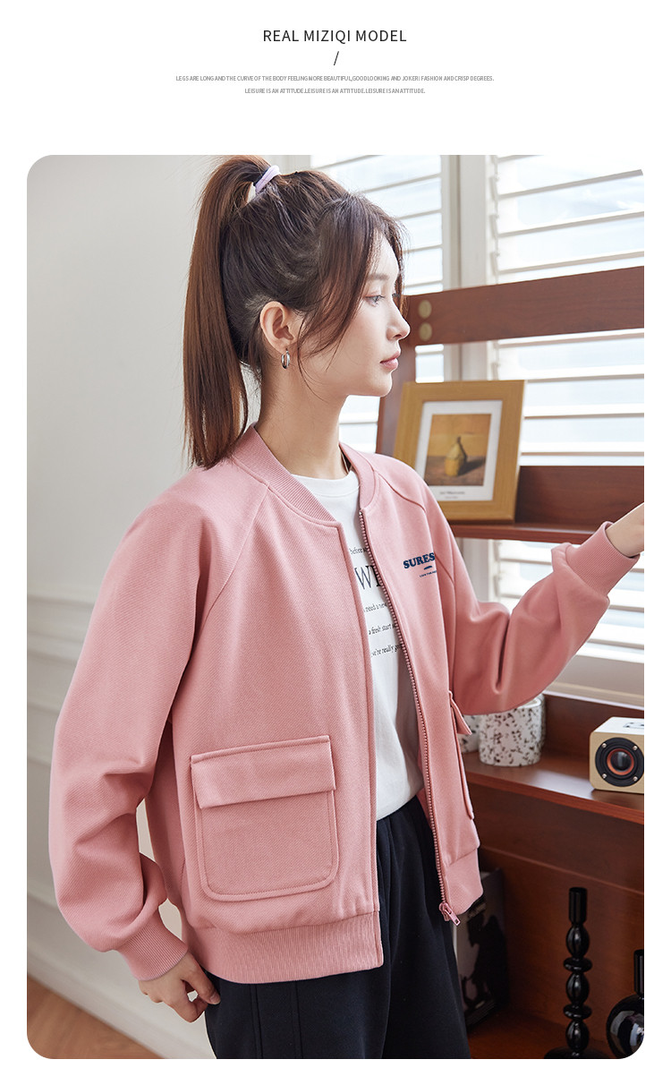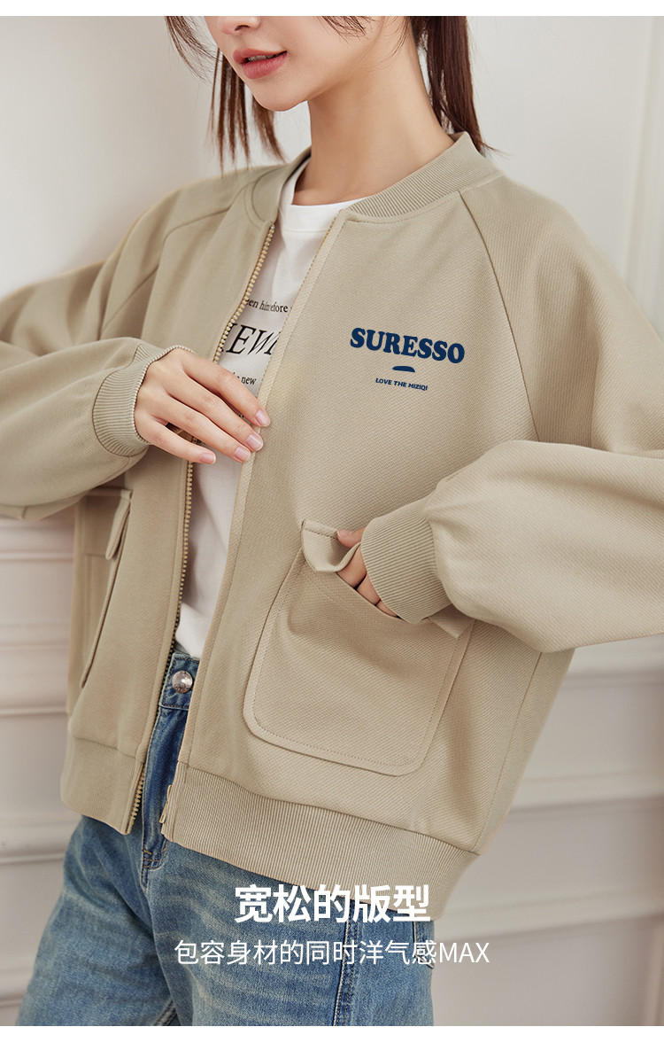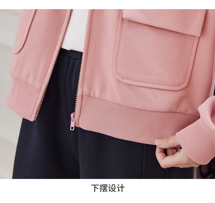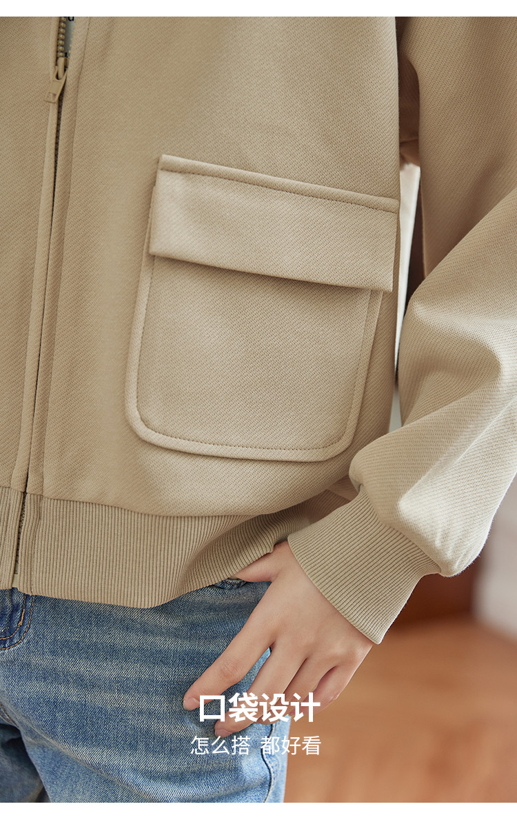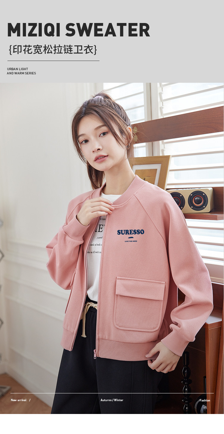 商品名称:米子旗春秋款女式卫衣字母印花宽松潮流拉链口袋上衣女 155546