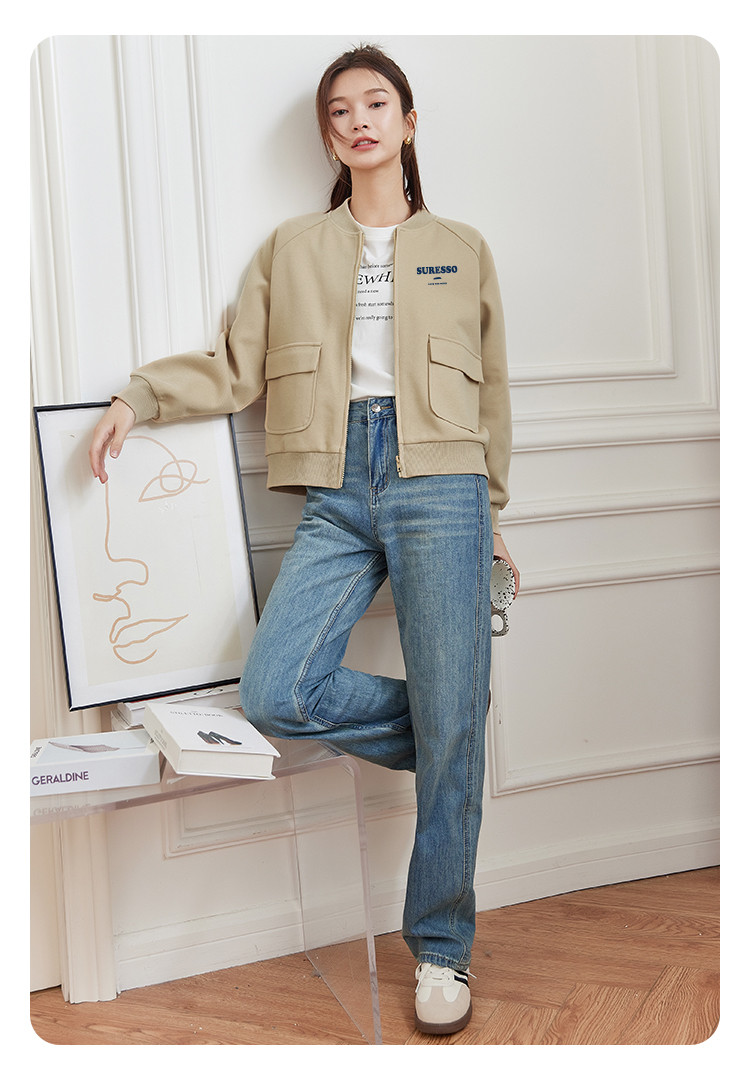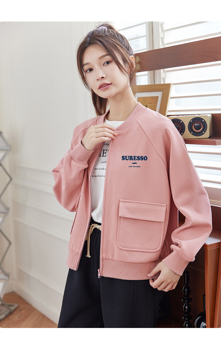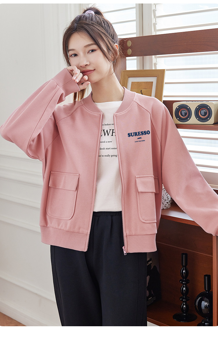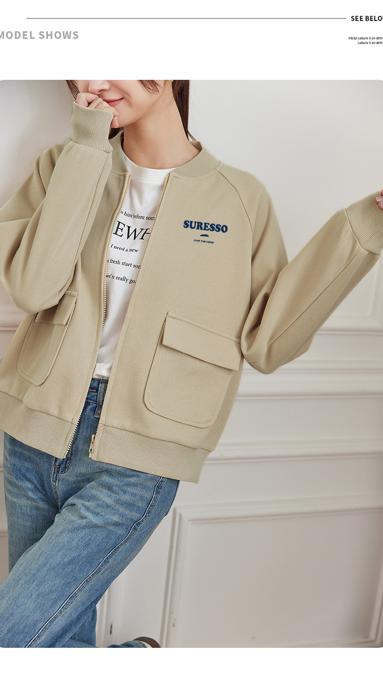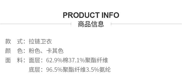 商品名称:米子旗春秋款女式卫衣字母印花宽松潮流拉链口袋上衣女 155546