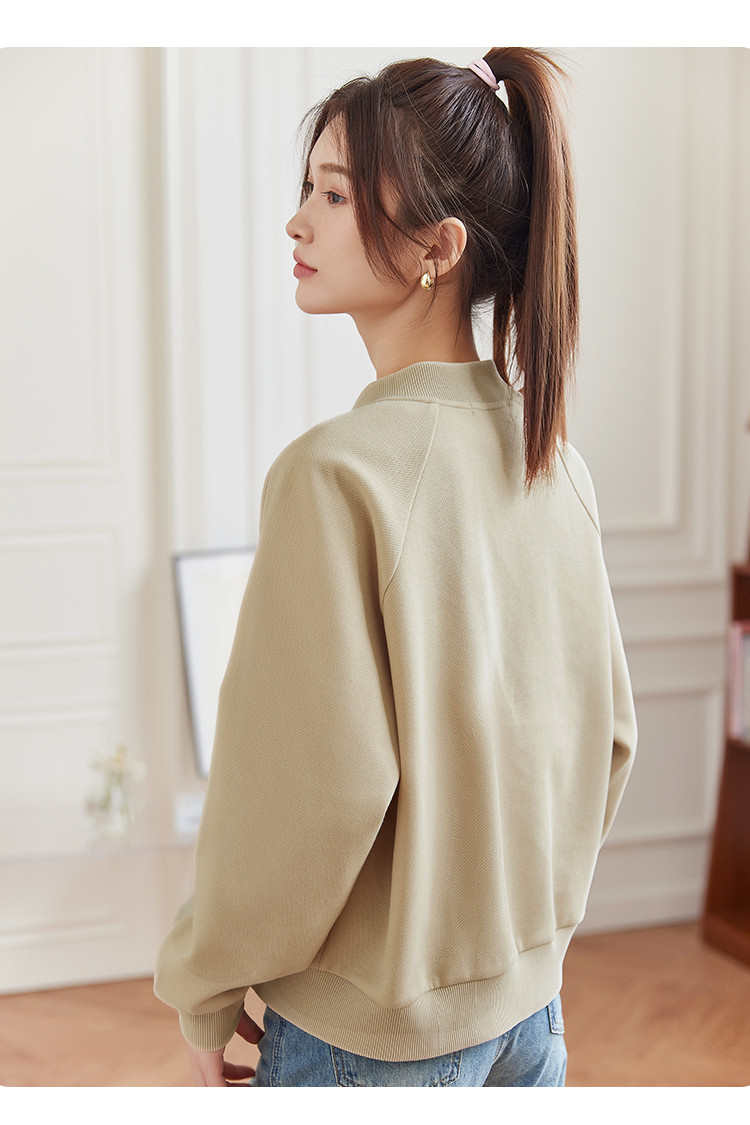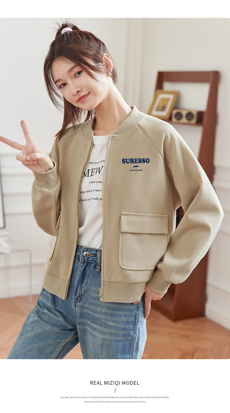 米子旗春秋款女式卫衣字母印花宽松潮流拉链口袋上衣女 155546
