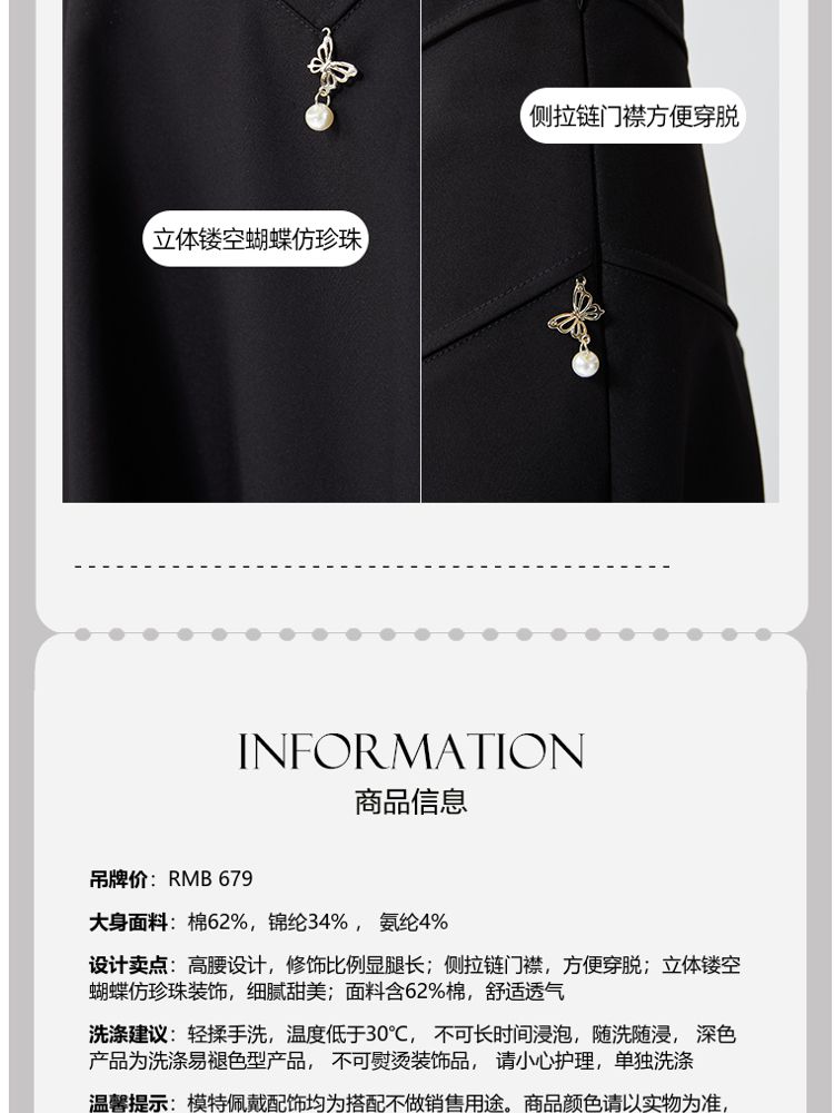 商品名称:【立体蝴蝶仿珍珠装饰】春夏专柜同款高腰显瘦半身裙气质百搭时尚 994385