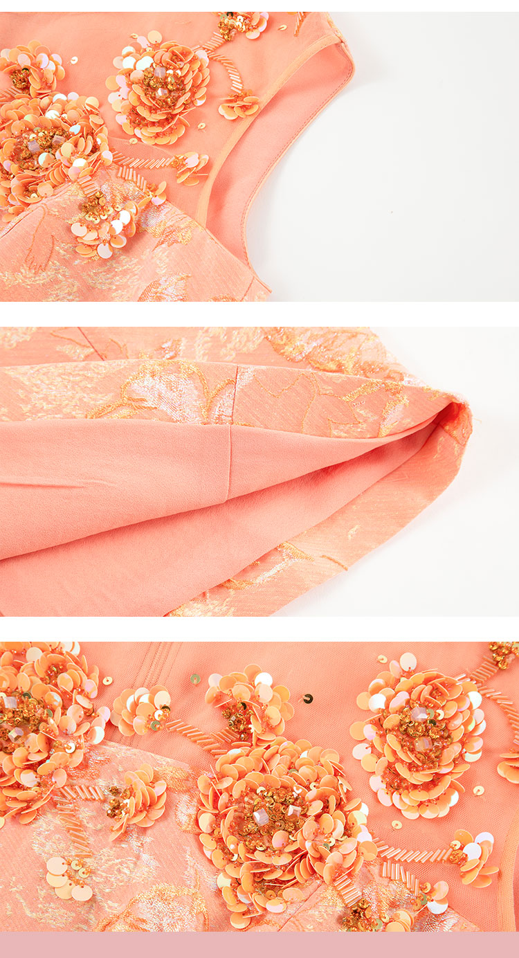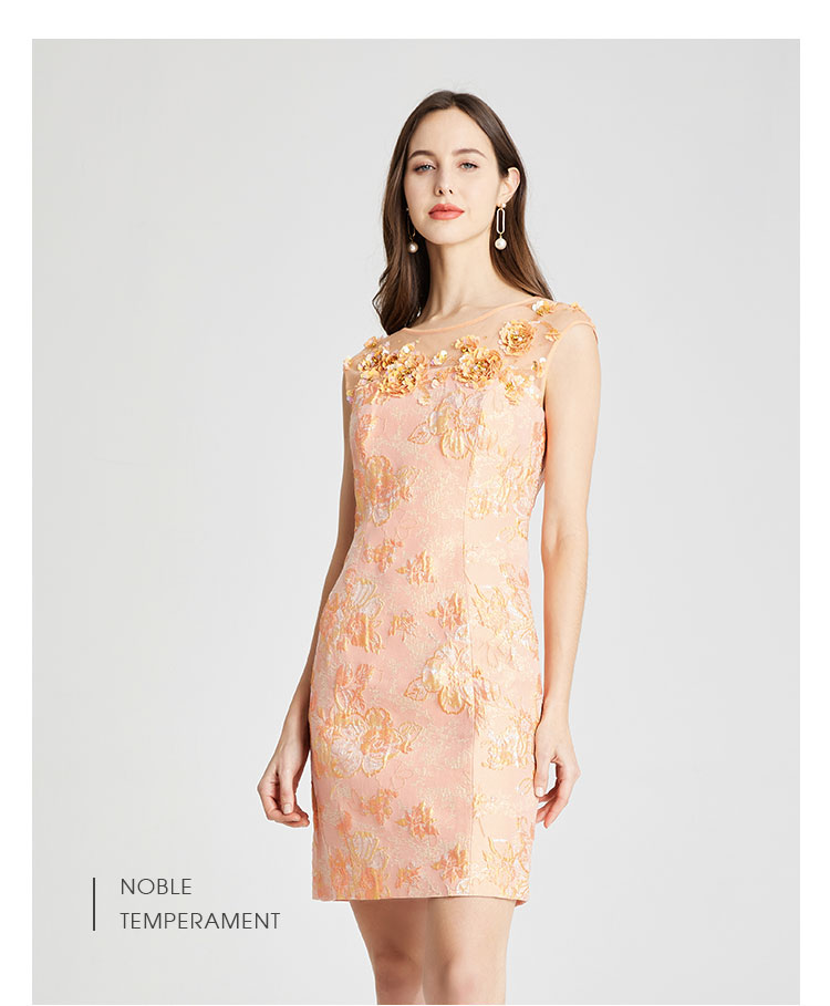 春季优雅圆领立体手工钉珠合体修身礼服连衣裙 836383