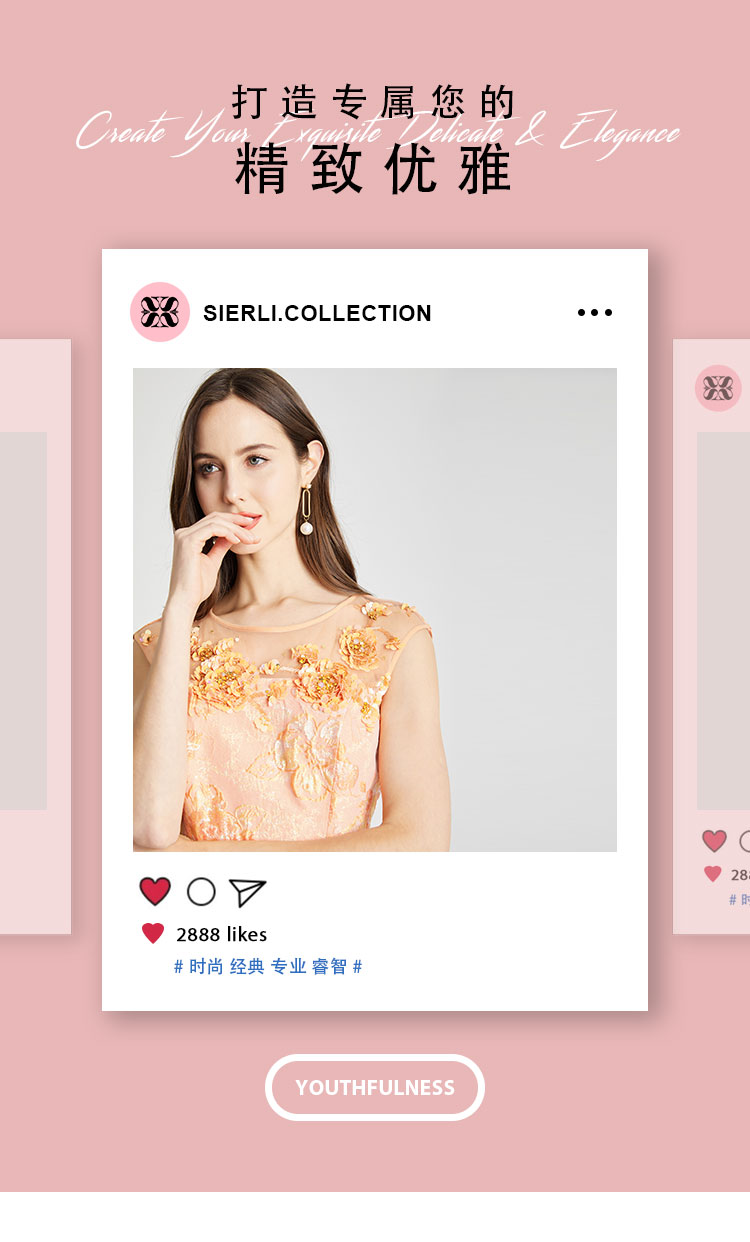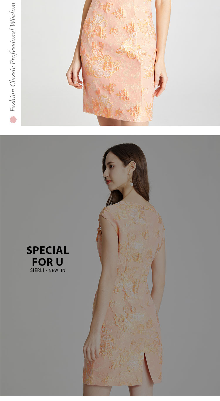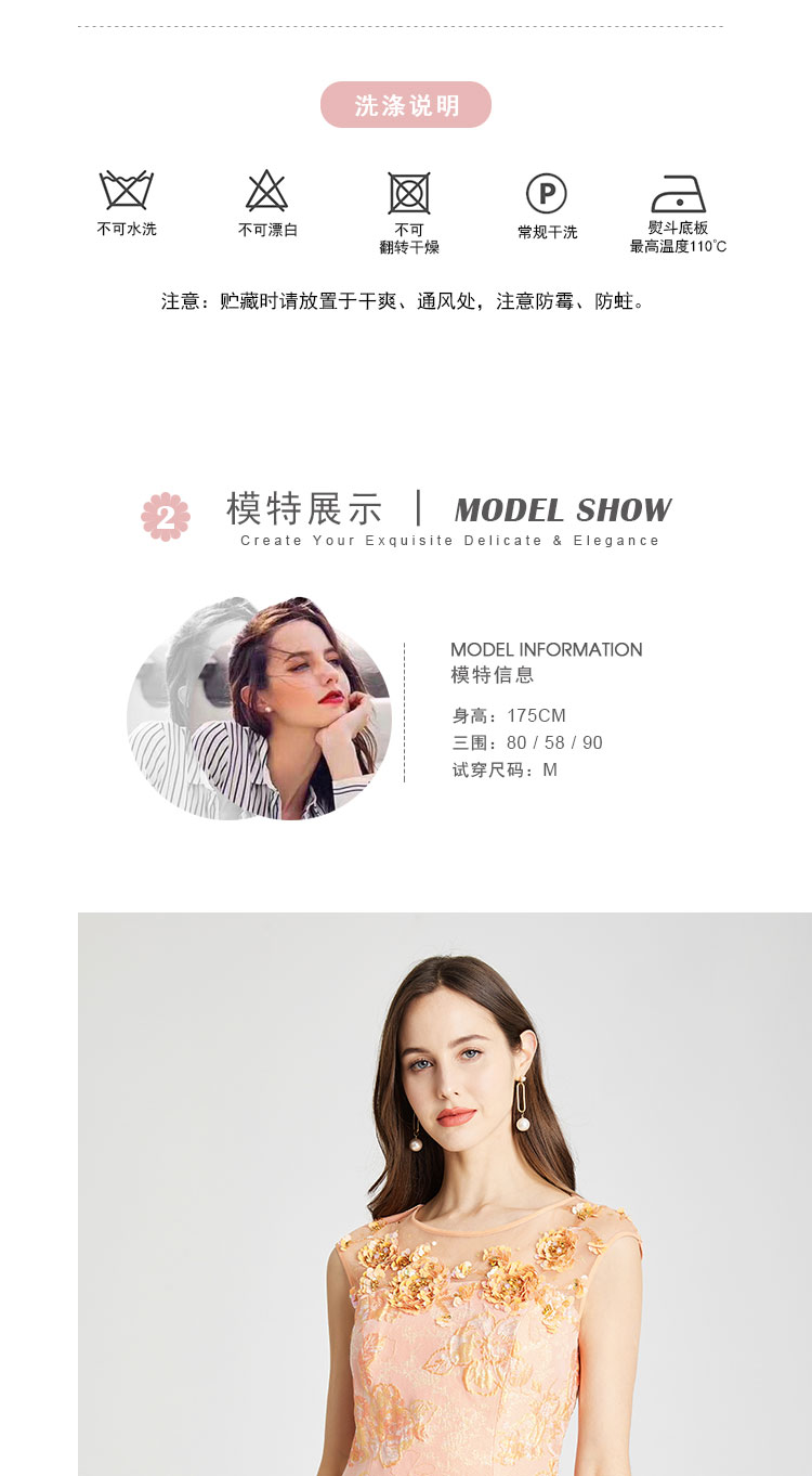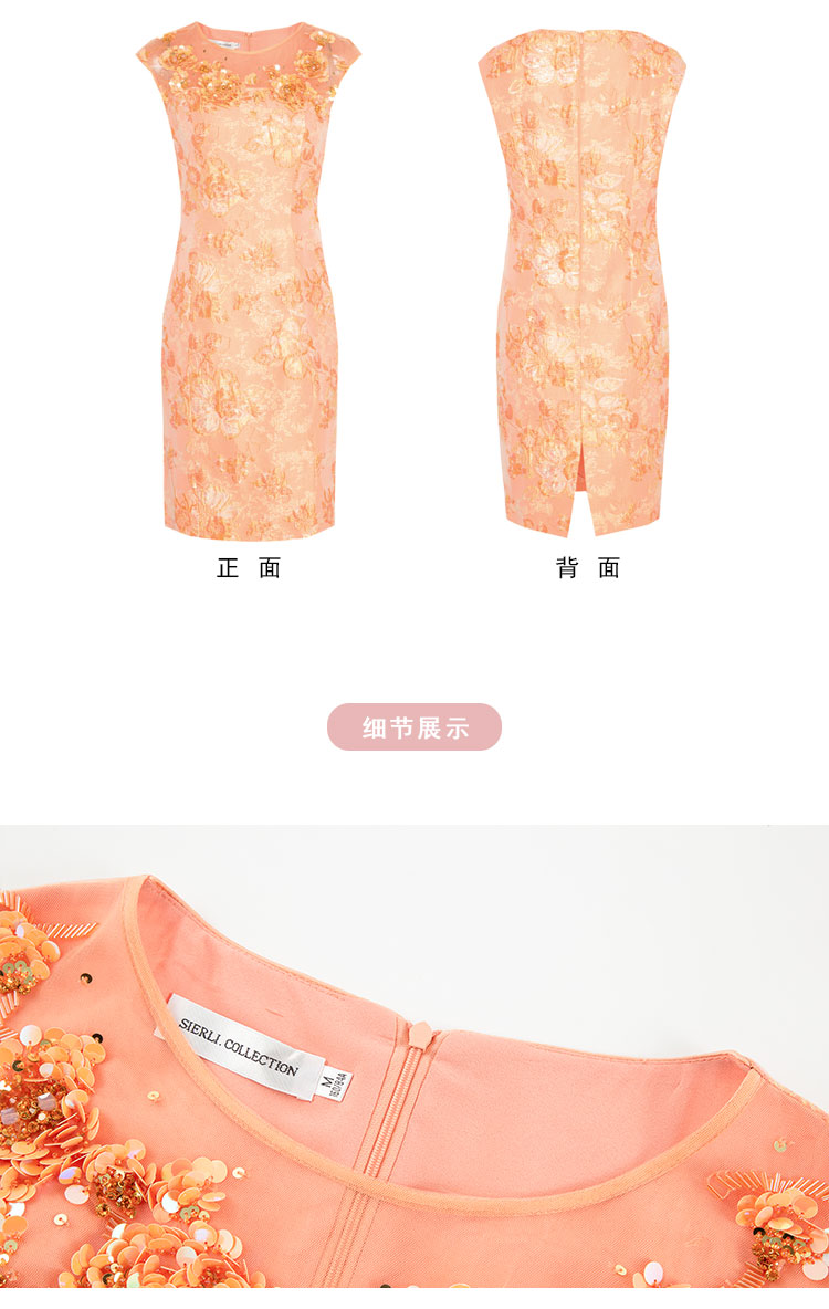 商品名称:春季优雅圆领立体手工钉珠合体修身礼服连衣裙 836383