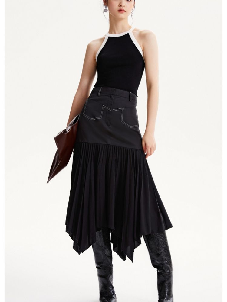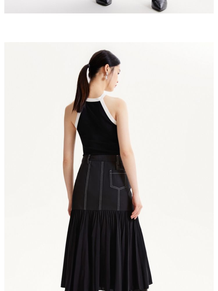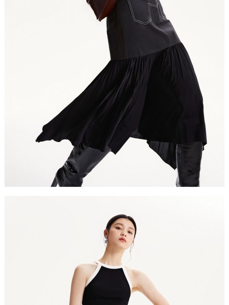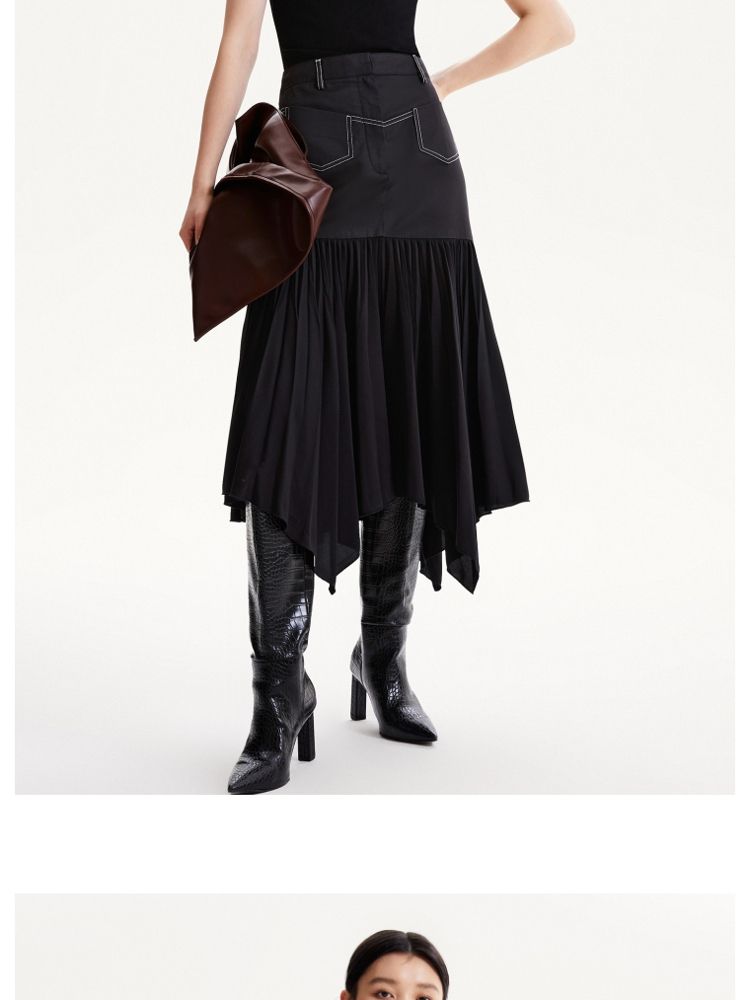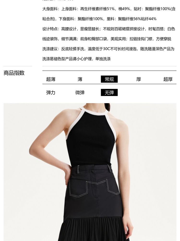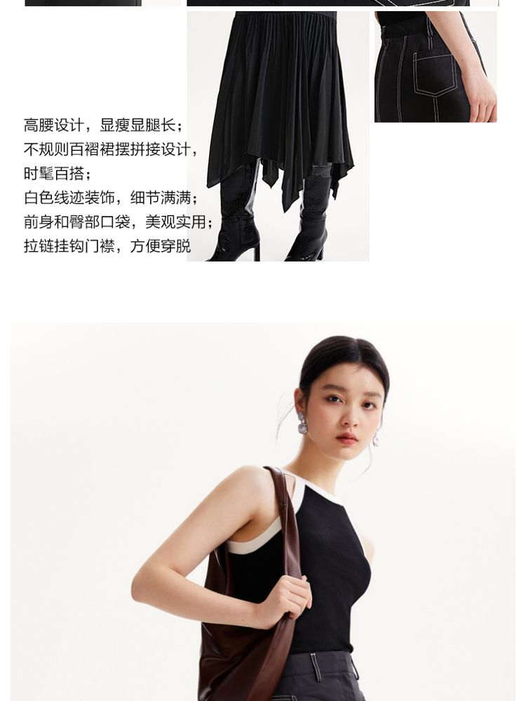 商品名称:【高级感】春夏专柜款高腰A摆拼接百褶裙半身裙气质百搭时尚 051025