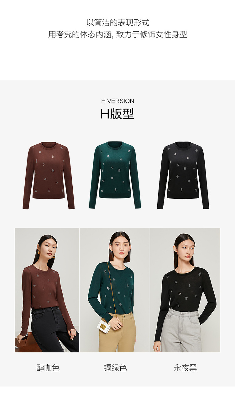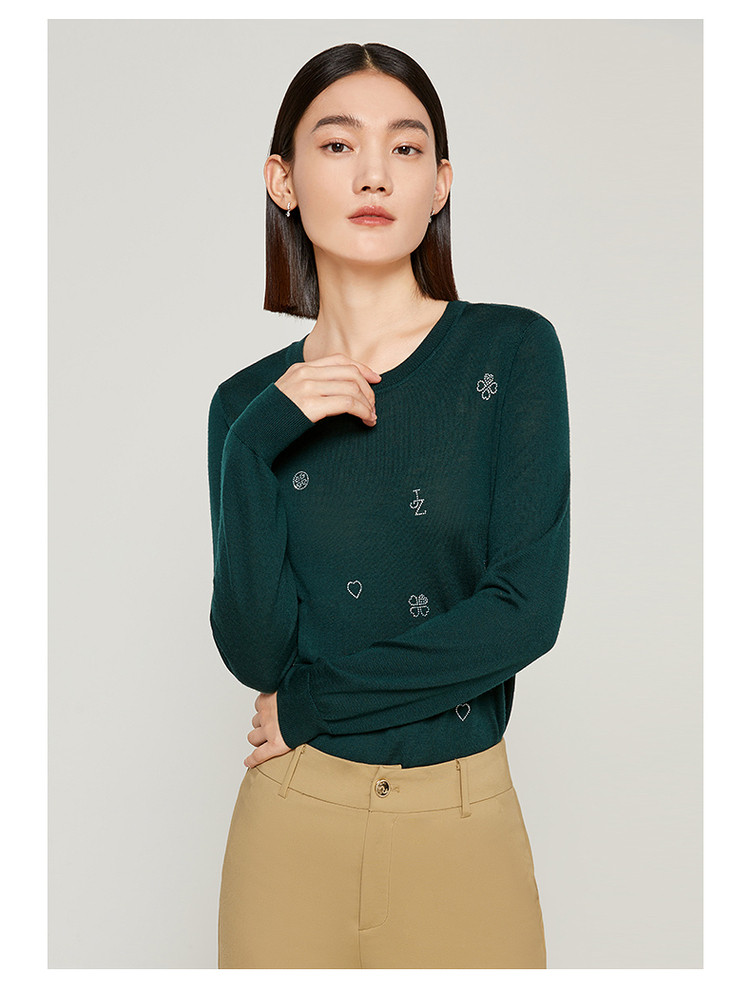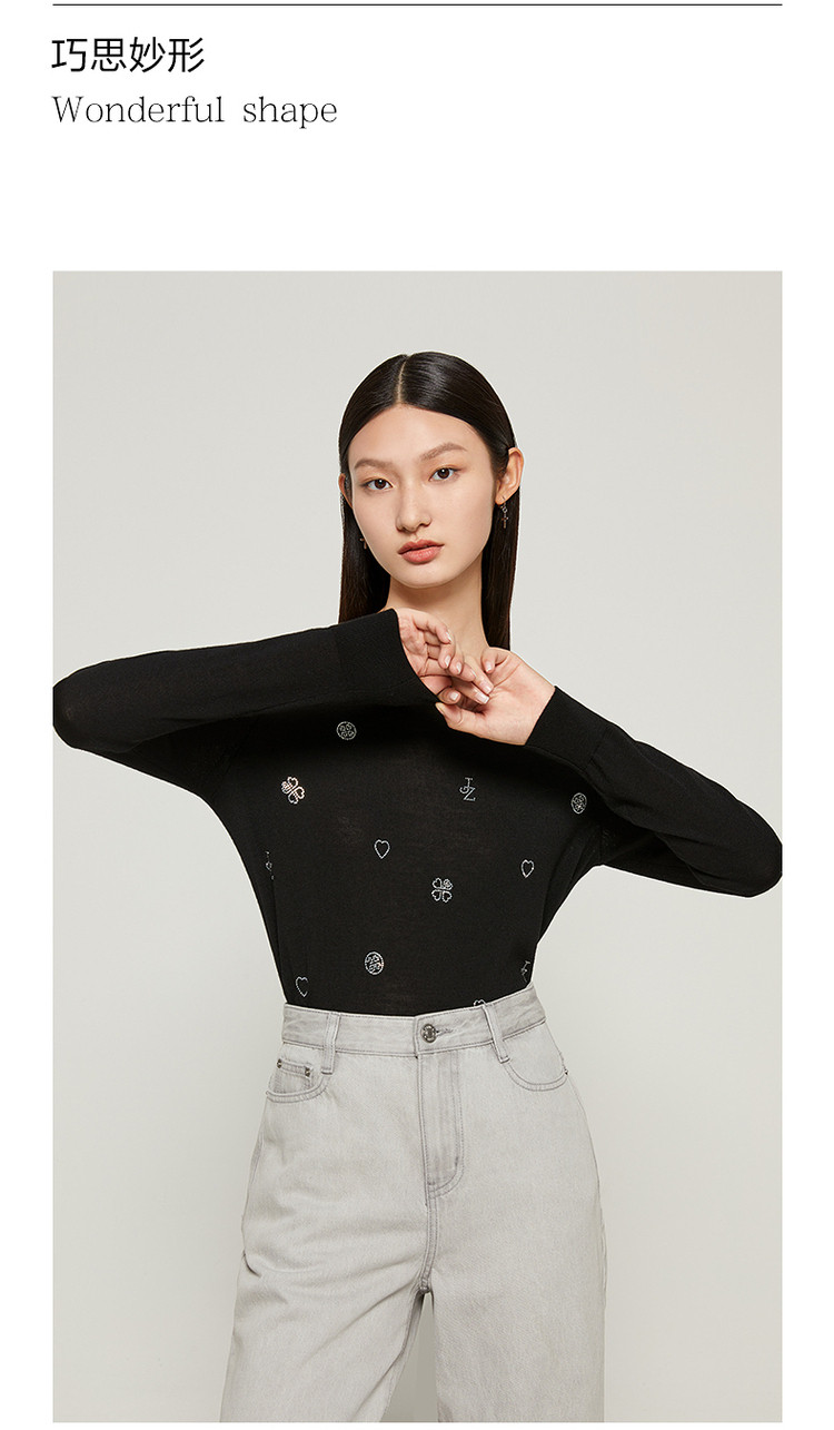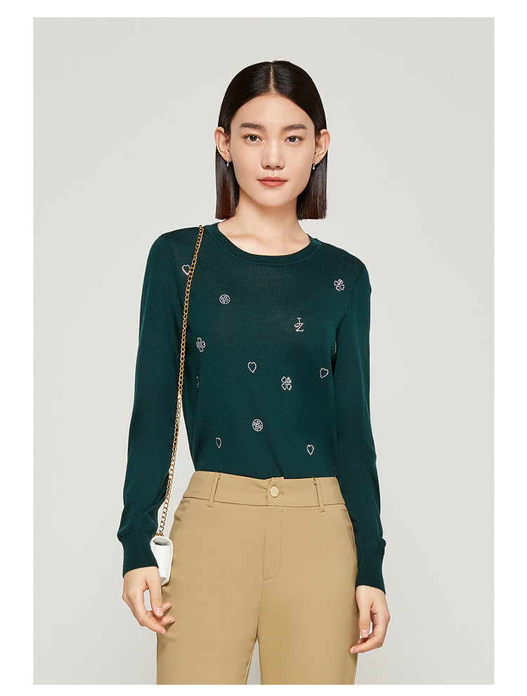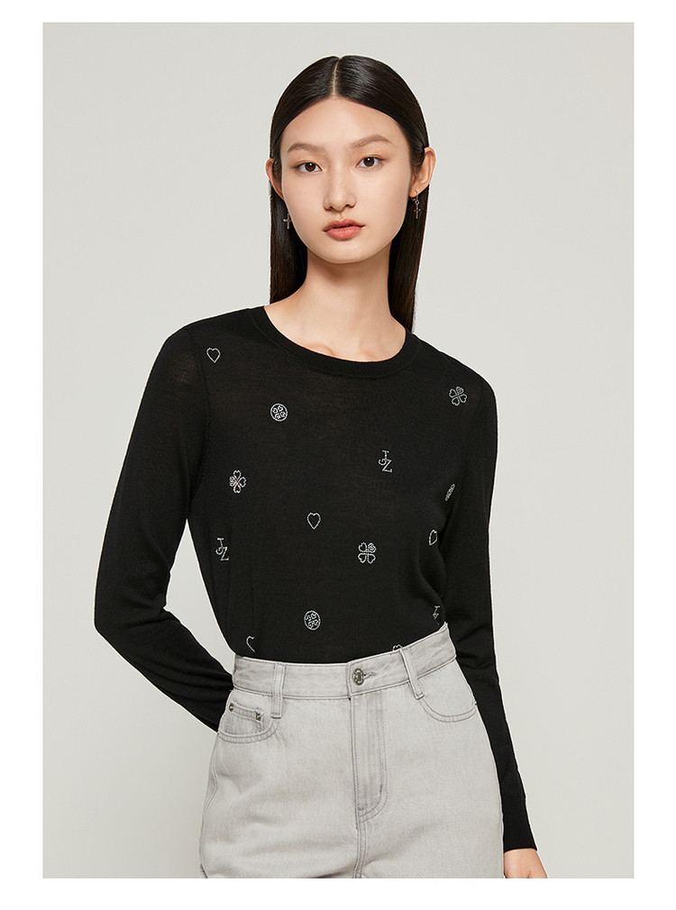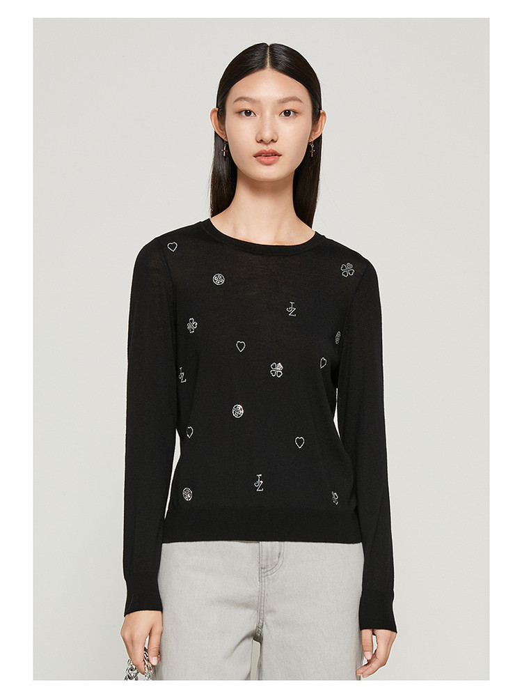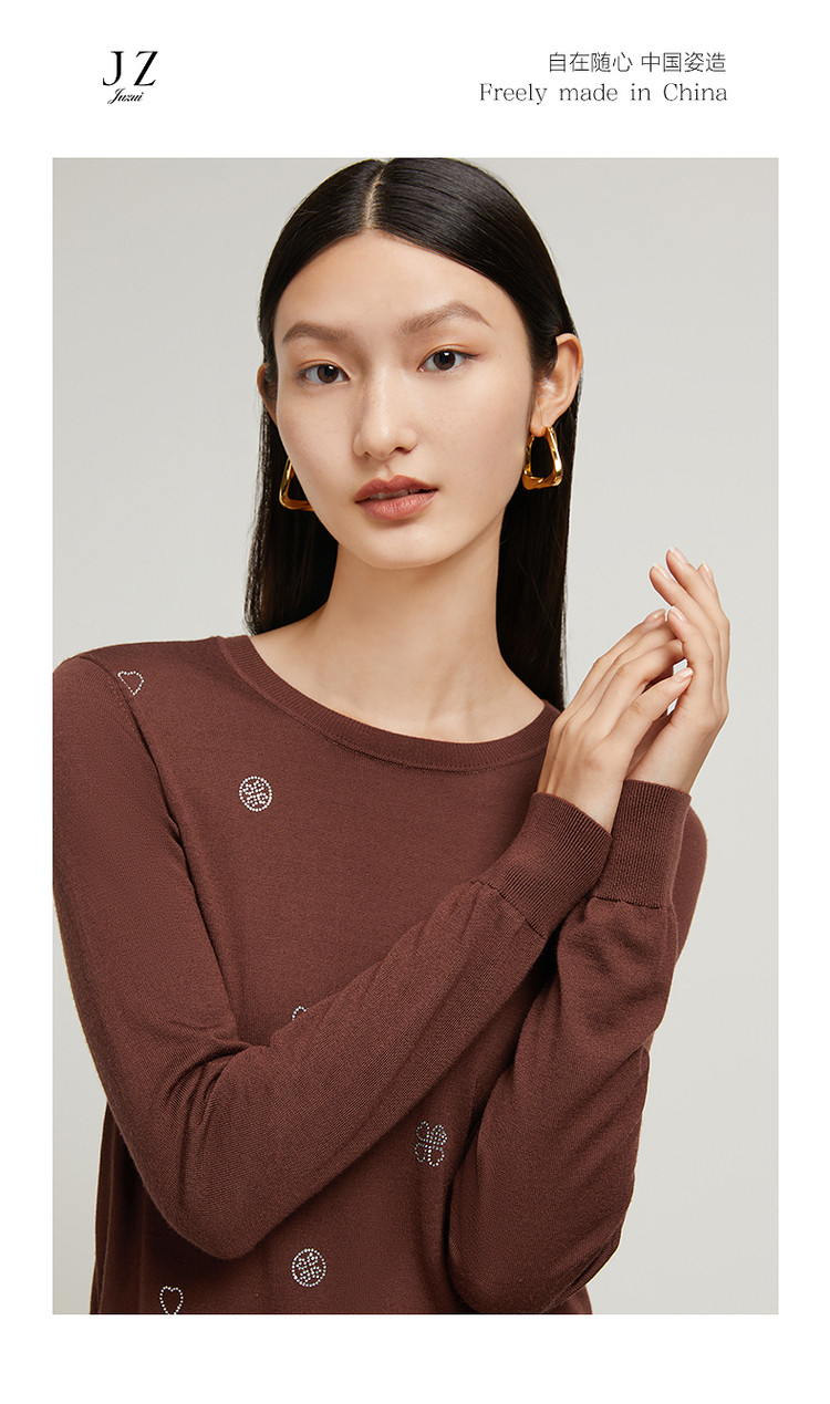 JZ玖姿高支精纺羊毛衫女装秋季时尚烫钻爱心绵羊毛针织衫 745676