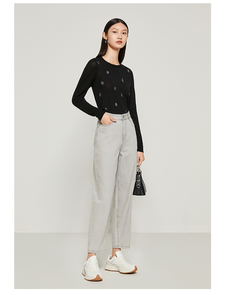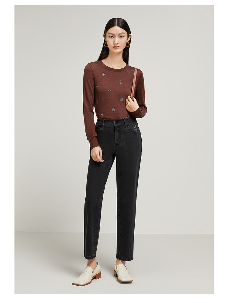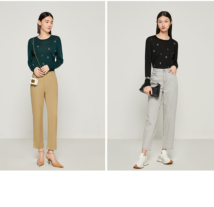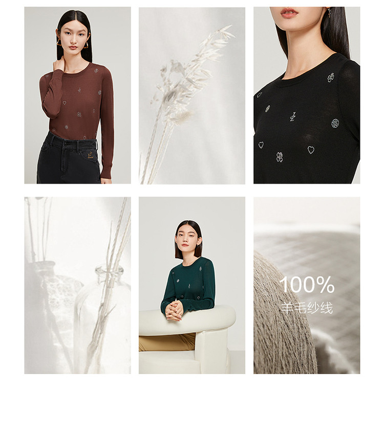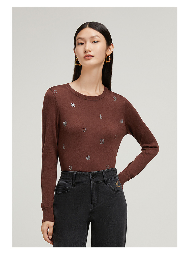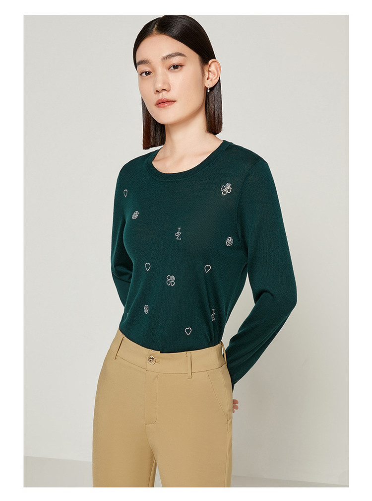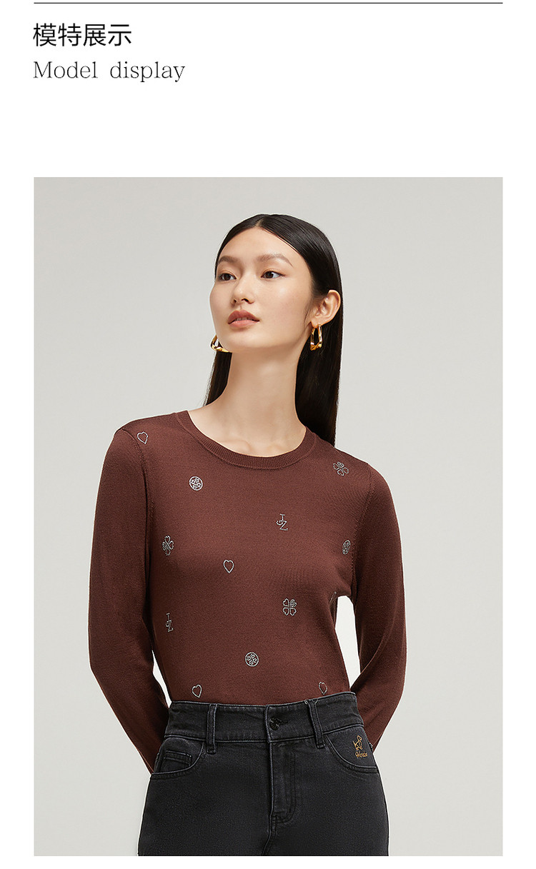 JZ玖姿高支精纺羊毛衫女装秋季时尚烫钻爱心绵羊毛针织衫 745676