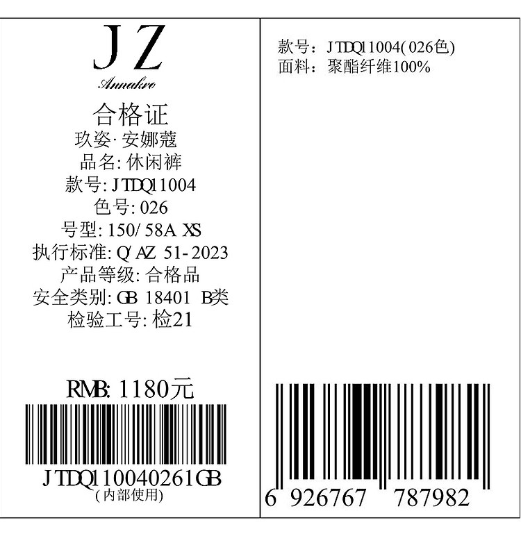 商品名称:玖姿旗下安娜蔻系列优雅拖地裤阔腿裤质感长裤女秋季 803916