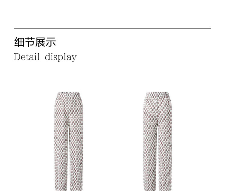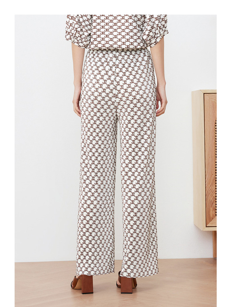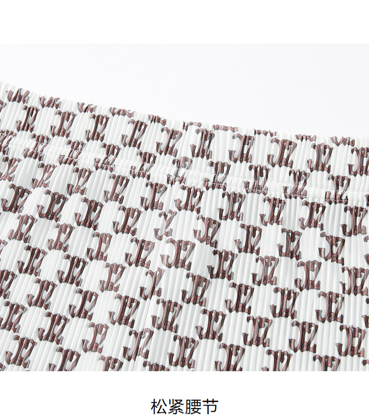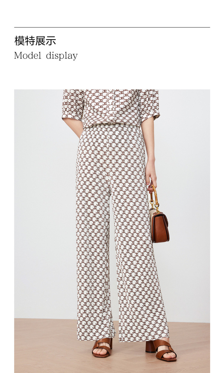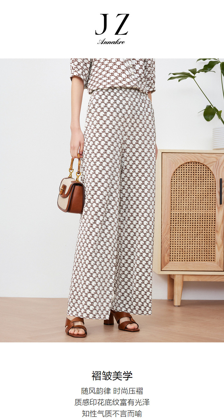 商品名称:玖姿旗下安娜蔻系列字母印花直筒阔腿裤夏季肌理压褶休闲裤子 497932