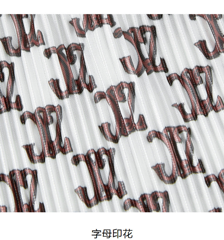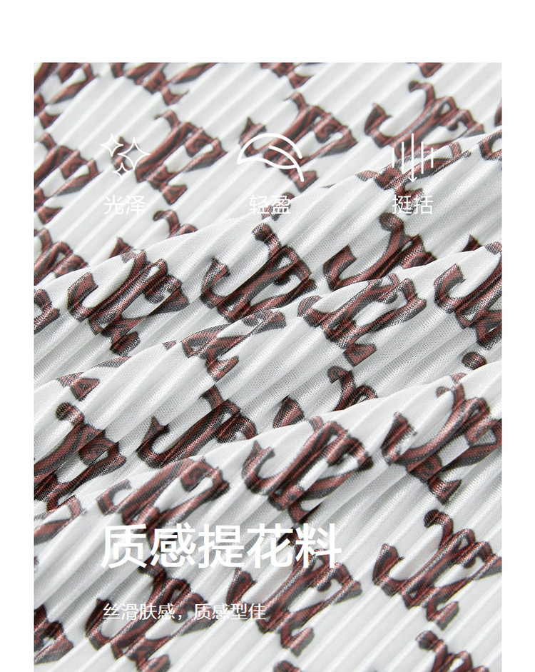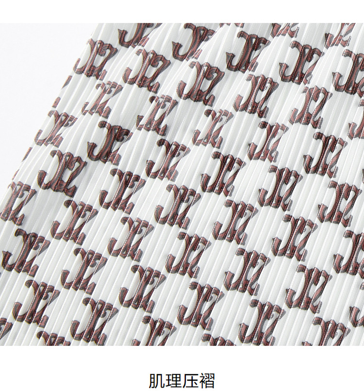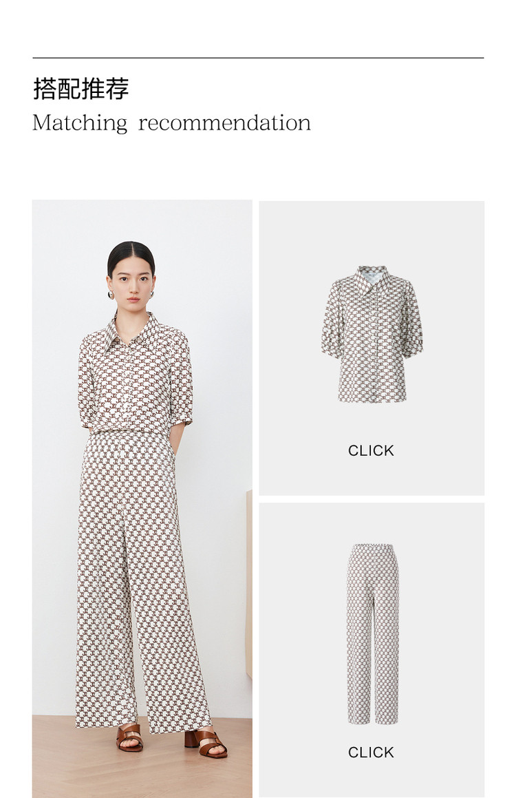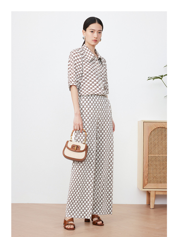 商品名称:玖姿旗下安娜蔻系列字母印花直筒阔腿裤夏季肌理压褶休闲裤子 497932