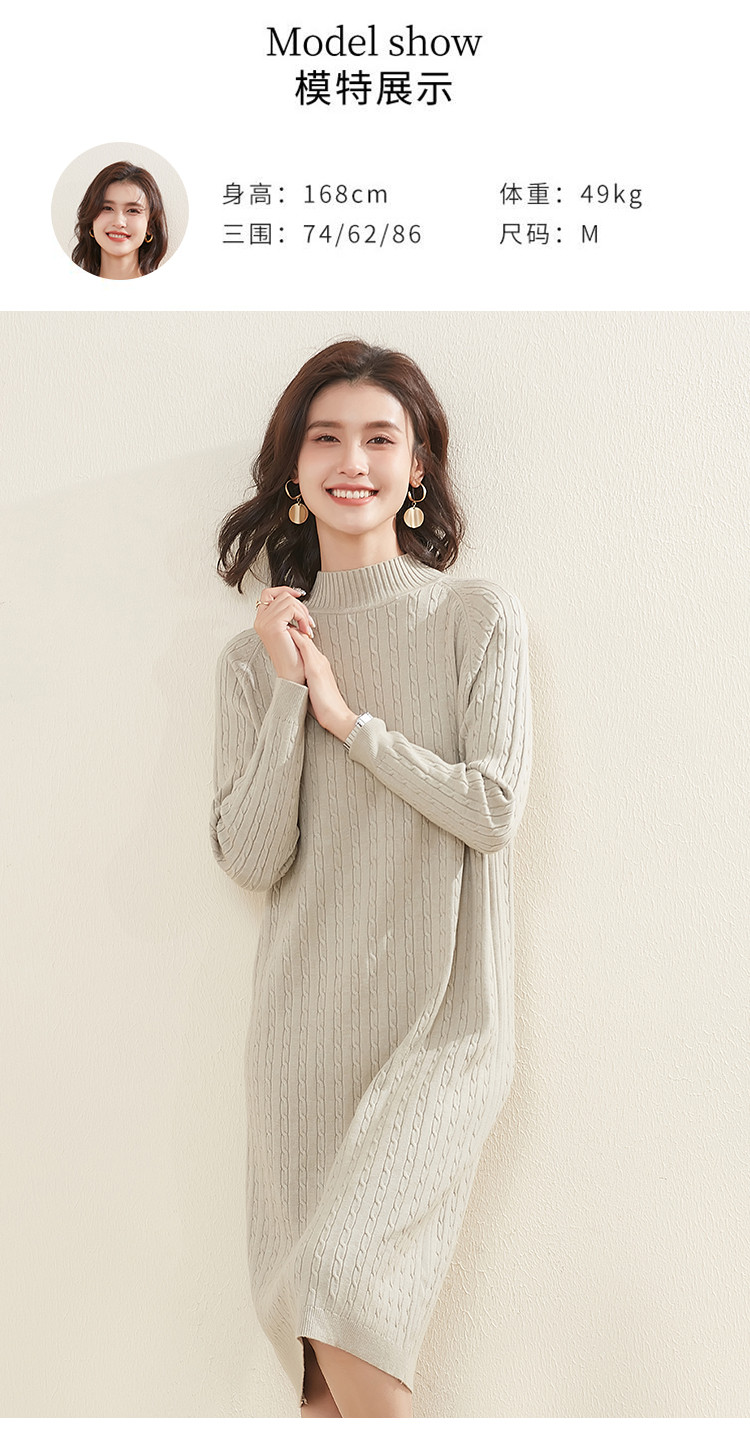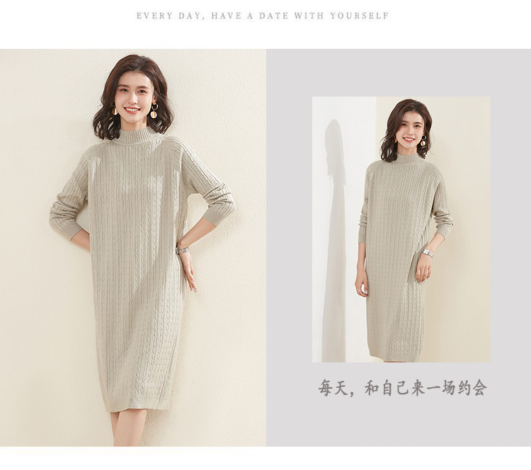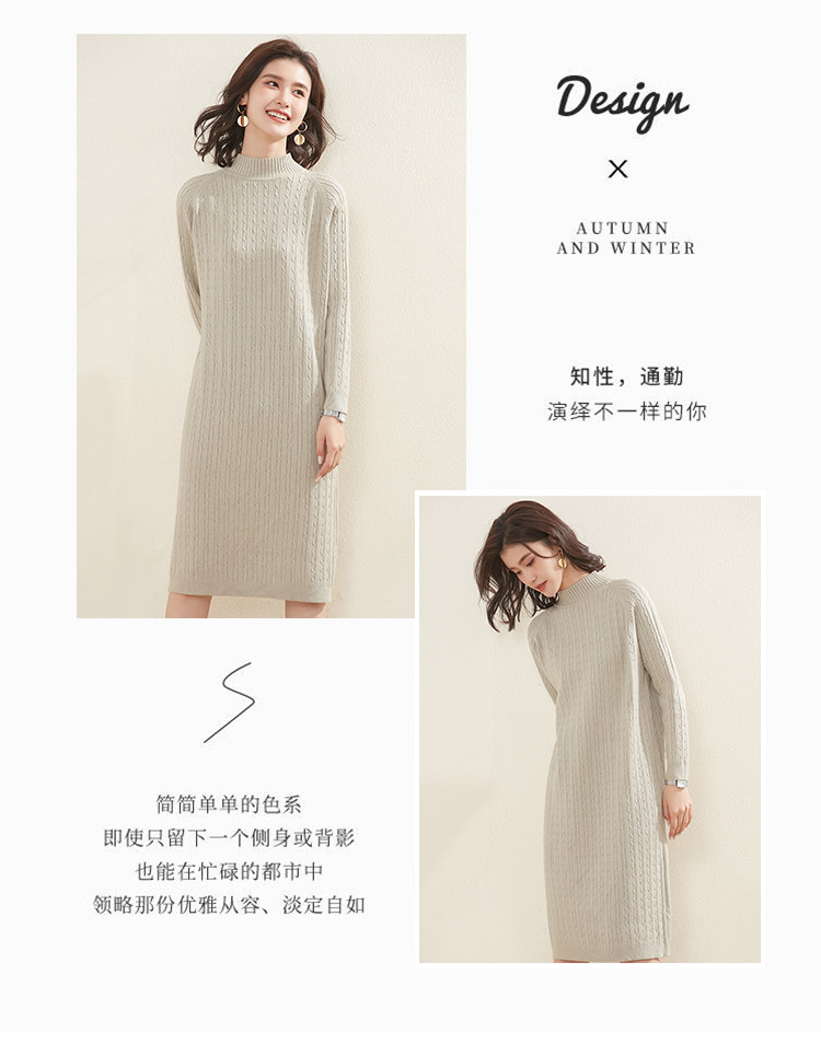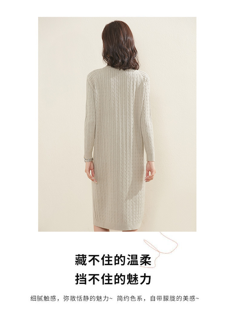 商品名称:【配大衣】2024春款慵懒风针织打底连衣裙女式中长款过膝毛衣 526495