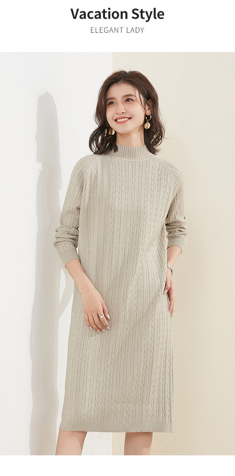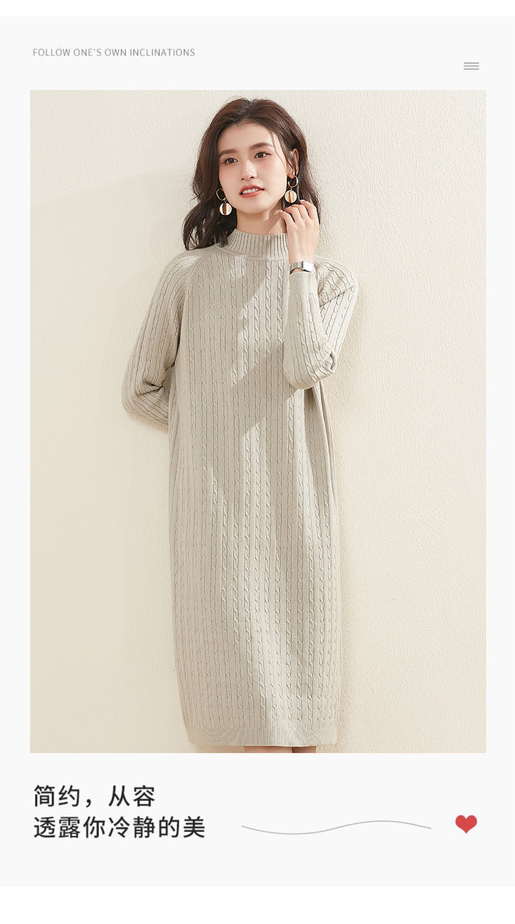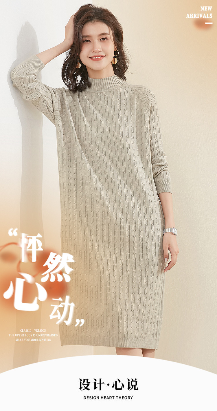 商品名称:【配大衣】2024春款慵懒风针织打底连衣裙女式中长款过膝毛衣 526495