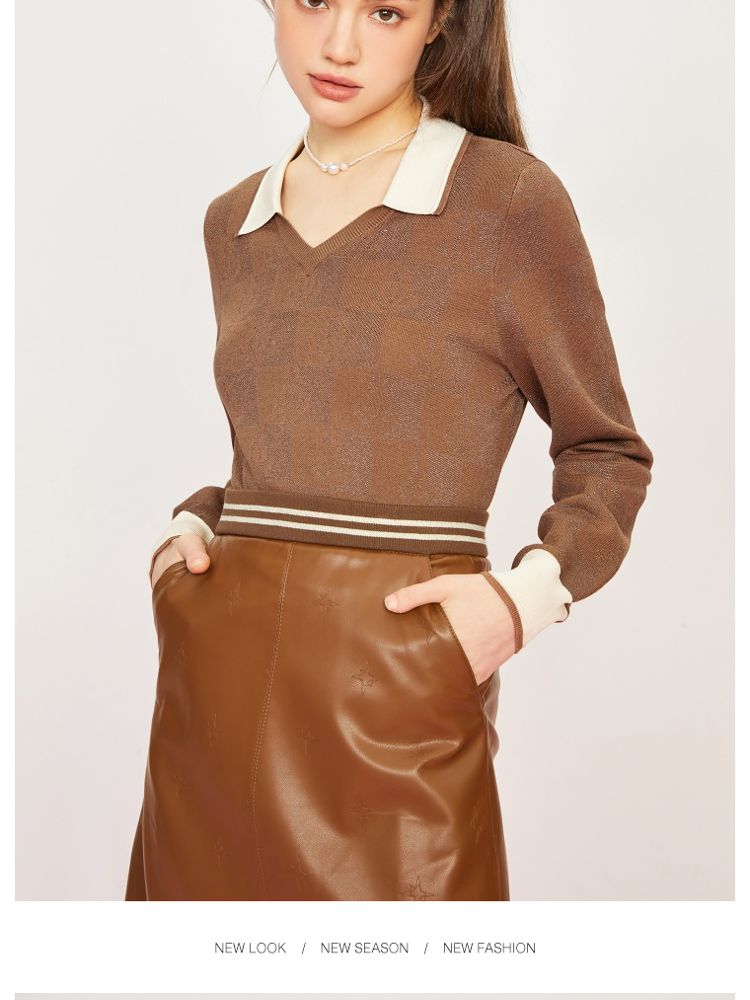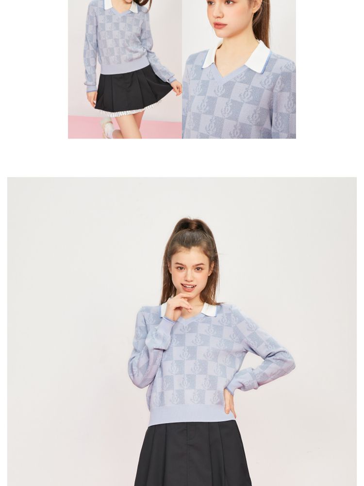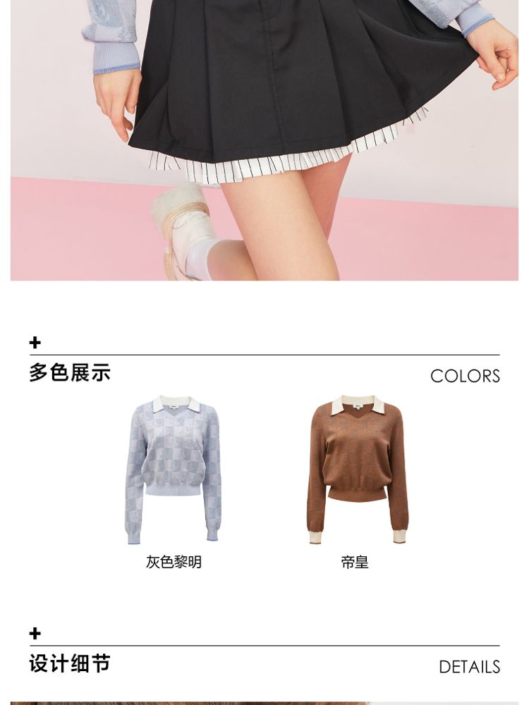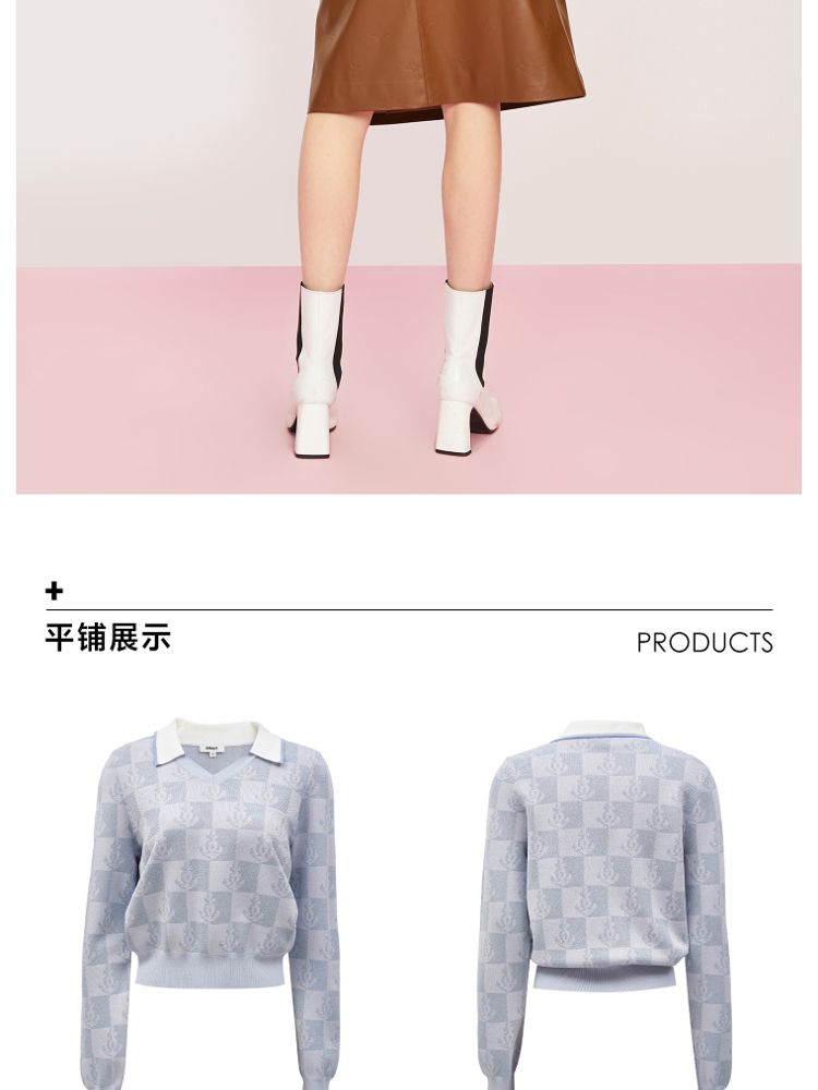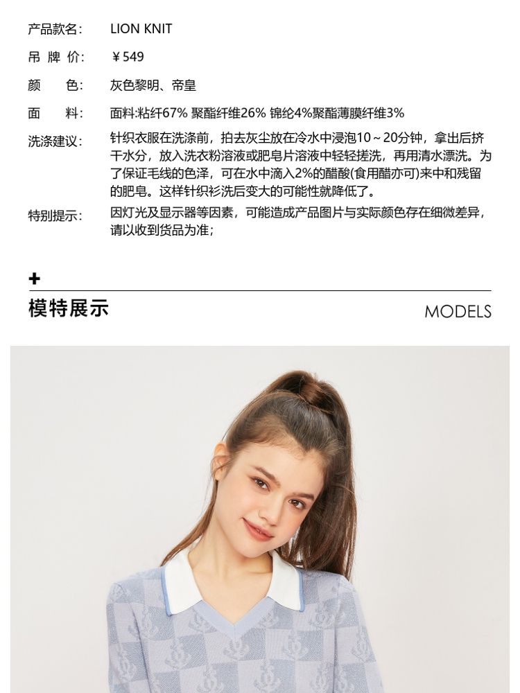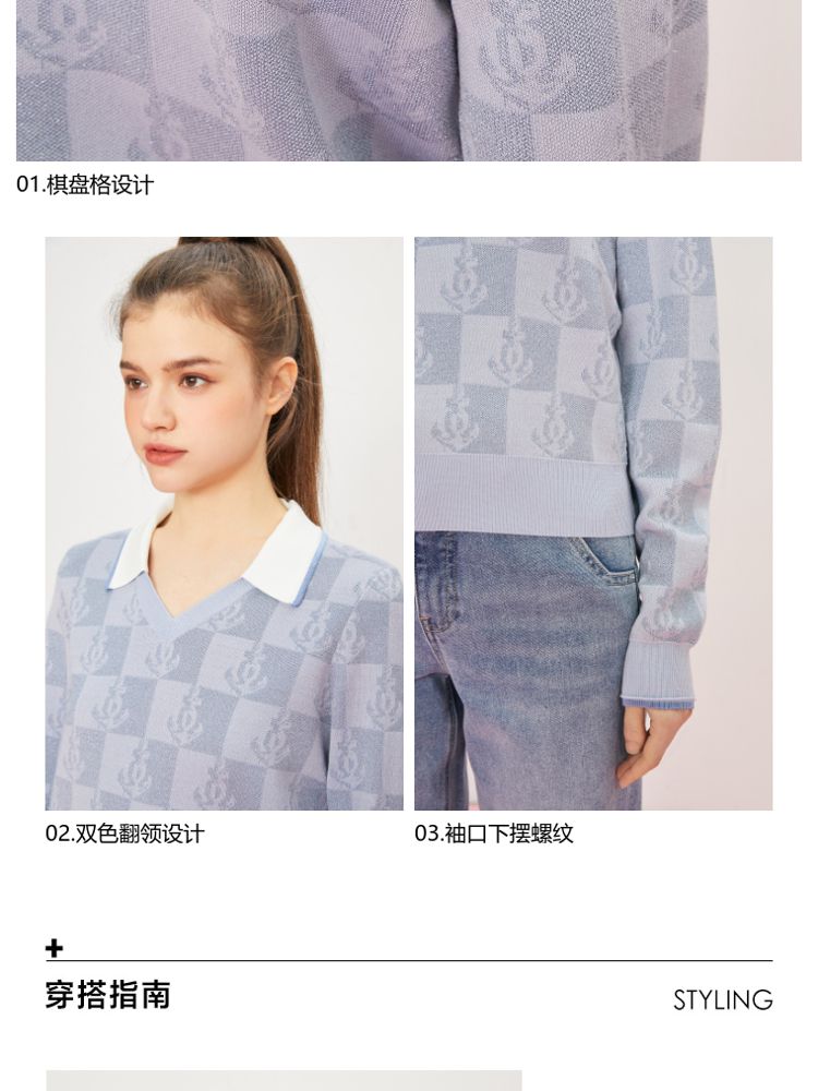 商品名称:【福利秒杀款】夏季海军风棋盘格翻领针织衫女 871770