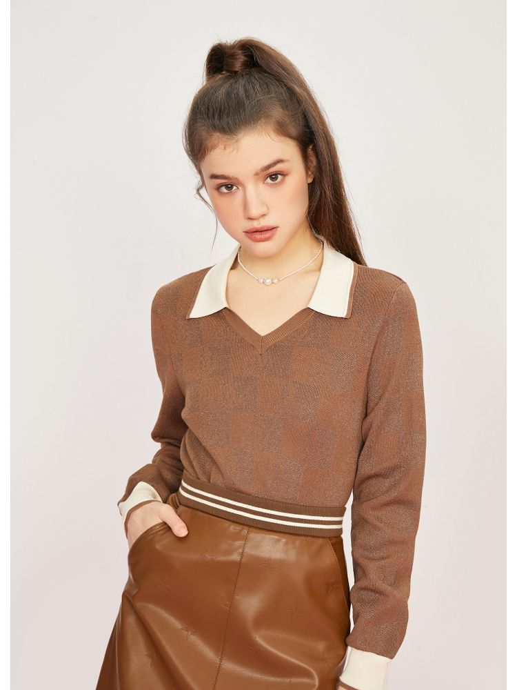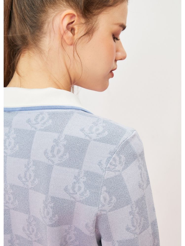 【福利秒杀款】夏季海军风棋盘格翻领针织衫女 871770