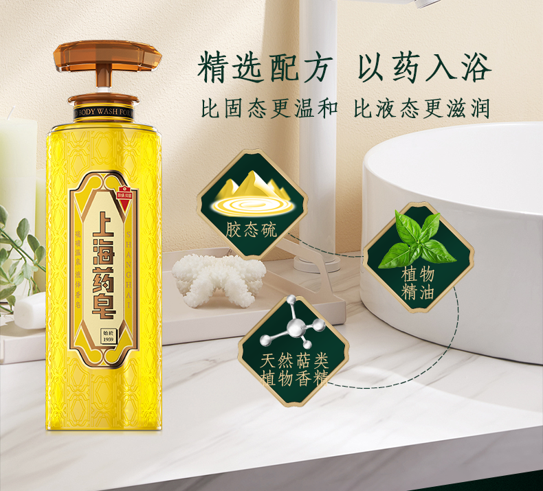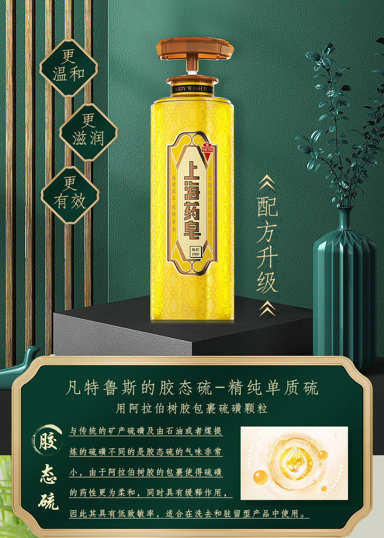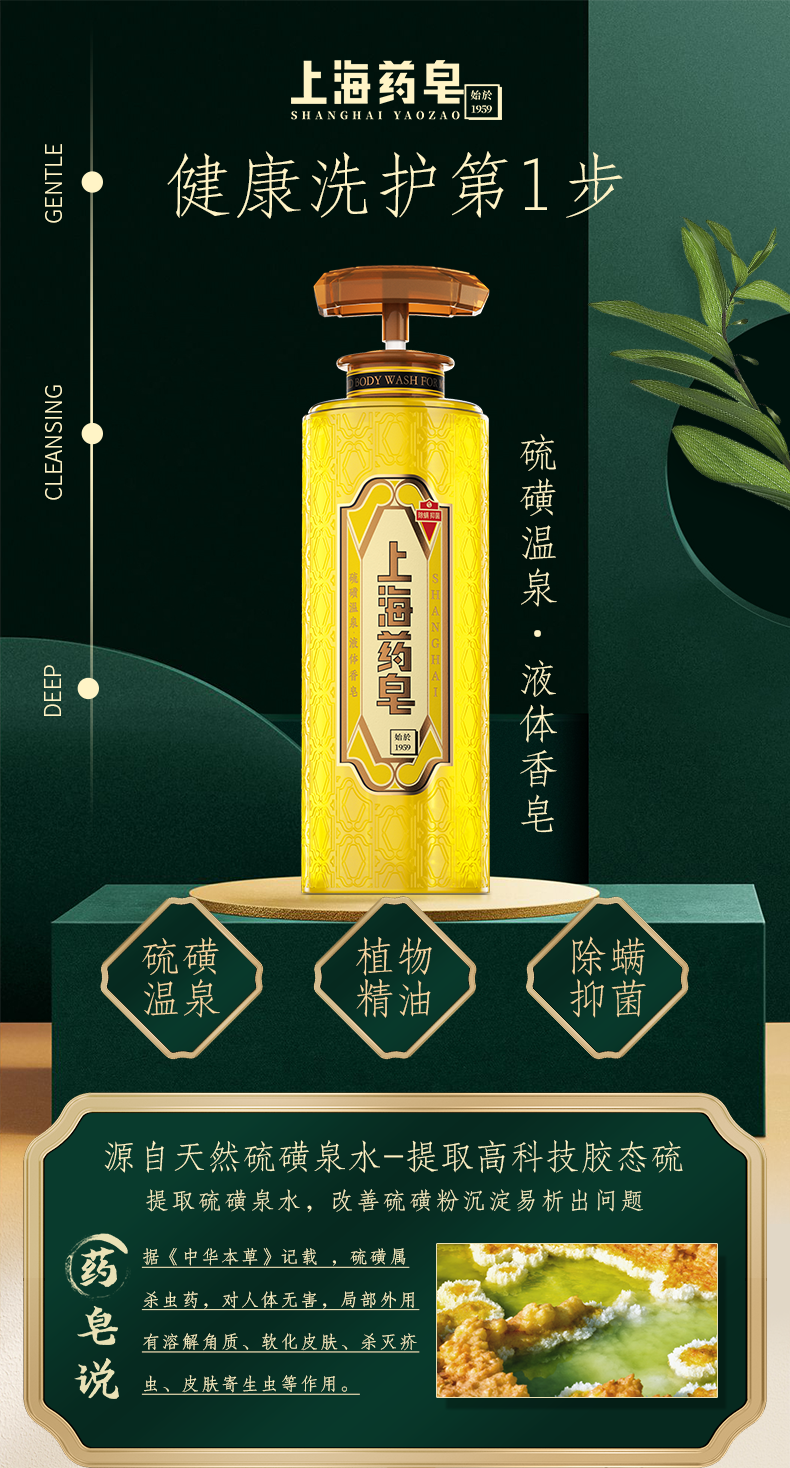 商品名称:上海药皂硫磺温泉液体香皂620g/瓶