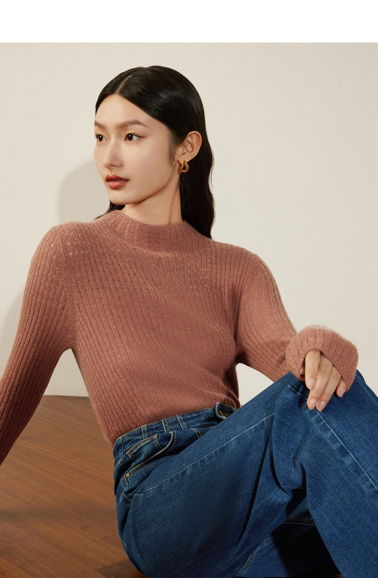 JZ玖姿牦牛绒条纹修身打底衫冬季洋气内搭毛衣 606156