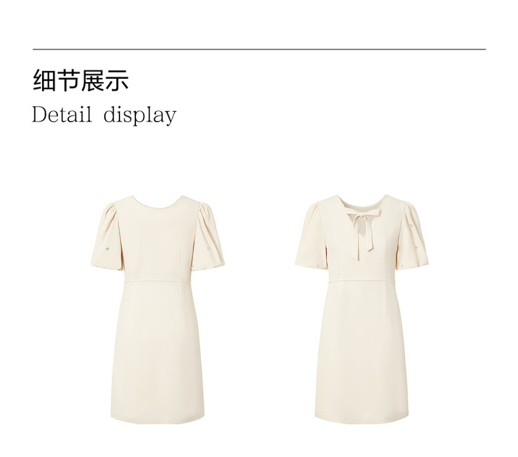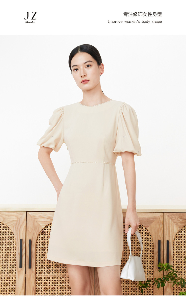 商品名称:旗下安娜蔻系列洋气通勤风泡泡袖收腰醋酸中长款连衣裙女装夏新 918092
