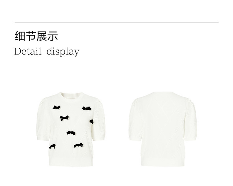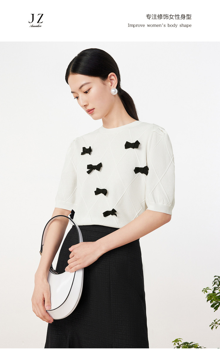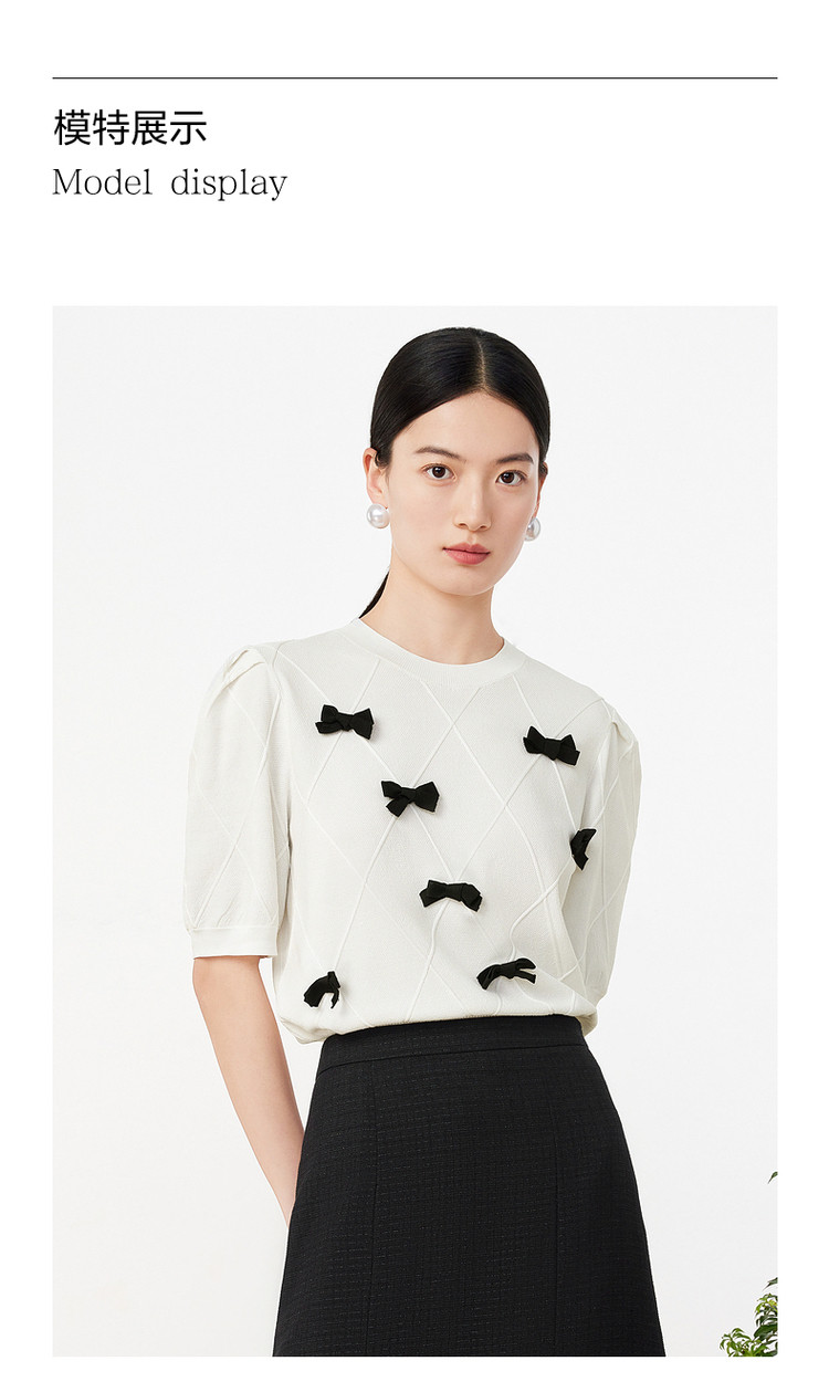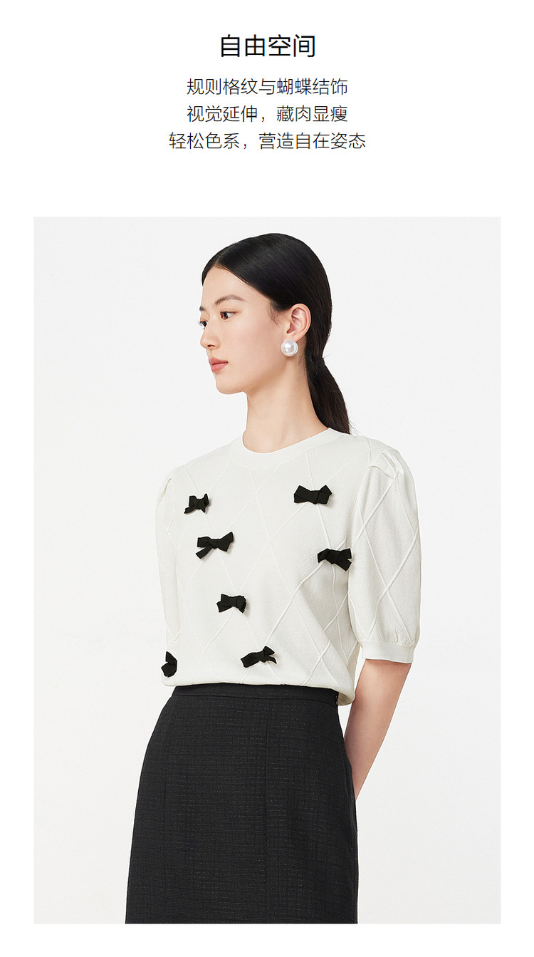 商品名称:玖姿旗下安娜蔻系列轻熟法式直筒格纹蝴蝶结针织套头毛衫女夏季 111820