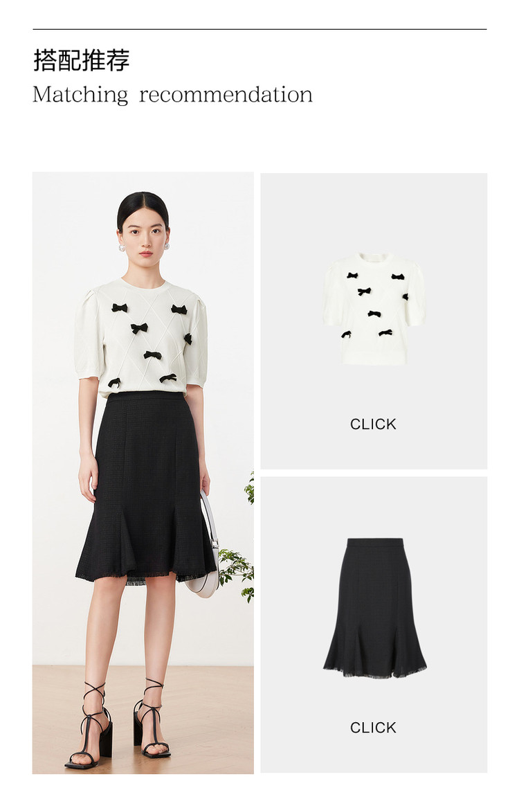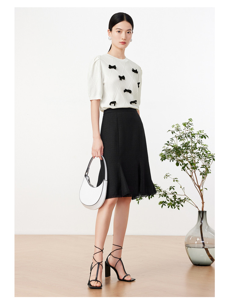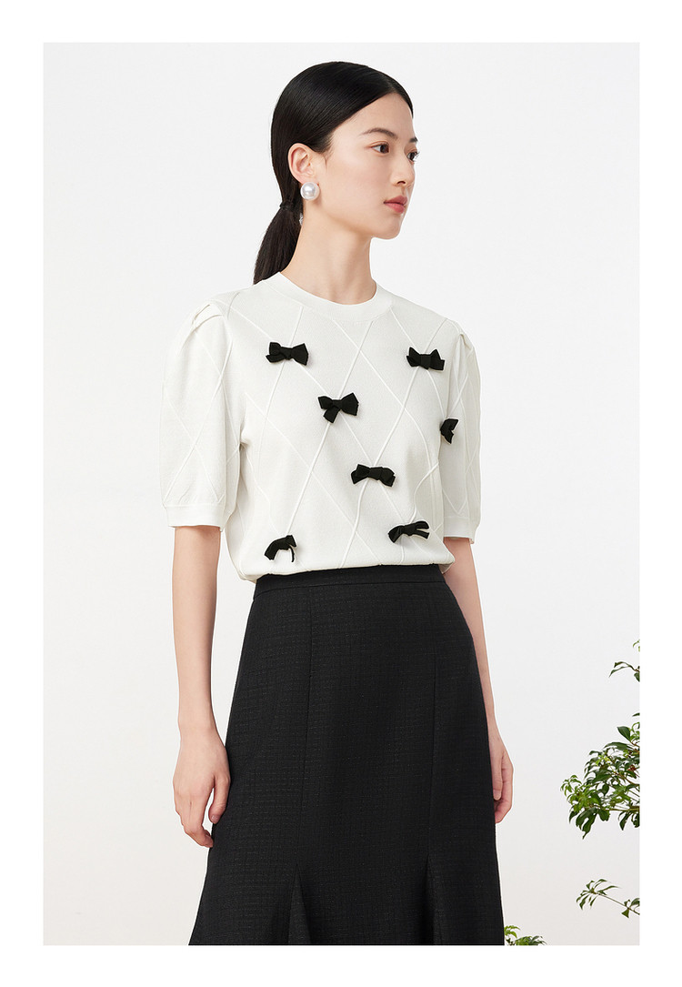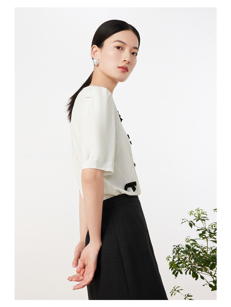 商品名称:玖姿旗下安娜蔻系列轻熟法式直筒格纹蝴蝶结针织套头毛衫女夏季 111820