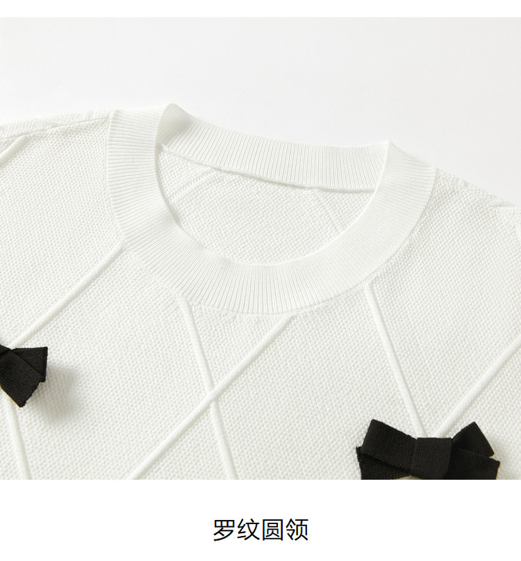 玖姿旗下安娜蔻系列轻熟法式直筒格纹蝴蝶结针织套头毛衫女夏季 111820