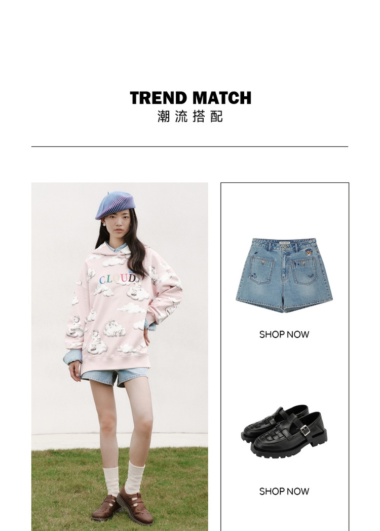 商品名称:小熊甜趣连帽宽松舒适刺绣卫衣上衣女士 630081