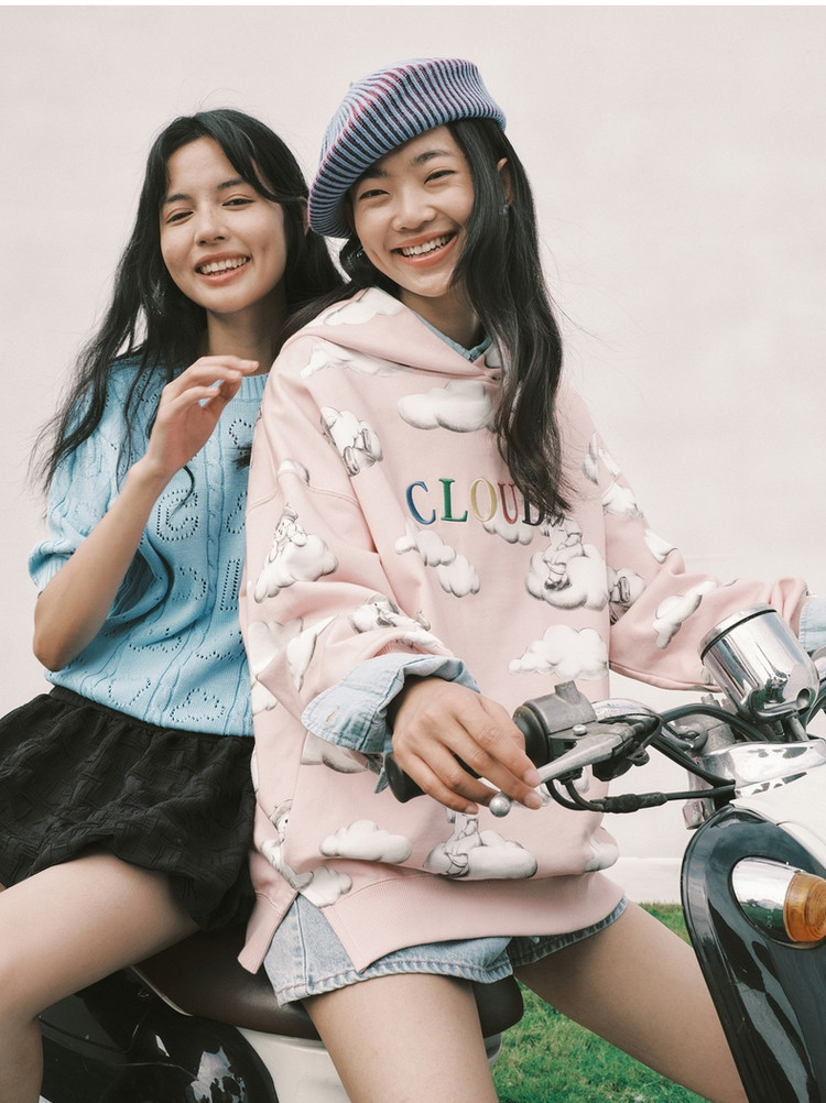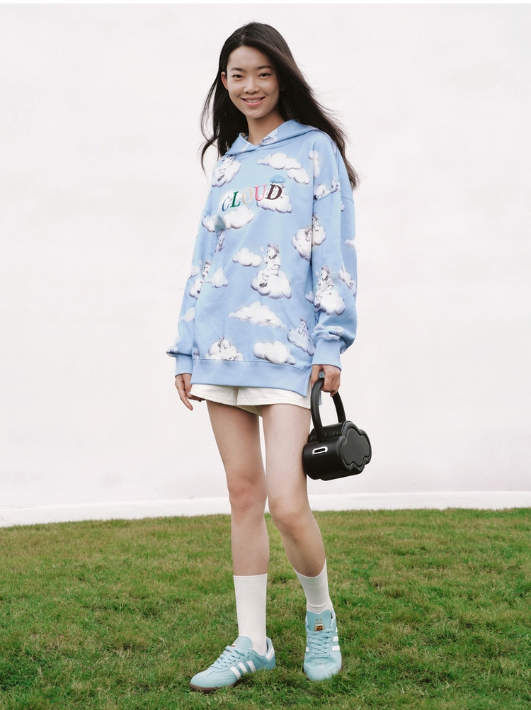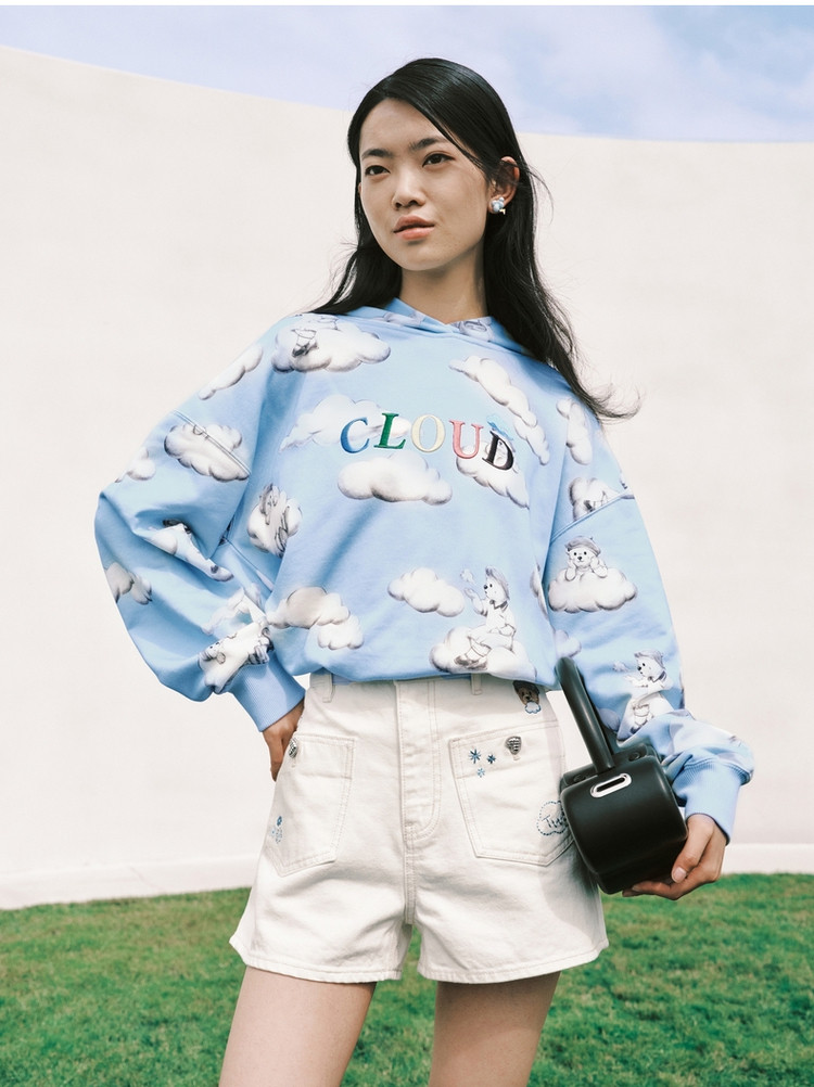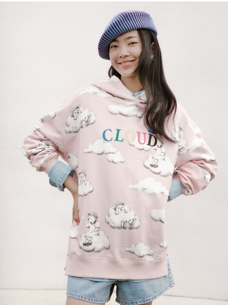 小熊甜趣连帽宽松舒适刺绣卫衣上衣女士 630081