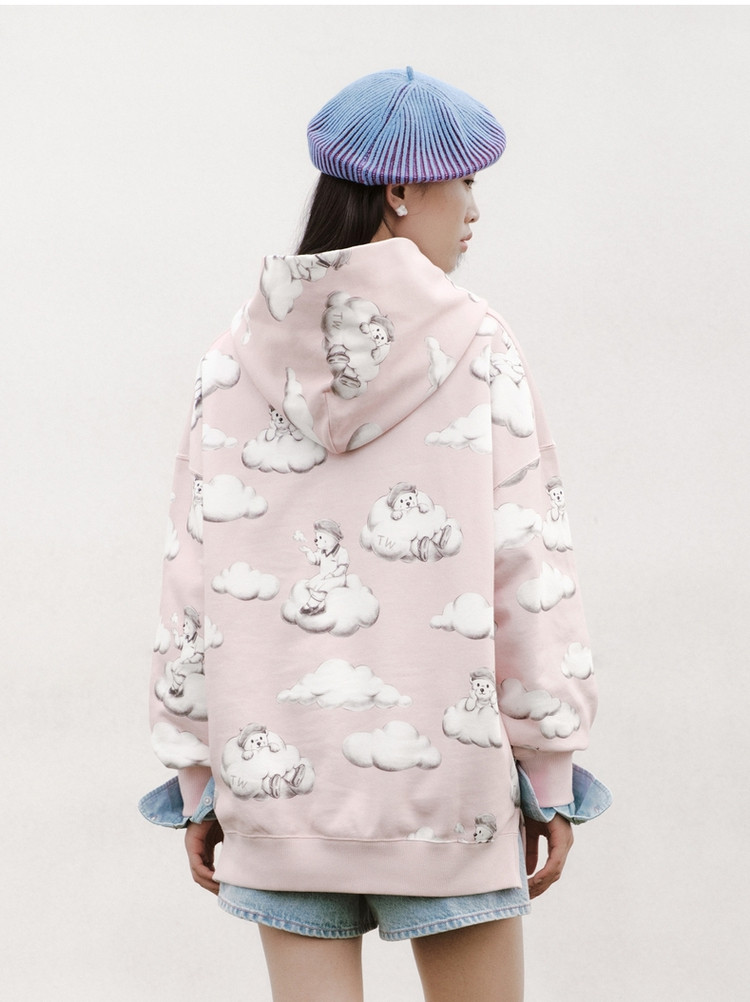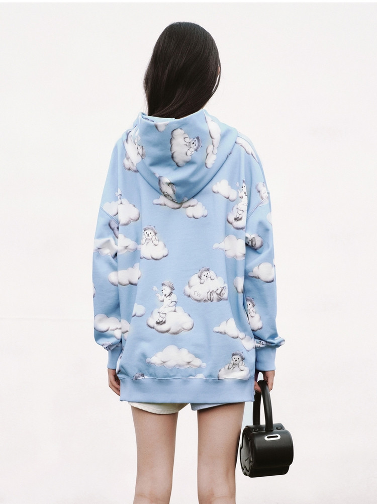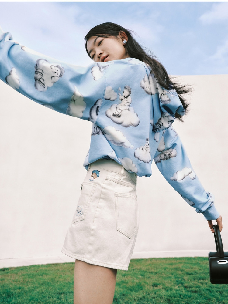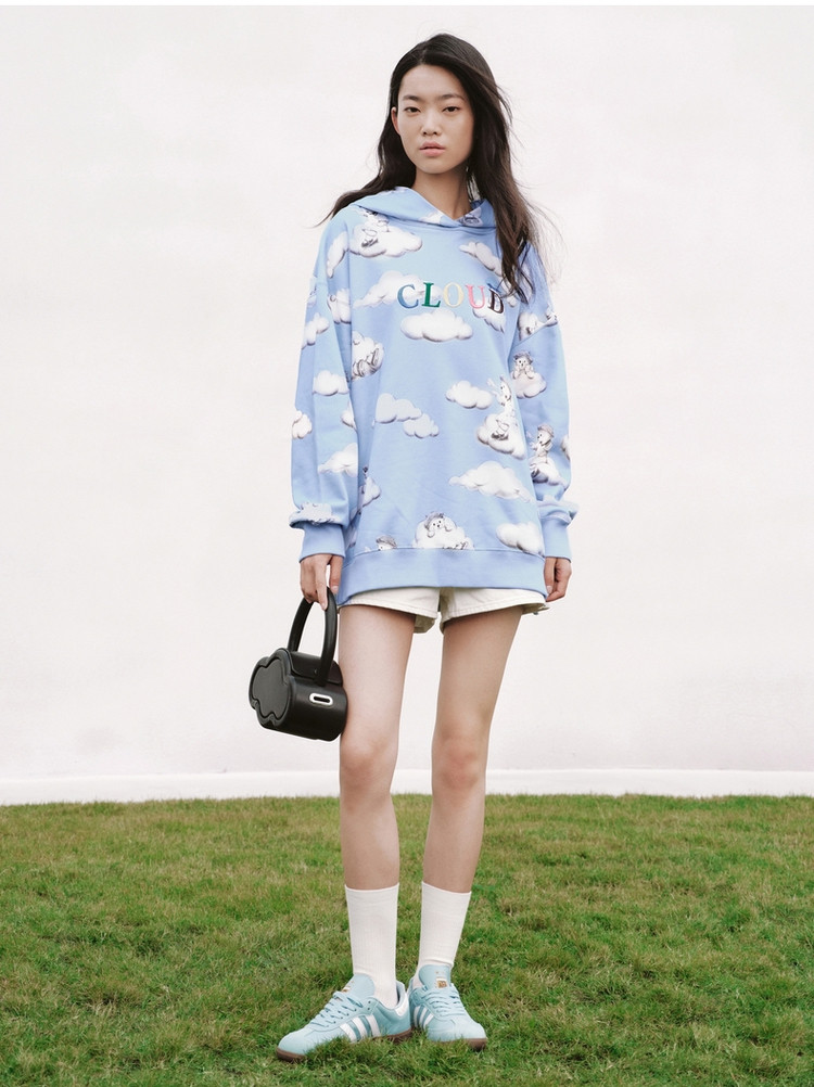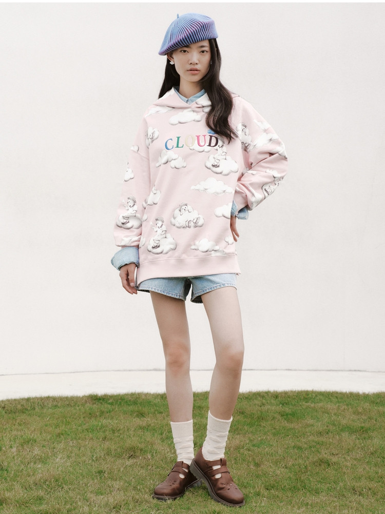 小熊甜趣连帽宽松舒适刺绣卫衣上衣女士 630081