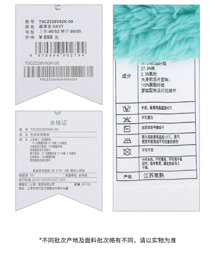 商品名称:小熊男女宝宝春季休闲套装 705921