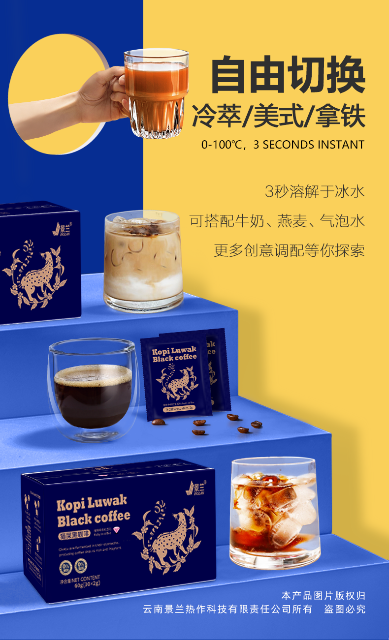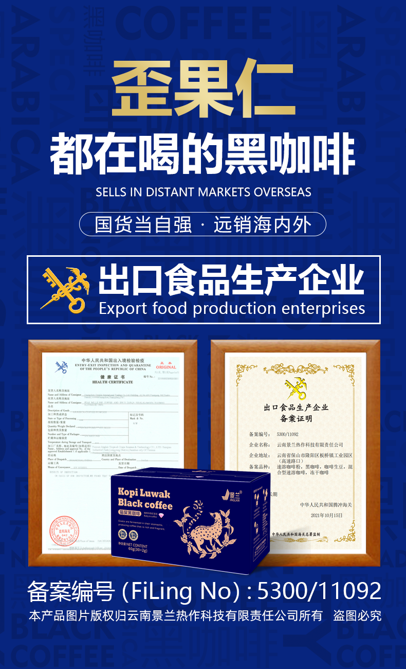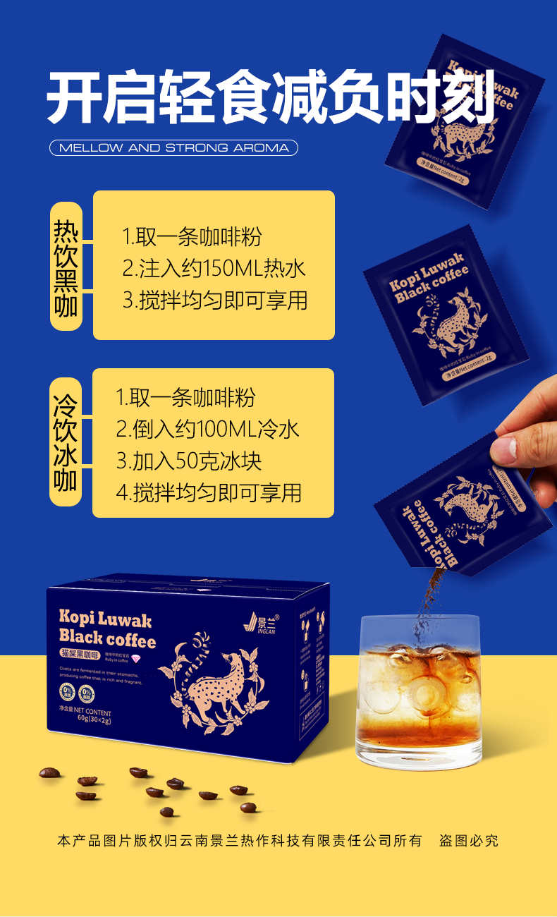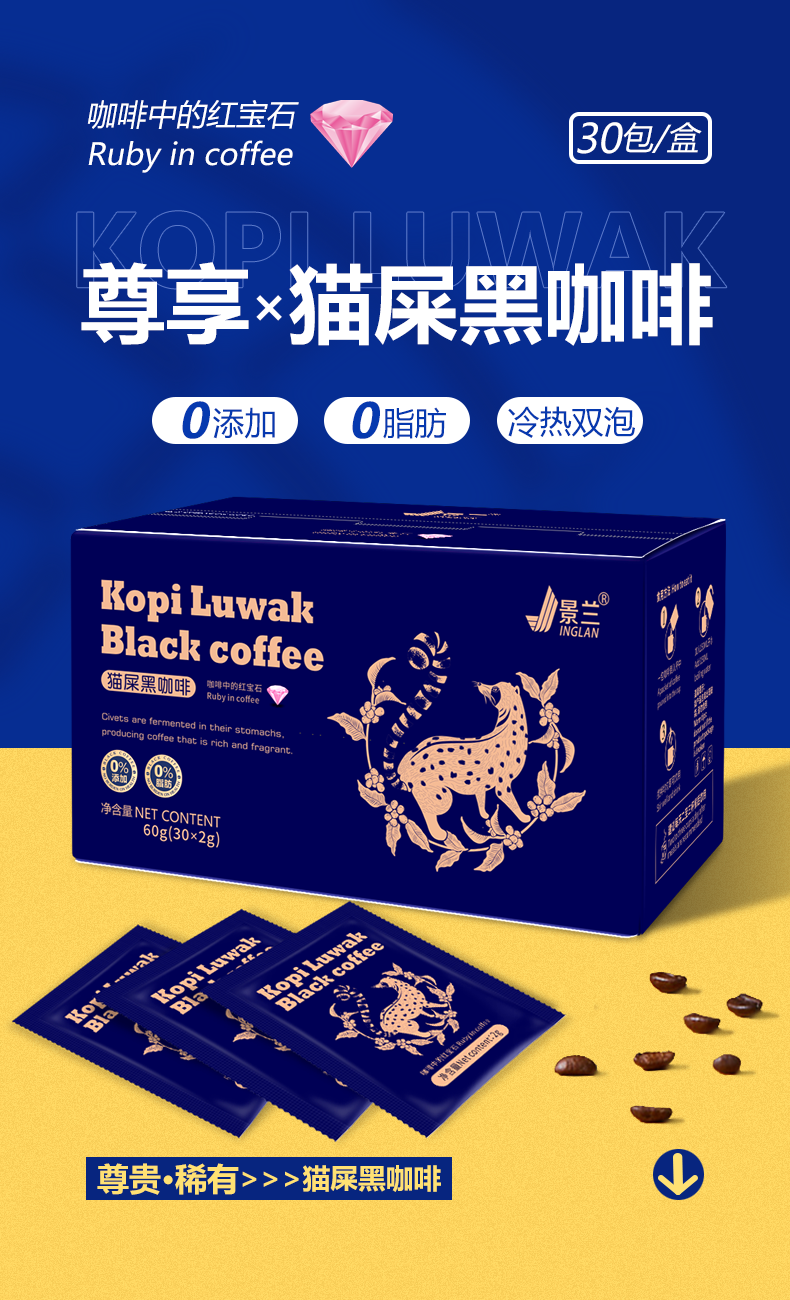 商品名称:景兰玫金款猫屡黑咖啡盒装30袋 60克