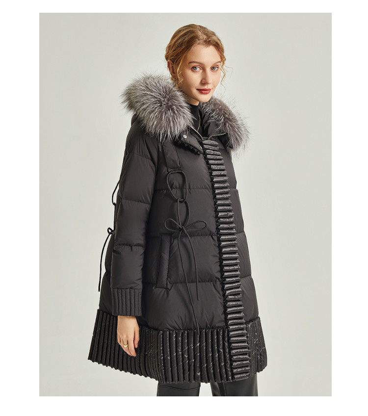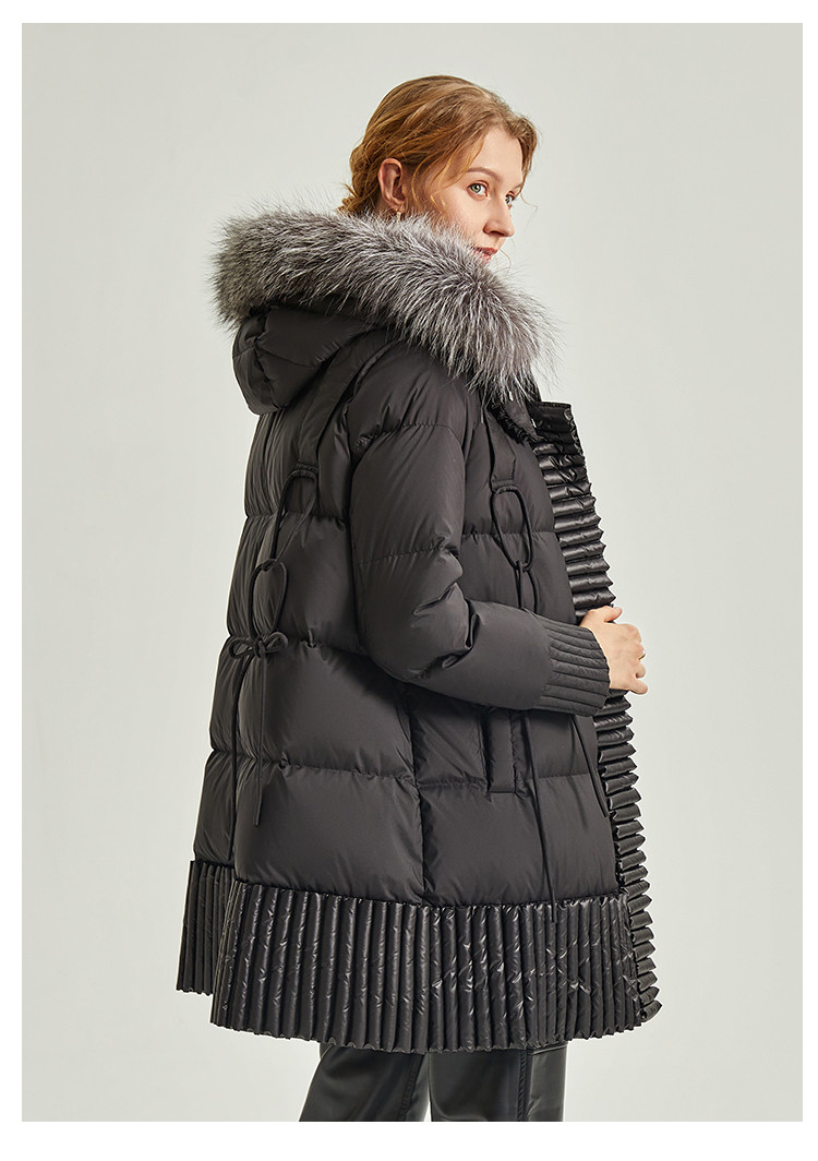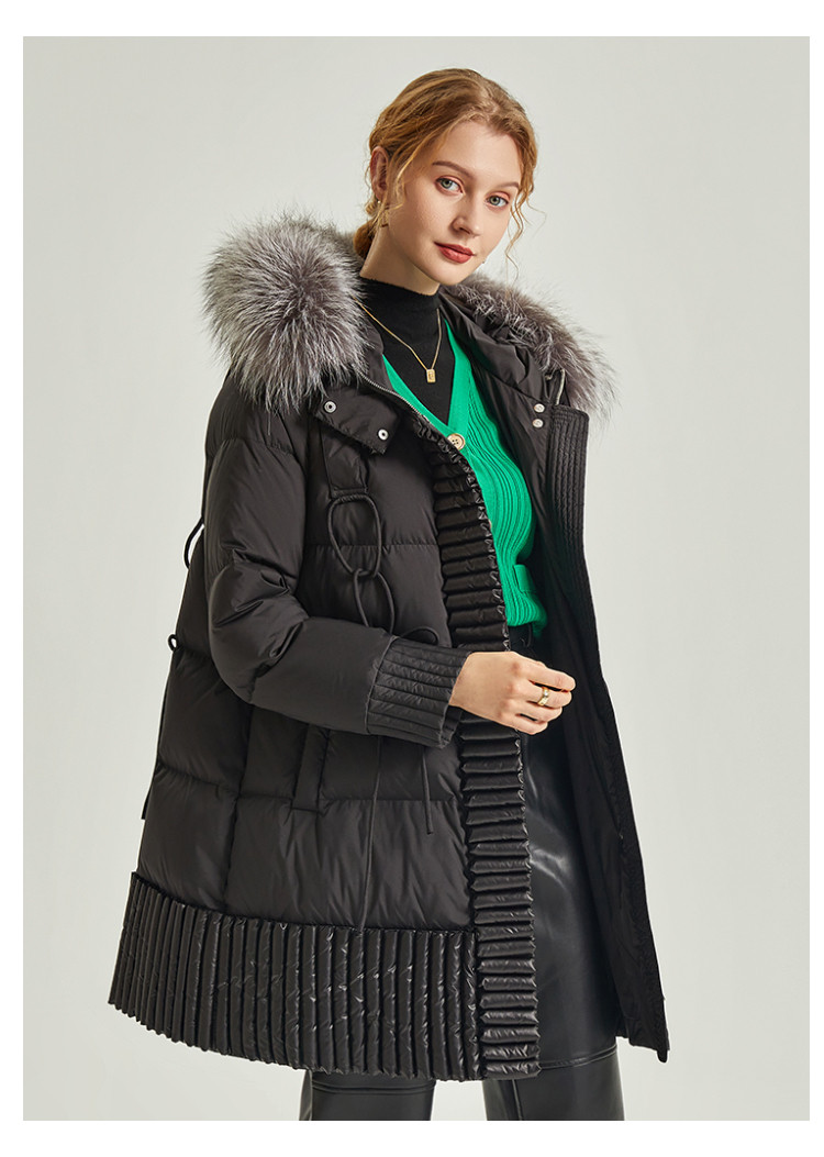 商品名称:【鹅绒】轻柔零压无束加厚女士学院风减龄连帽宽松中长款羽绒服 328415