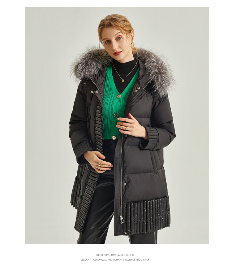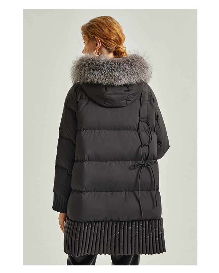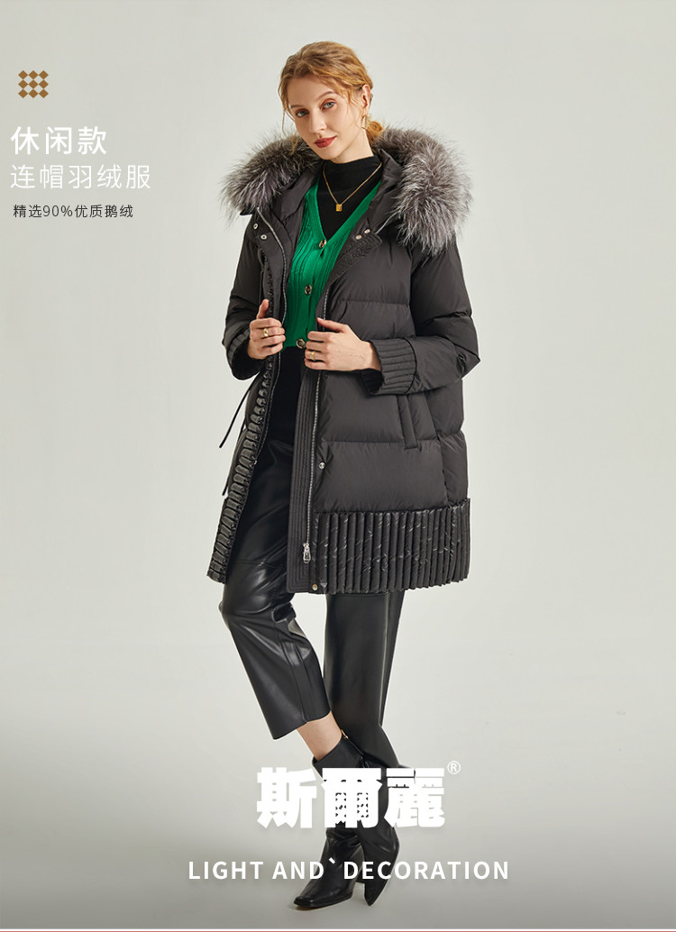 【鹅绒】轻柔零压无束加厚女士学院风减龄连帽宽松中长款羽绒服 328415