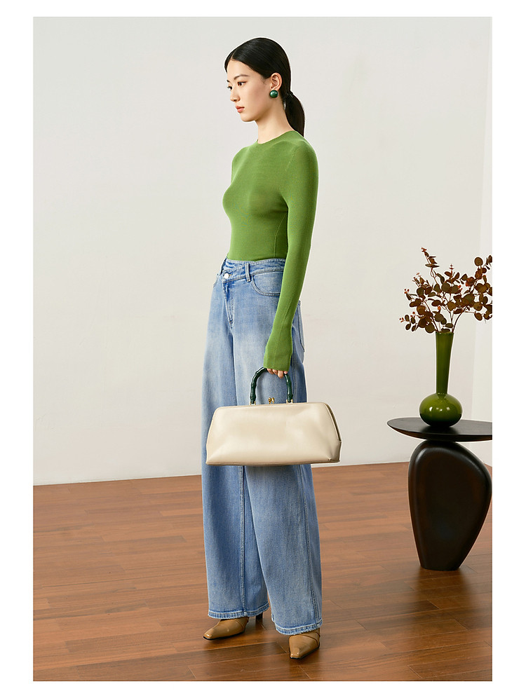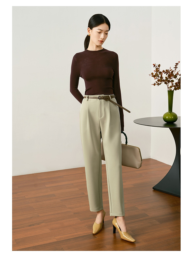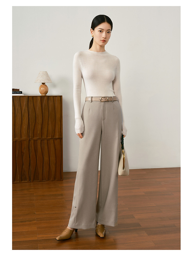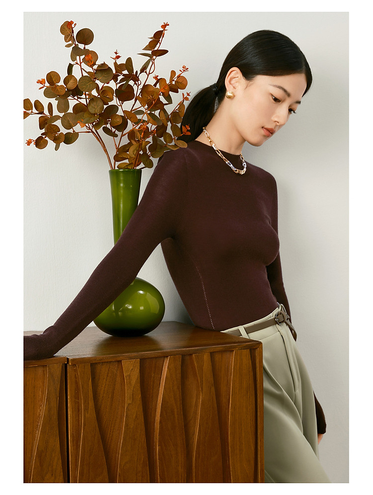 玖姿旗下安娜蔻系列羊毛长袖无缝打底衫毛衣女秋季 852044