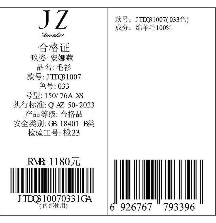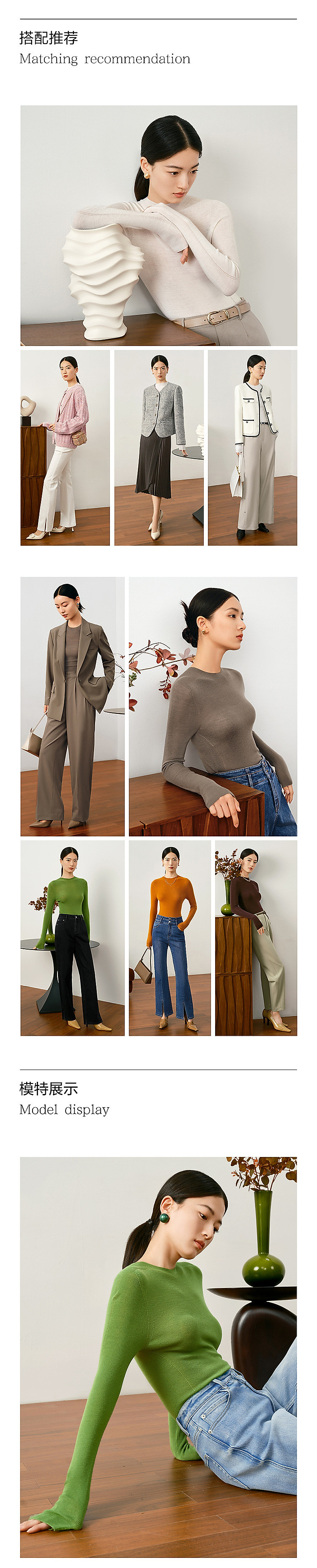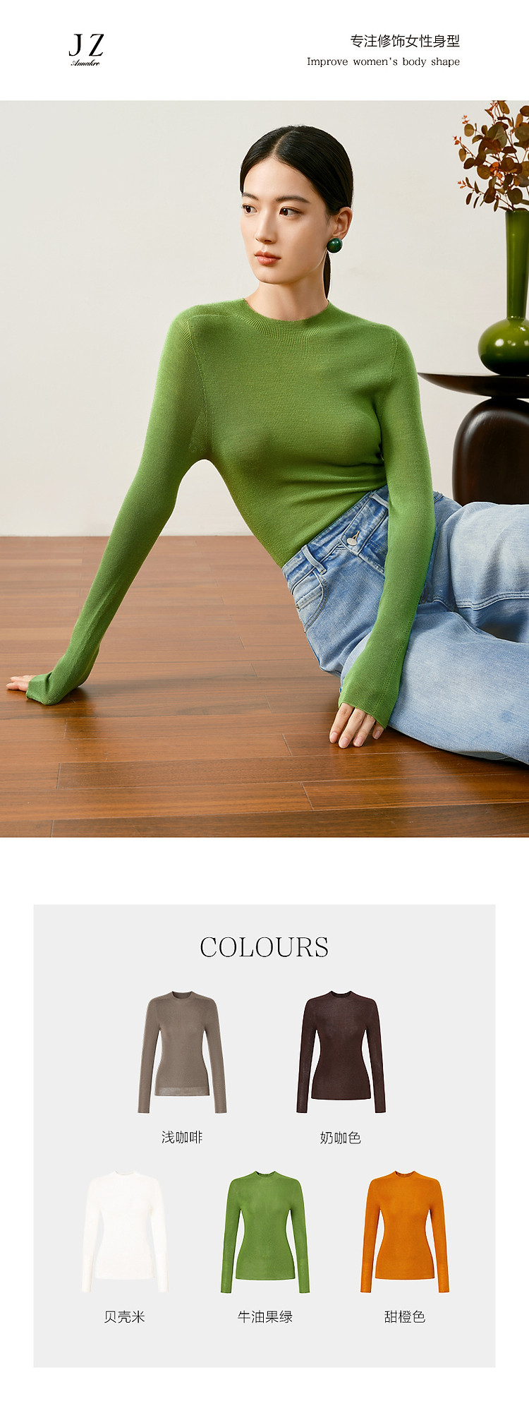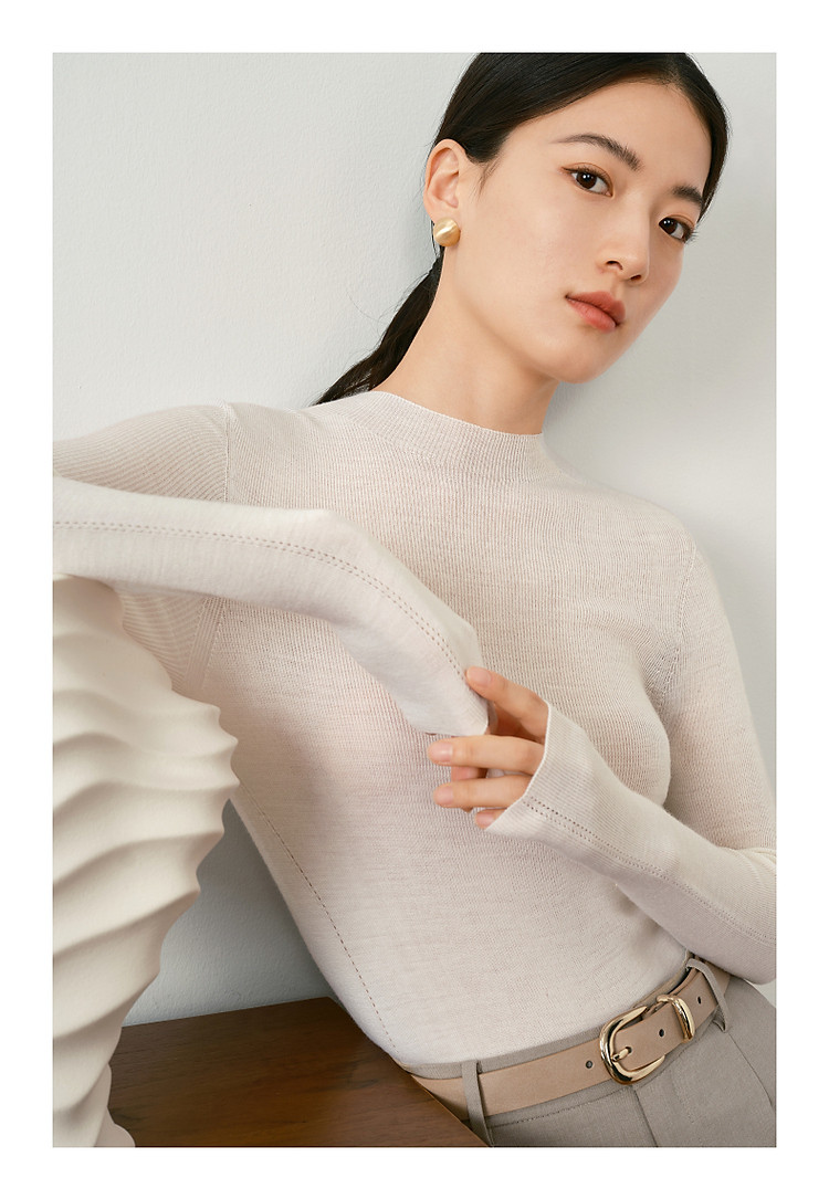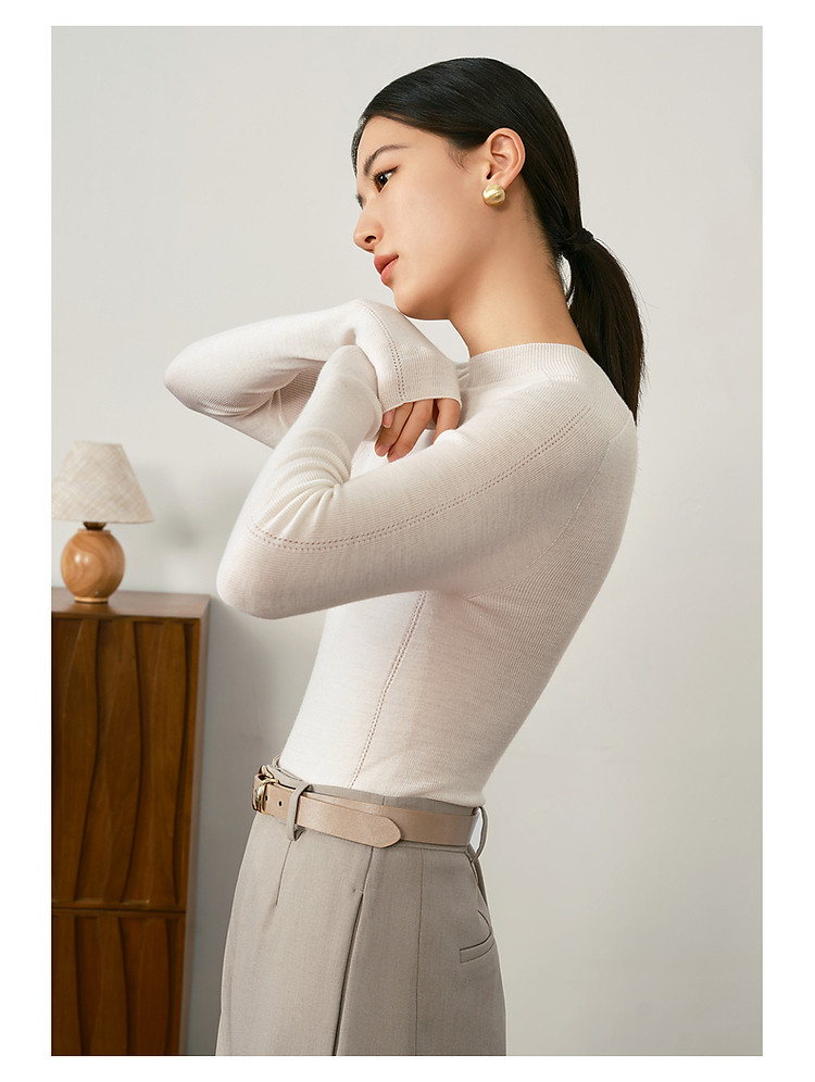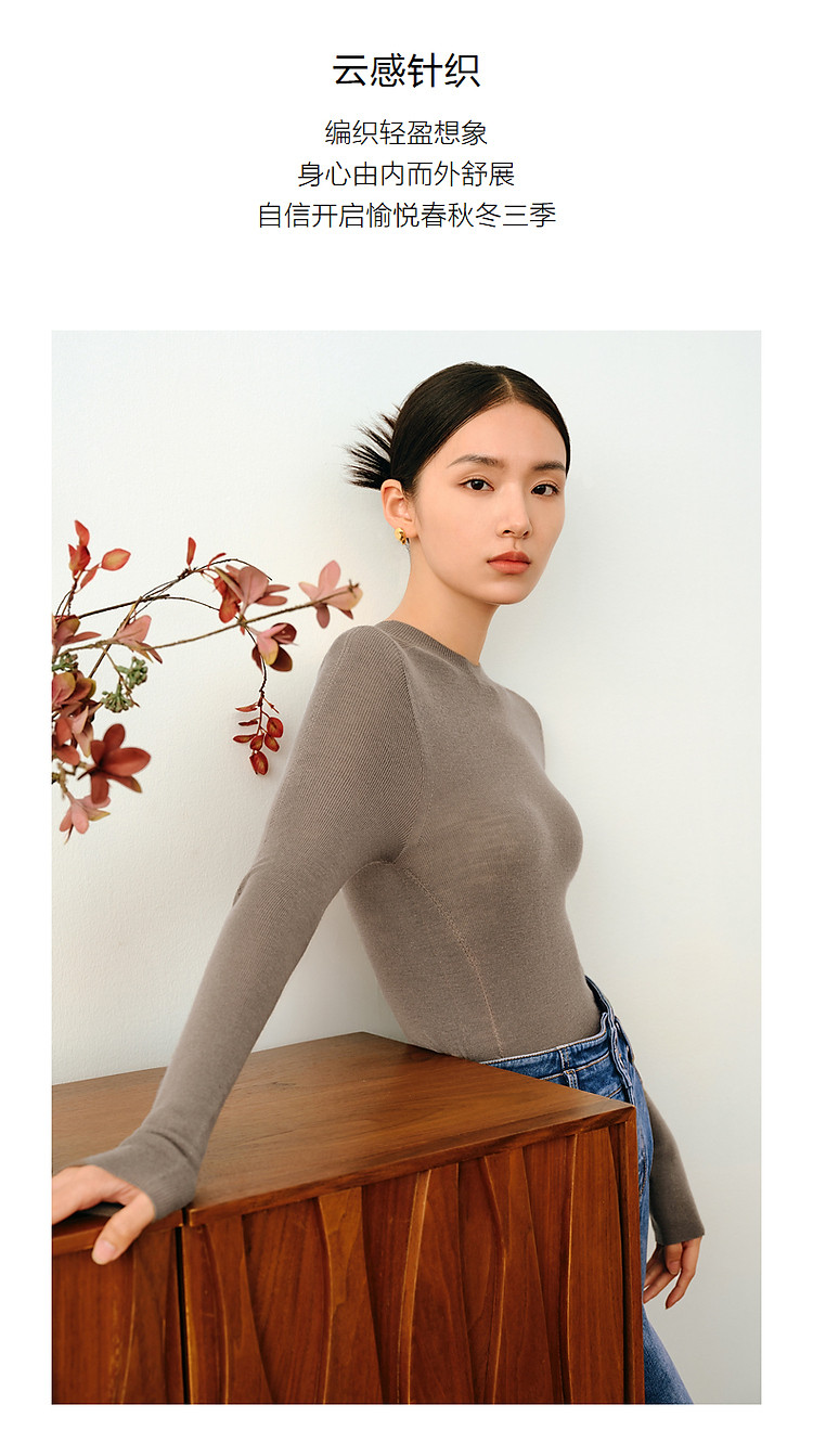 商品名称:玖姿旗下安娜蔻系列羊毛长袖无缝打底衫毛衣女秋季 852044