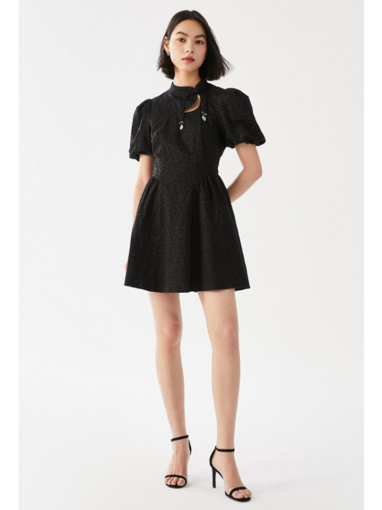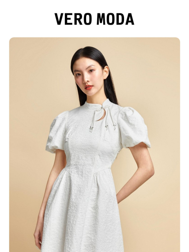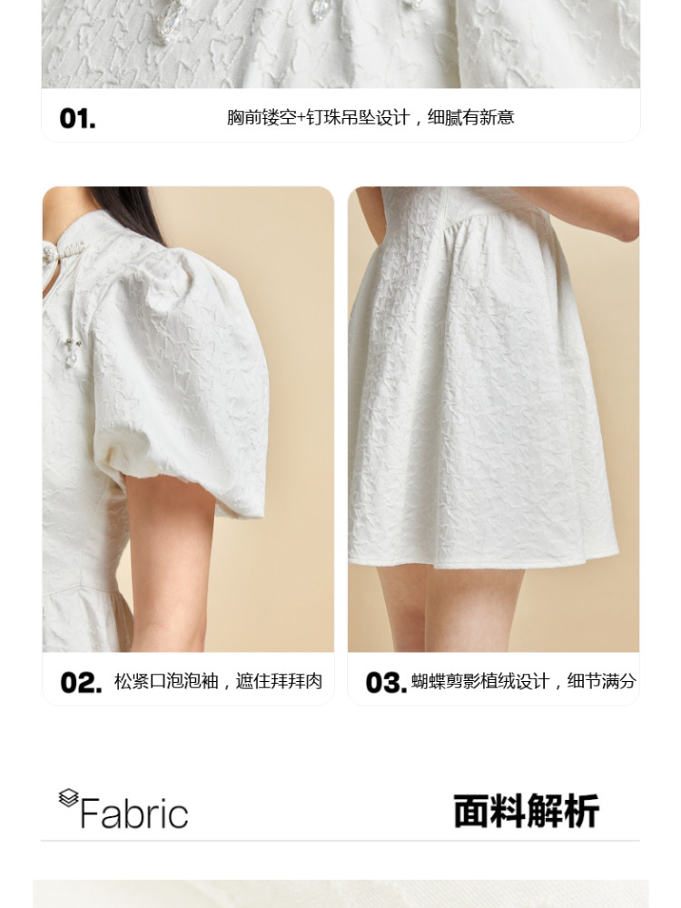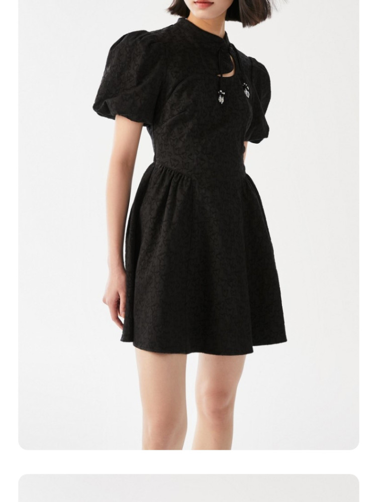 商品名称:【新中式改良旗袍】春夏镂空盘扣钉珠吊坠A摆专柜连衣裙百搭时尚 114449