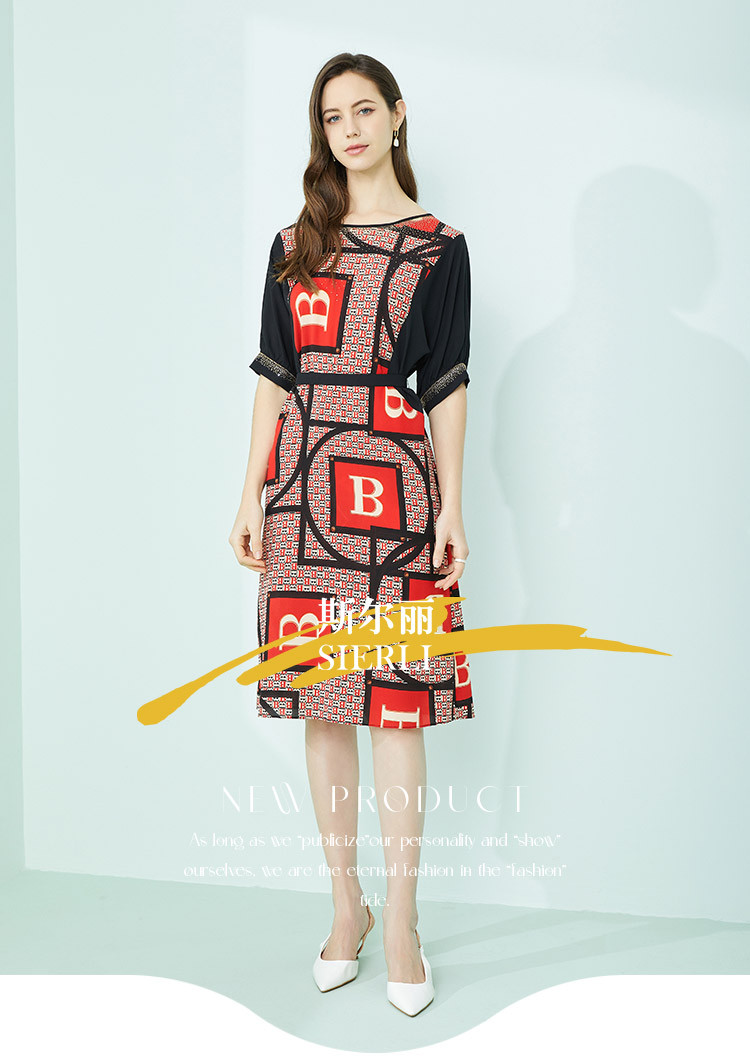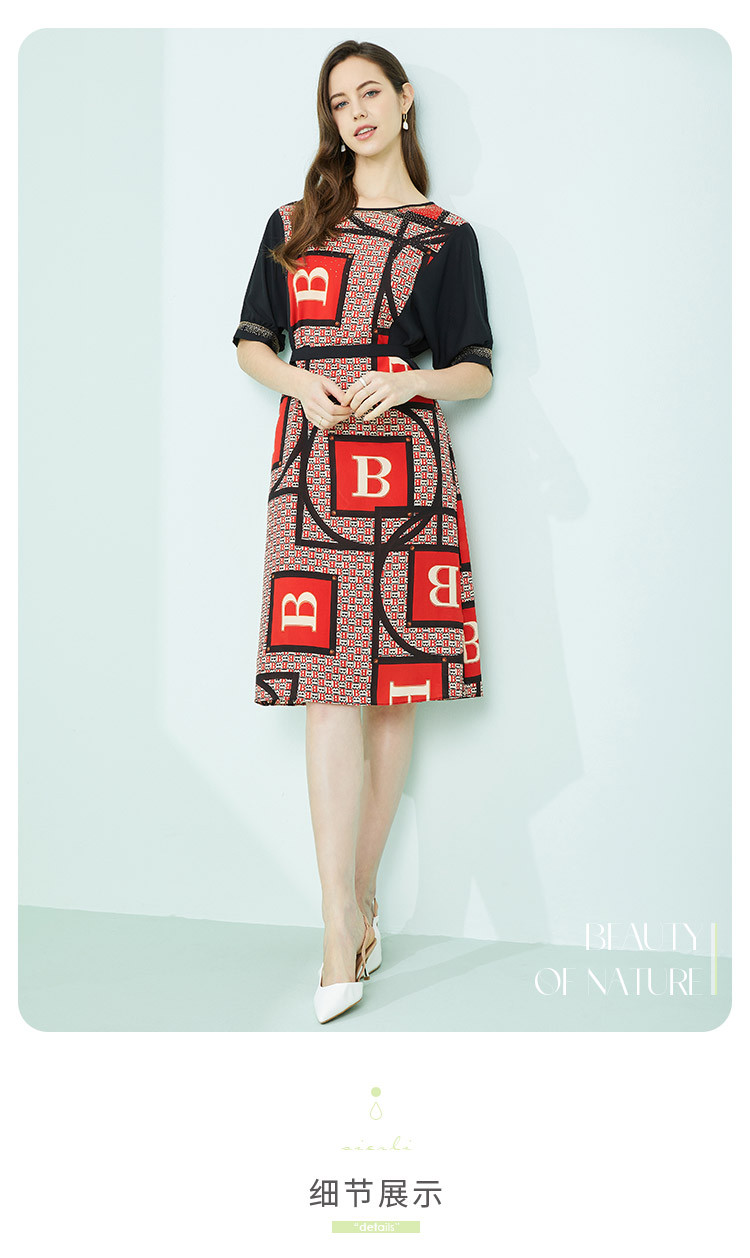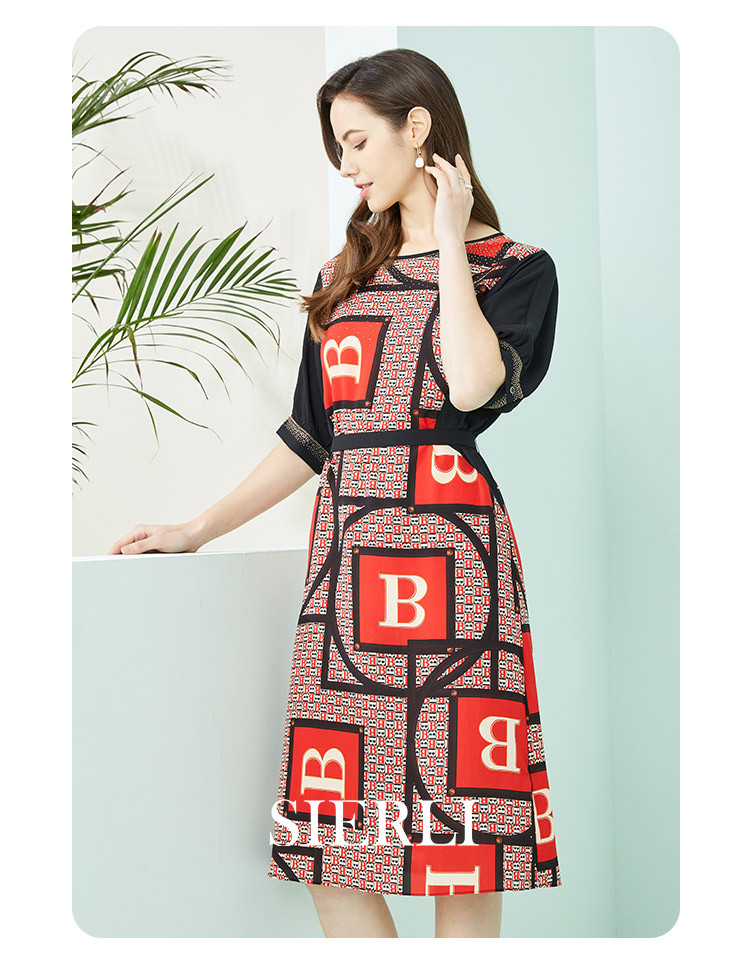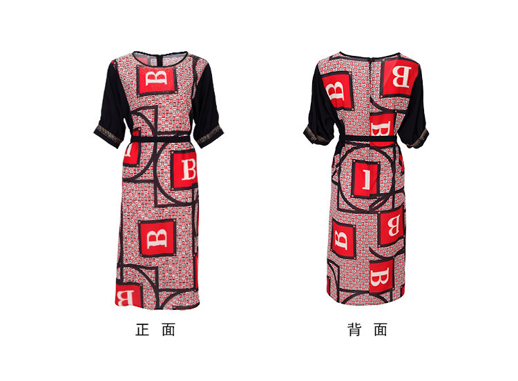商品名称:商场同款秋季气质高腰多元素字母印花圆领短袖连衣裙 279711