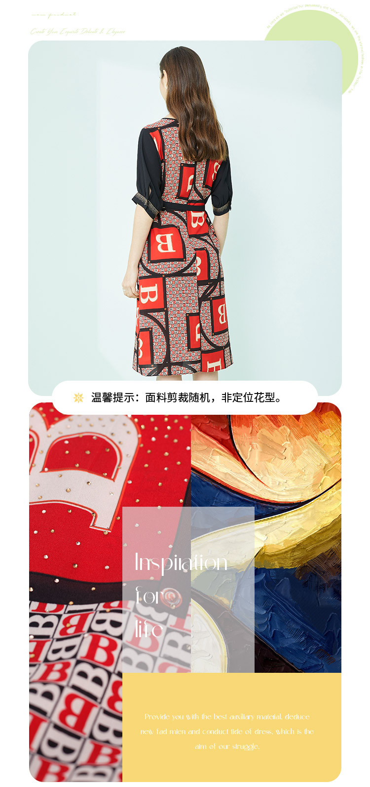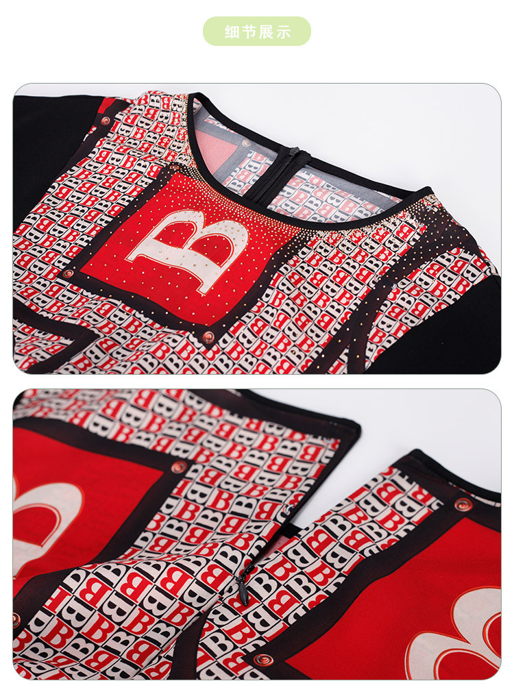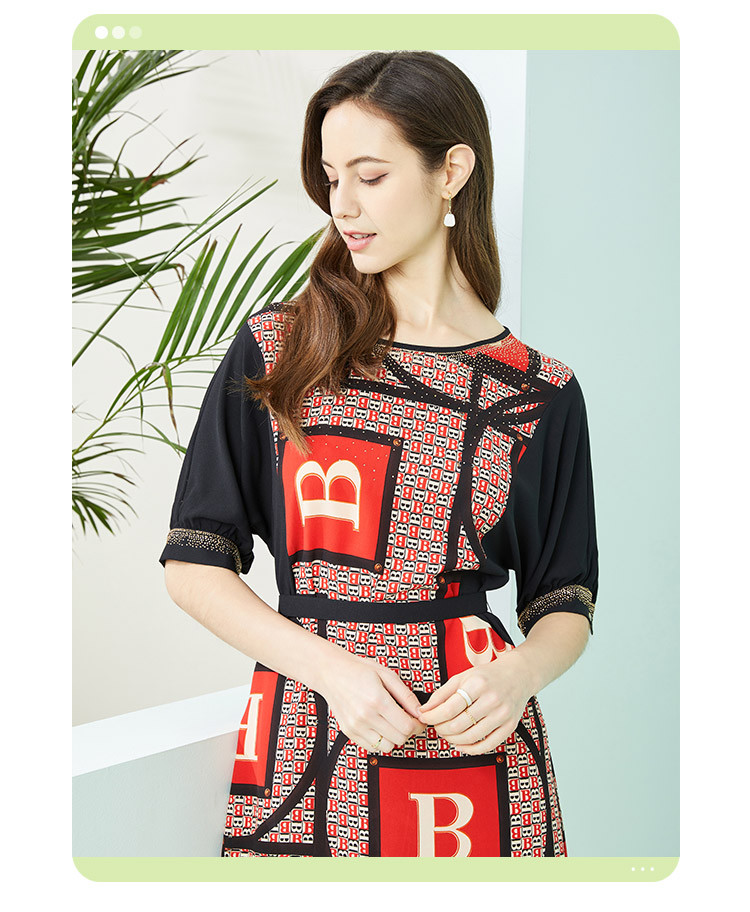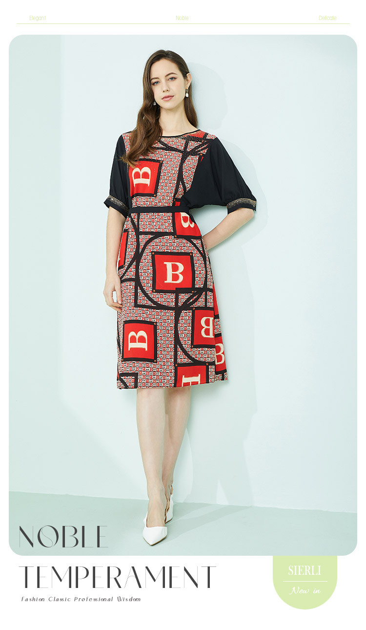 商品名称:商场同款秋季气质高腰多元素字母印花圆领短袖连衣裙 279711