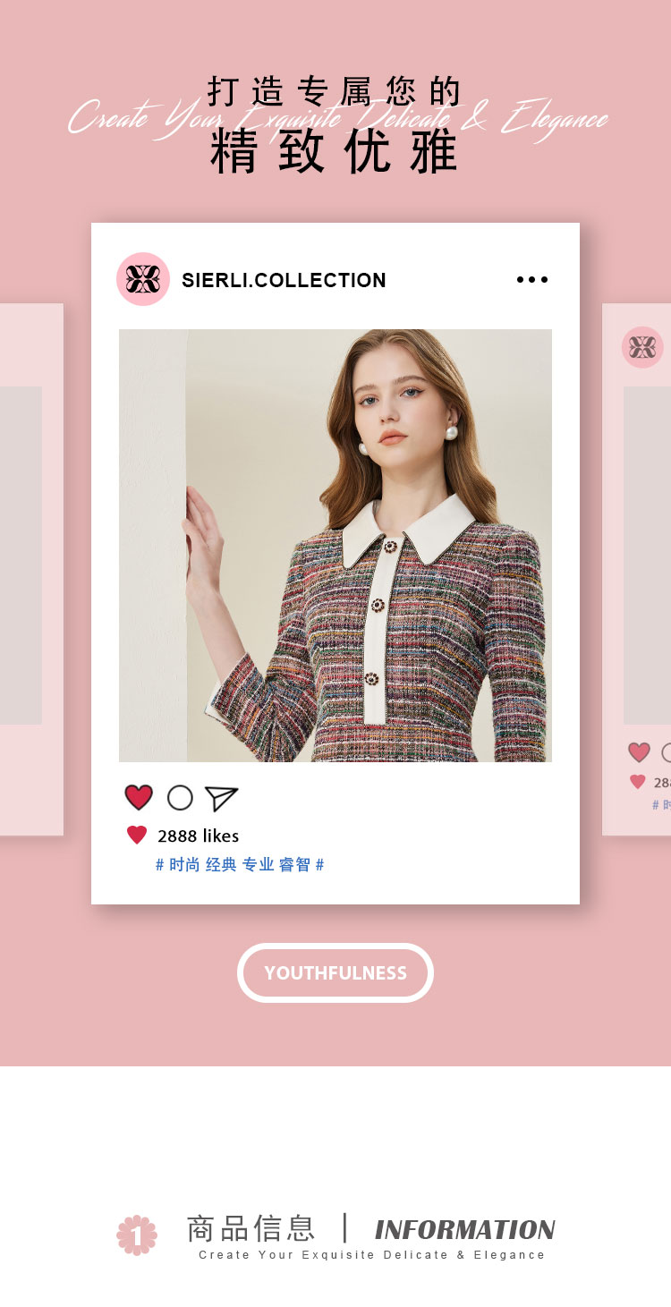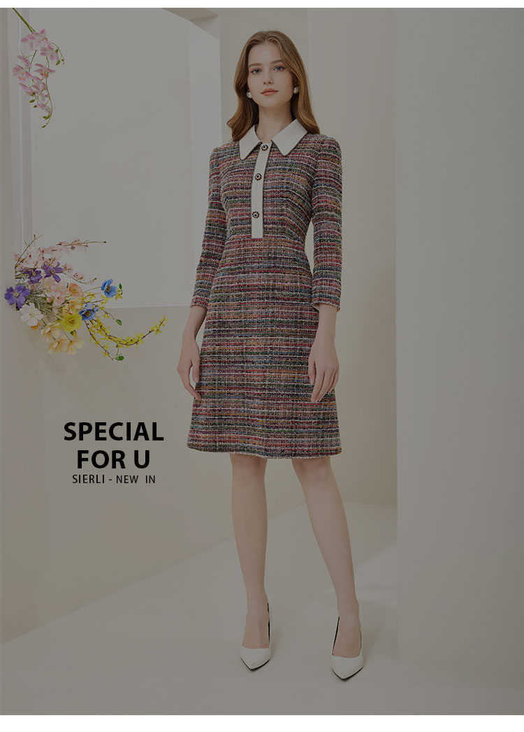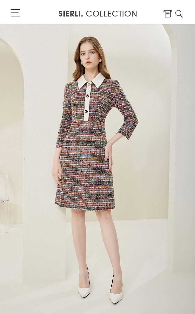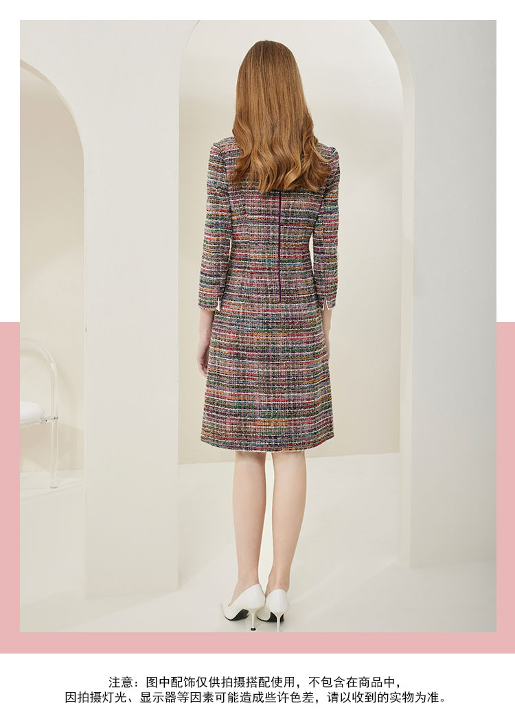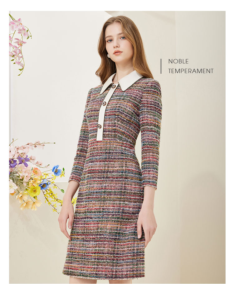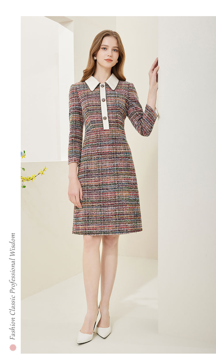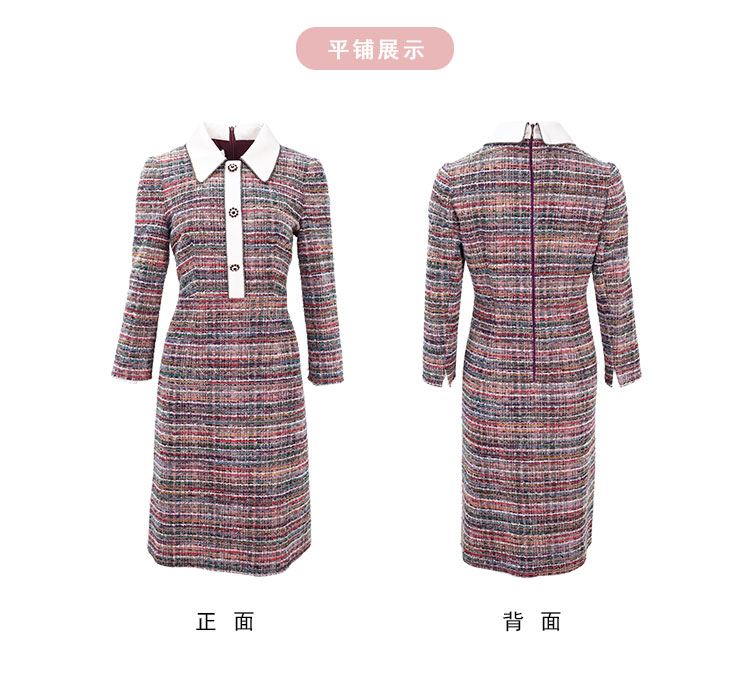 商品名称:法式复古精致小翻领撞色格纹连衣裙 486303
