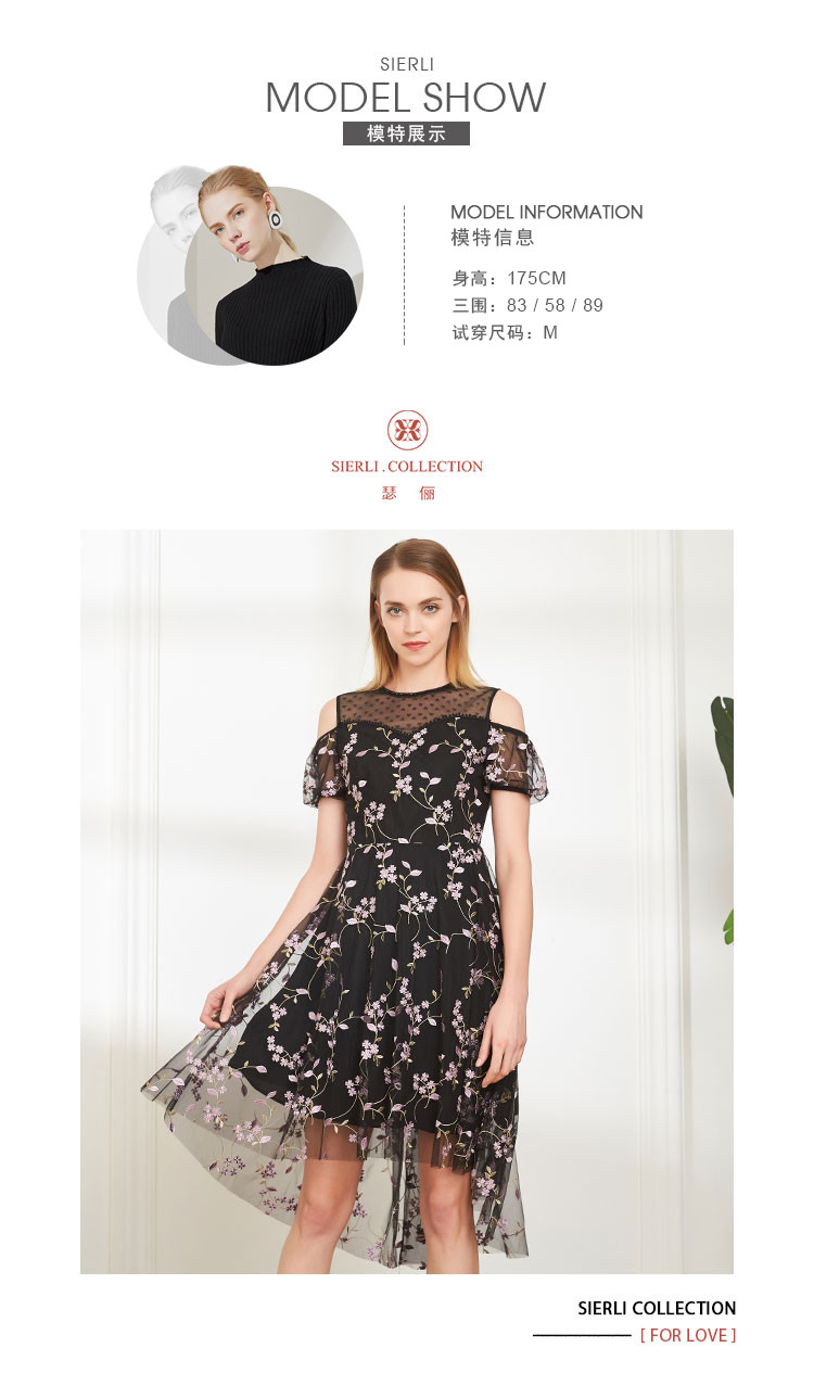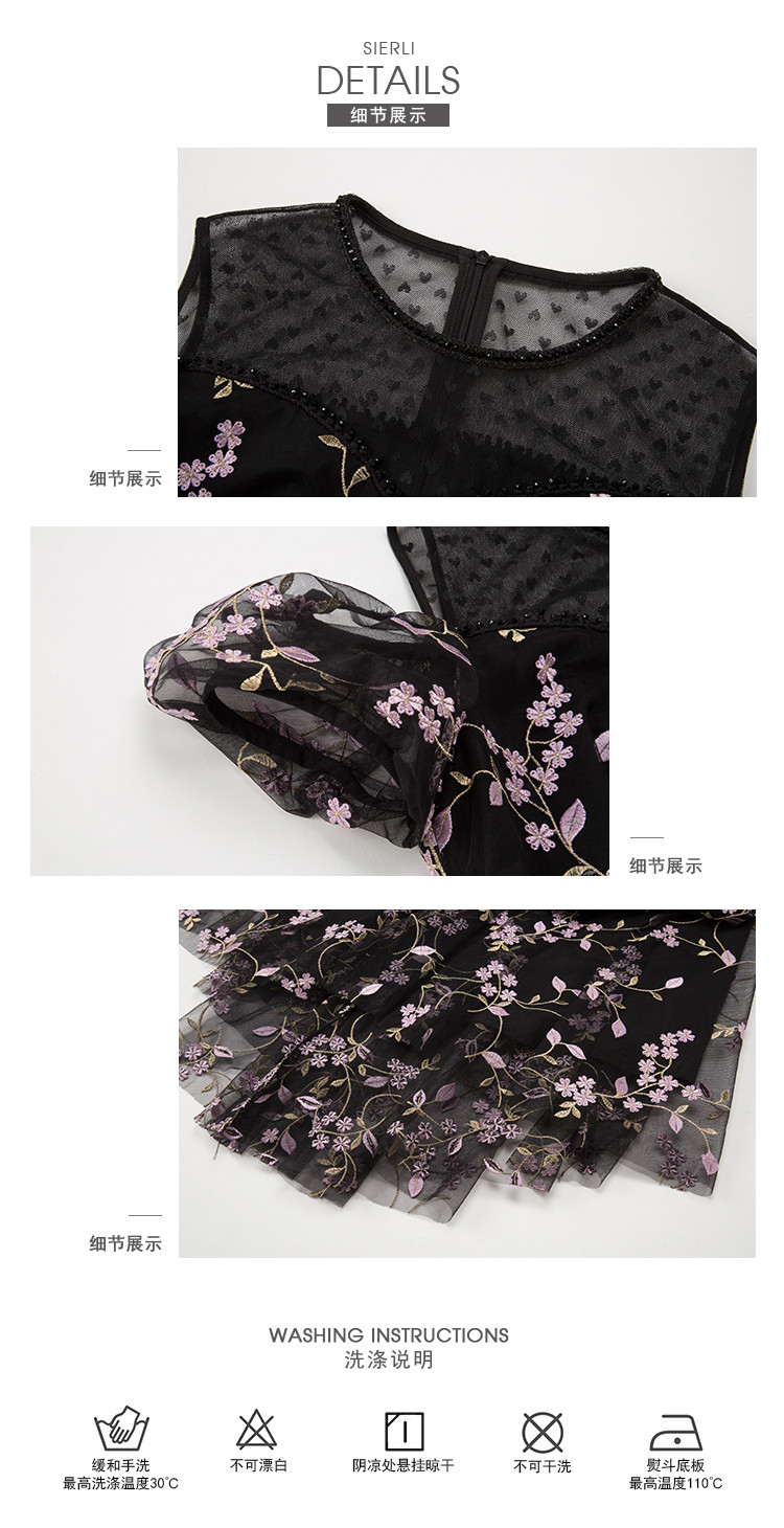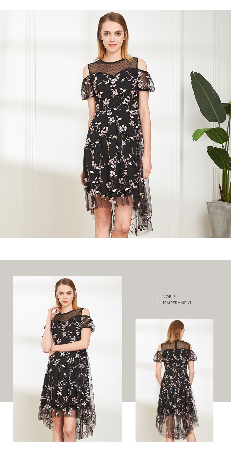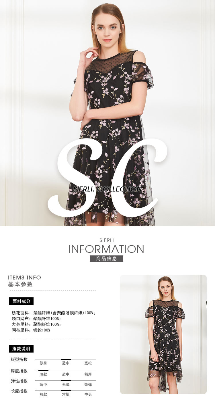 商品名称:商场同款绣花气质优雅中长款短袖连衣裙 539295