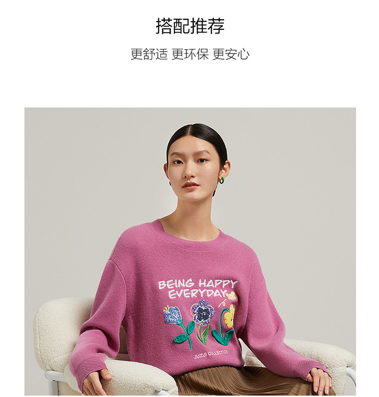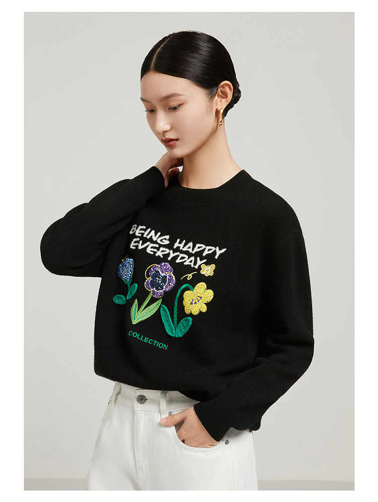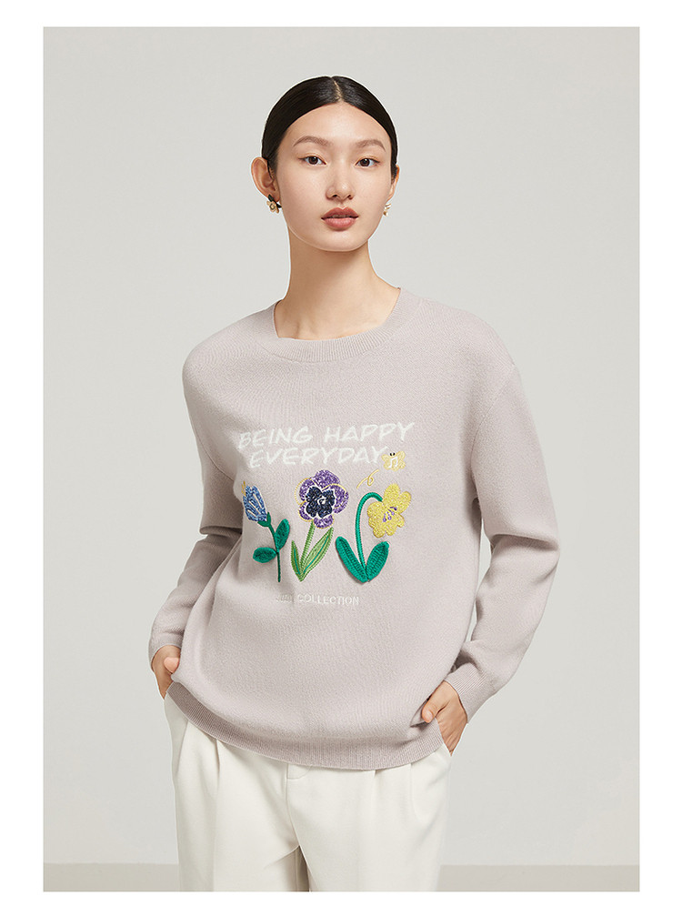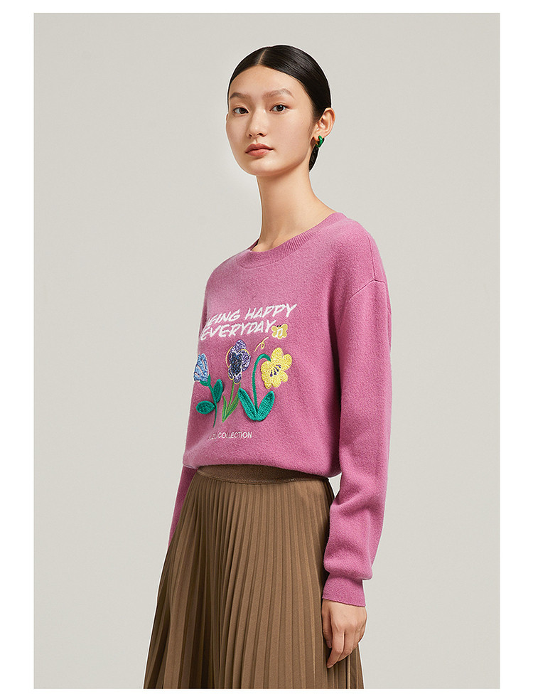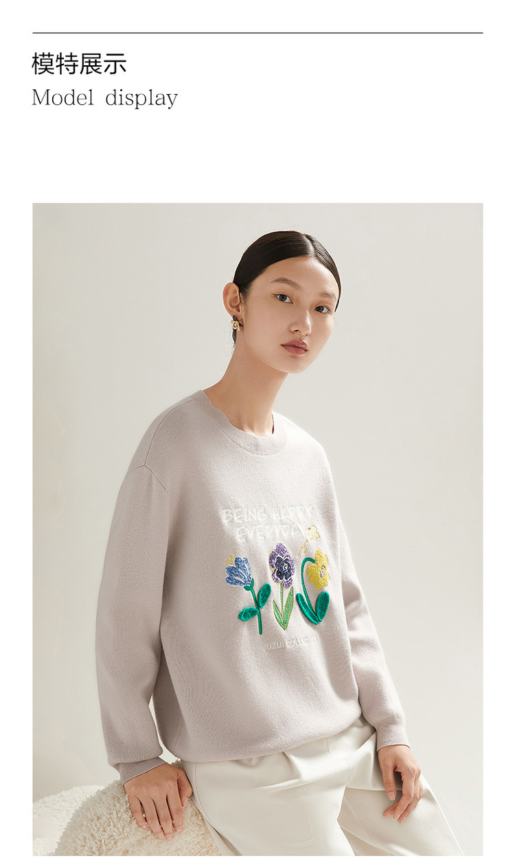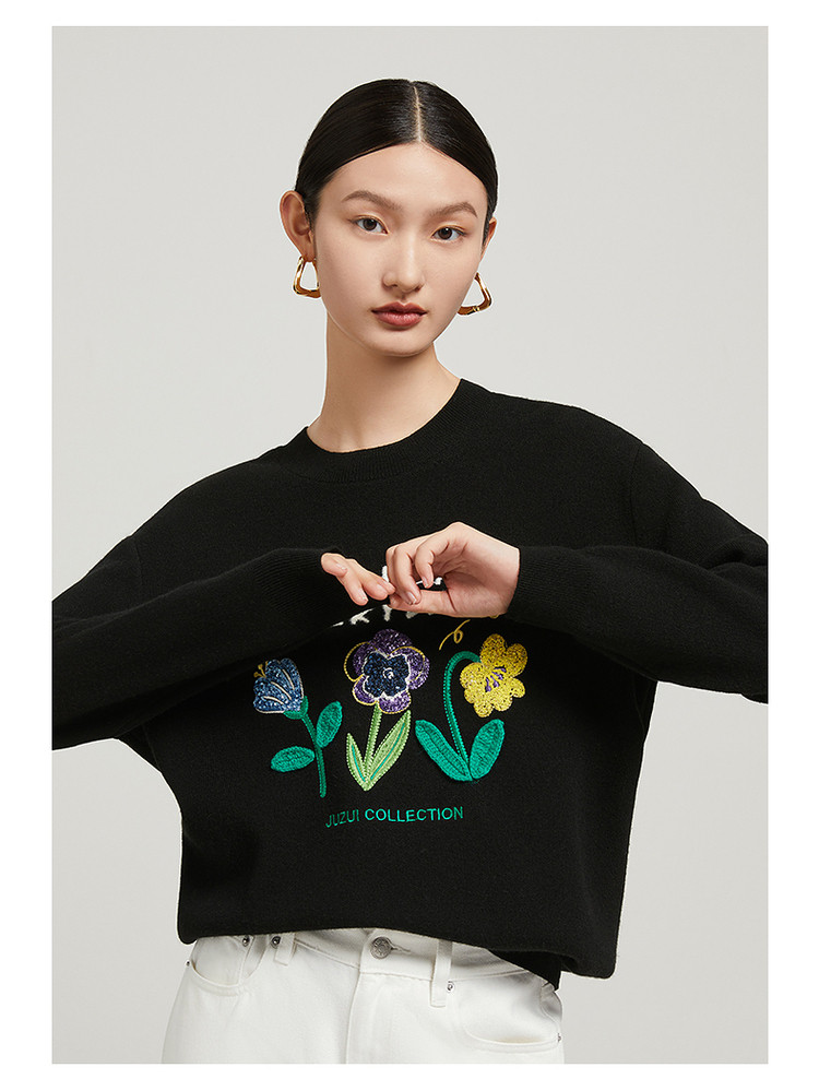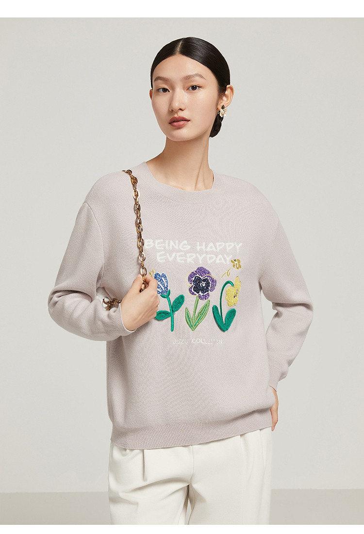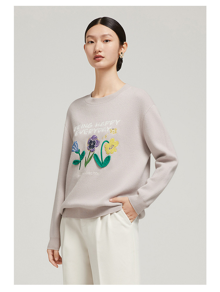 花卉设计感女冬季环保套头针织羊毛衫 327564