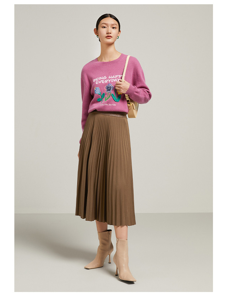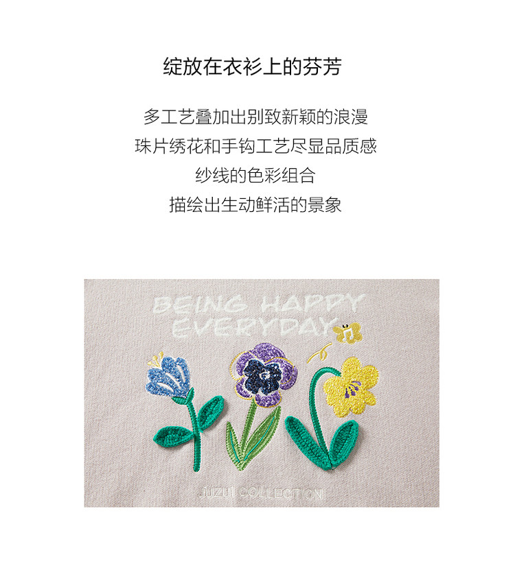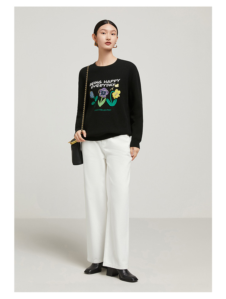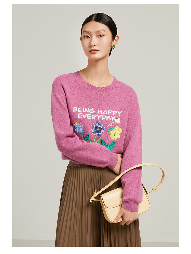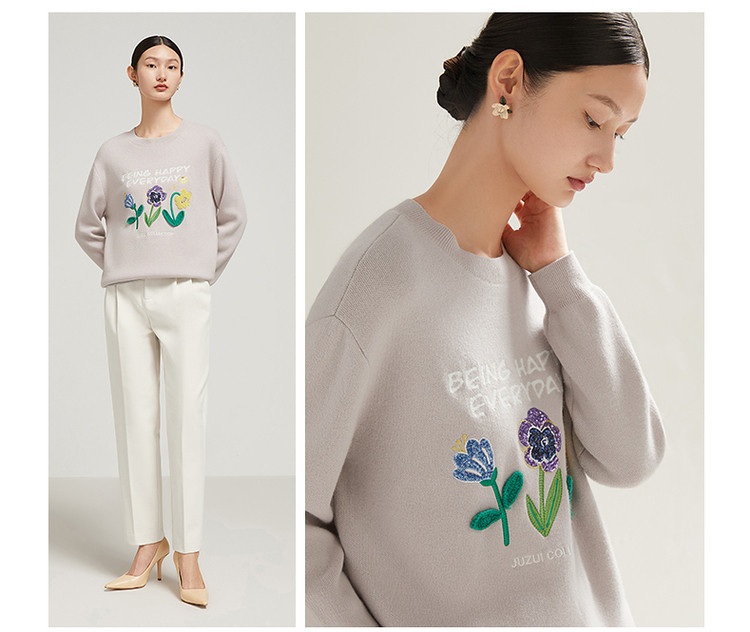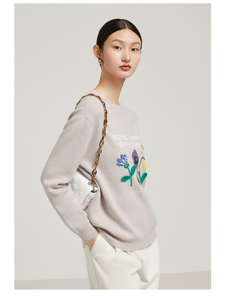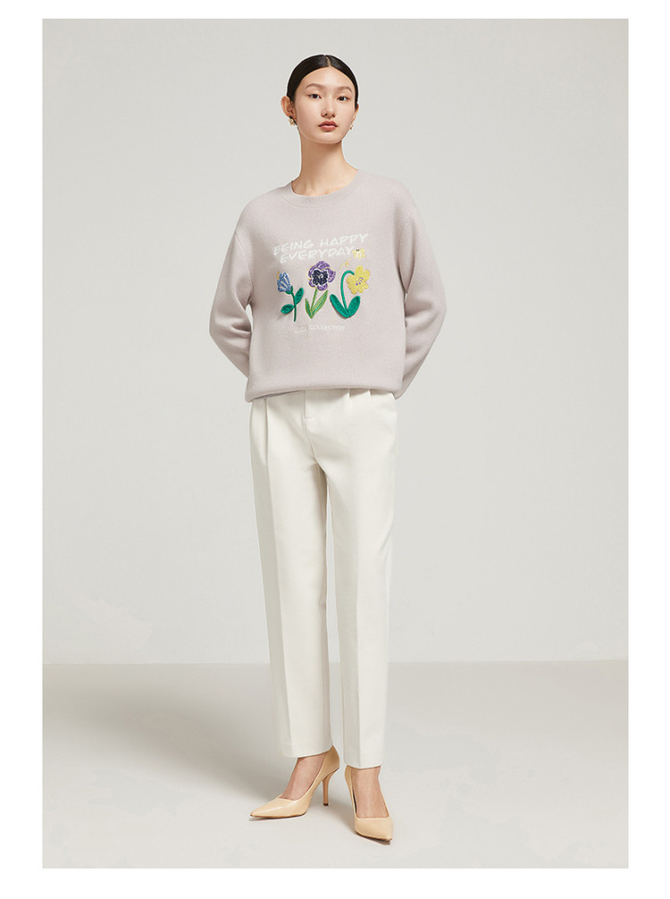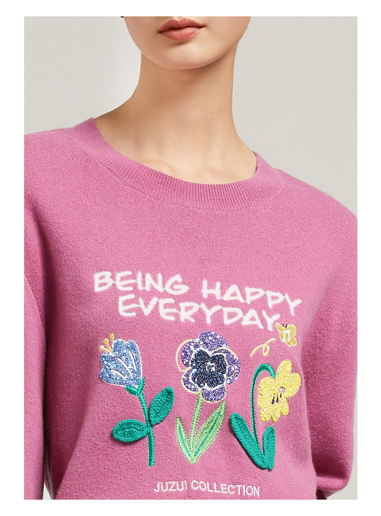 花卉设计感女冬季环保套头针织羊毛衫 327564