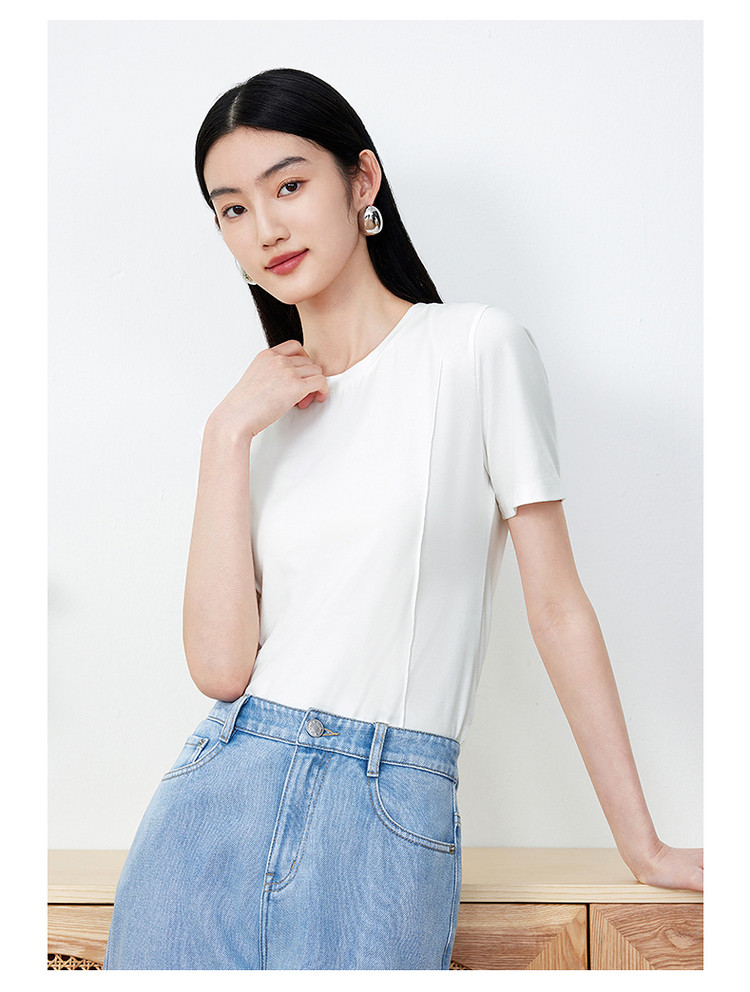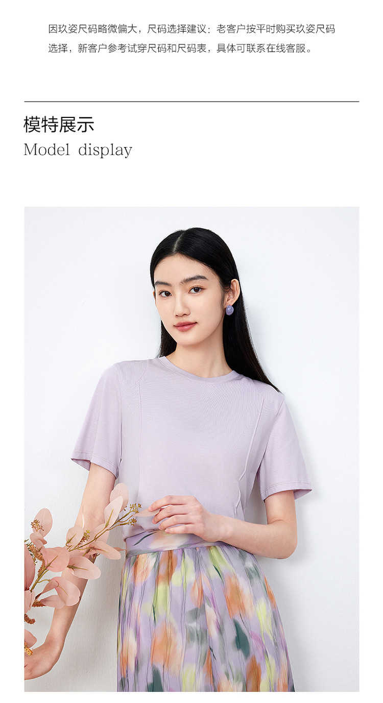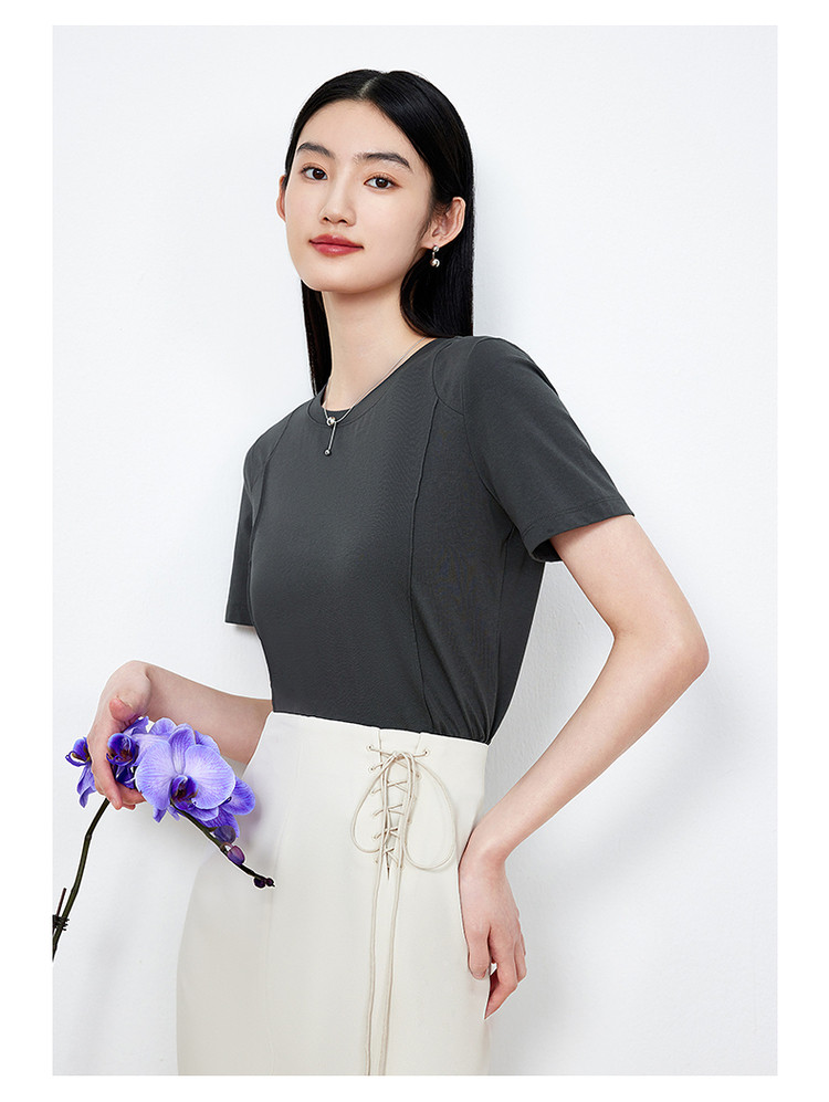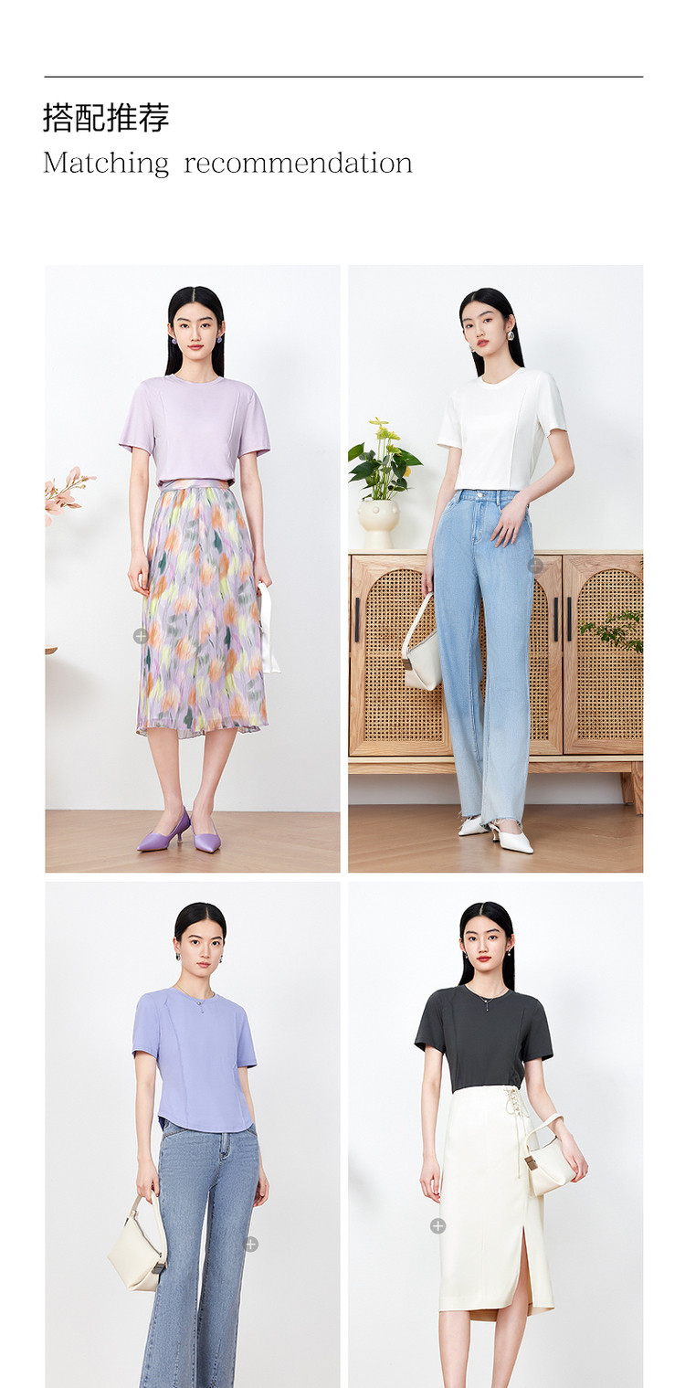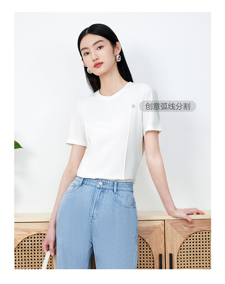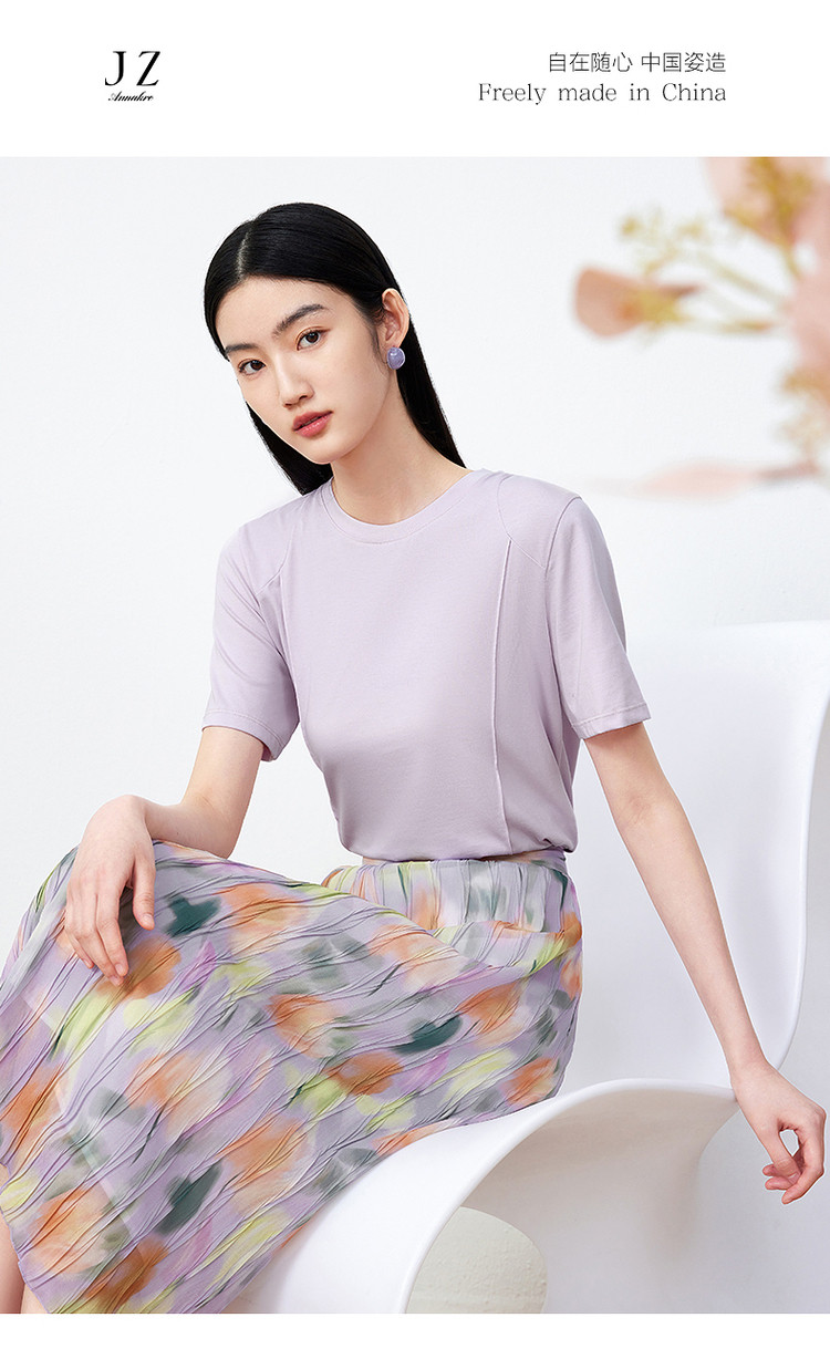 商品名称:玖姿旗下安娜蔻系列丝光棉T恤女装夏季纯色休闲套头短袖上衣 646092