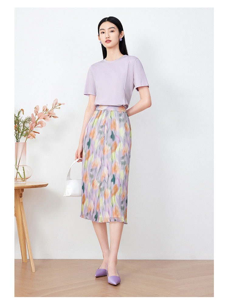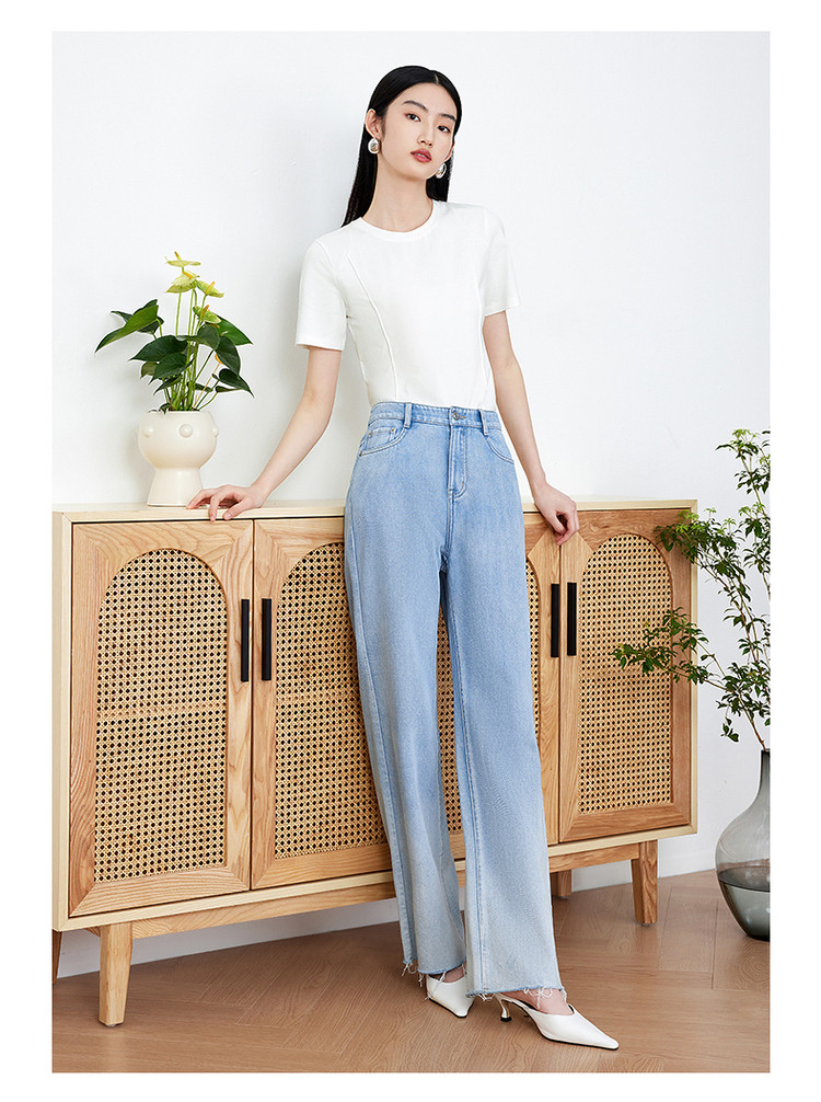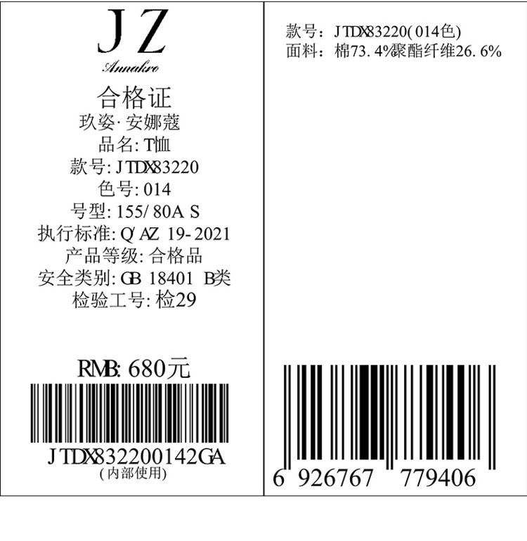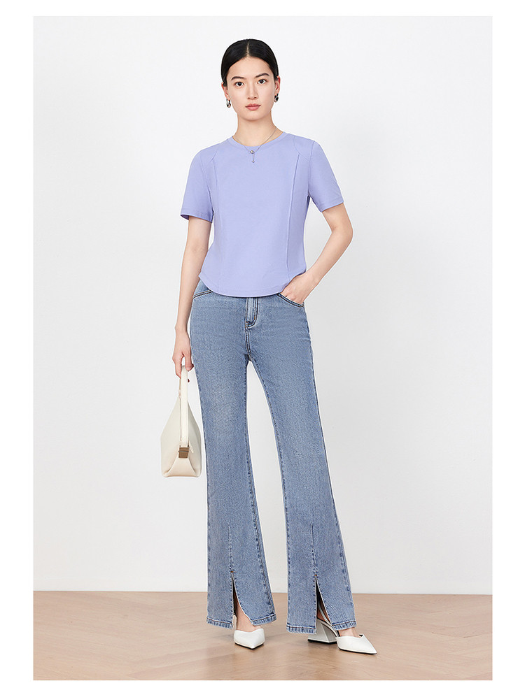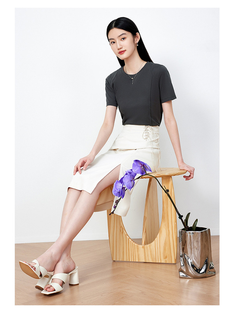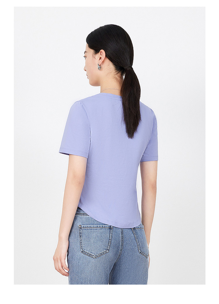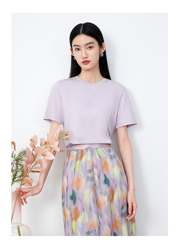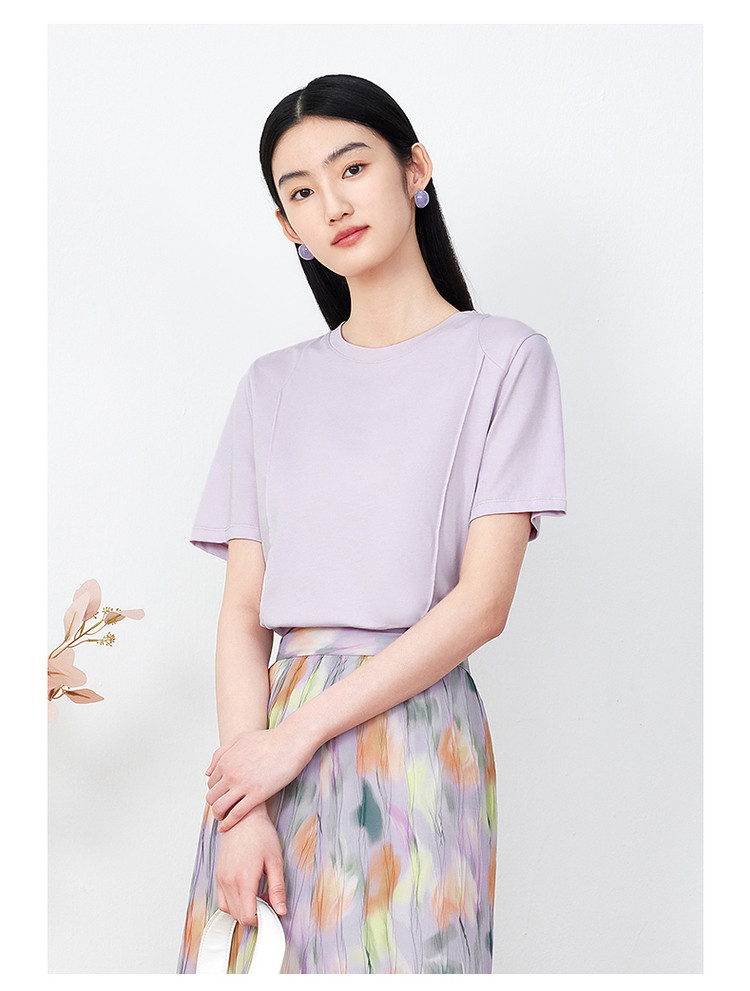 商品名称:玖姿旗下安娜蔻系列丝光棉T恤女装夏季纯色休闲套头短袖上衣 646092