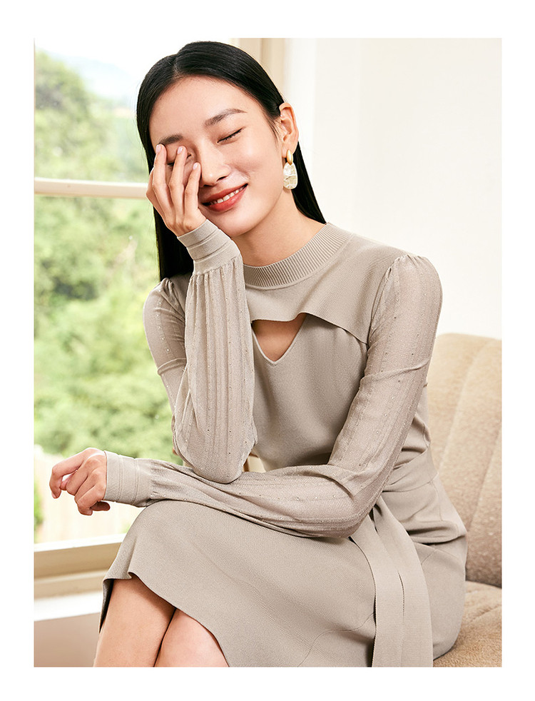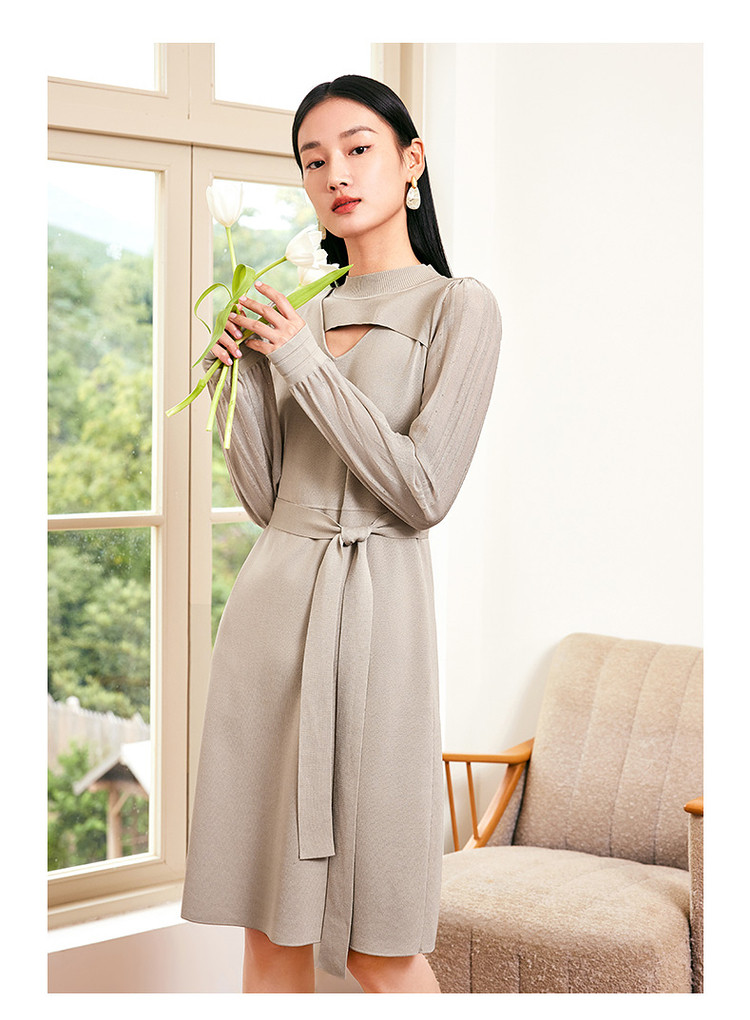商品名称:JZ玖姿毛衫连衣裙女装春季镂空设计感针织裙子 923916