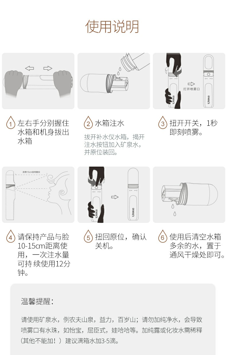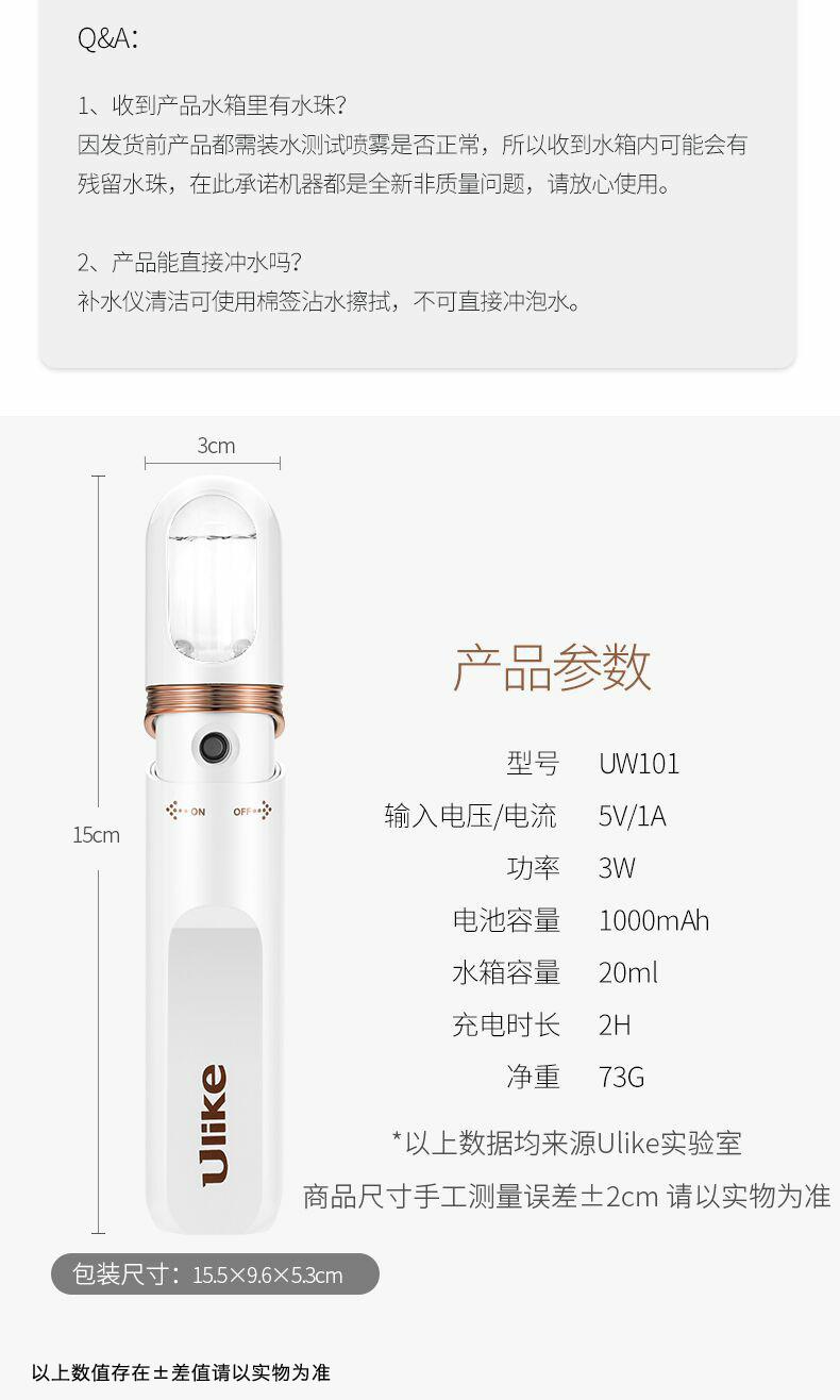 商品名称:Ulike 细雾迷你补水仪蒸脸器充电脸部小型便携式家用冷喷雾机器