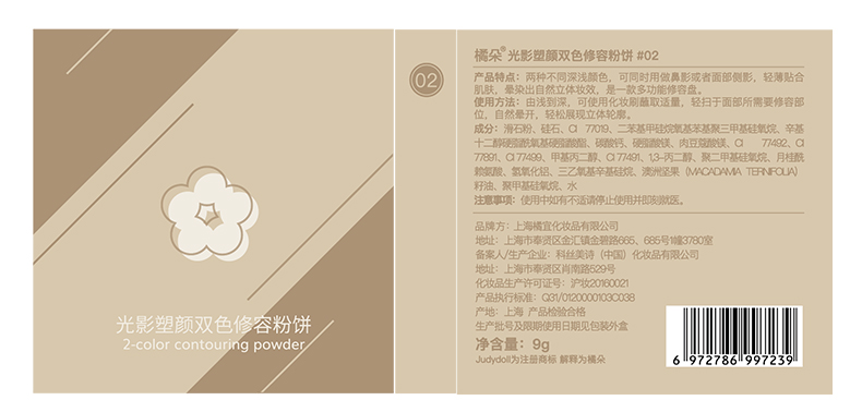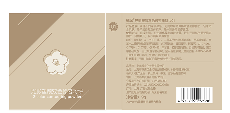 商品名称:Judydoll/橘朵 立体光影双色修容粉饼 9g