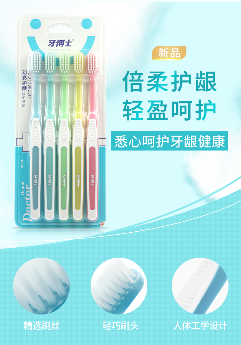 牙博士幻彩护龈软毛牙刷牙刷5支/卡*1