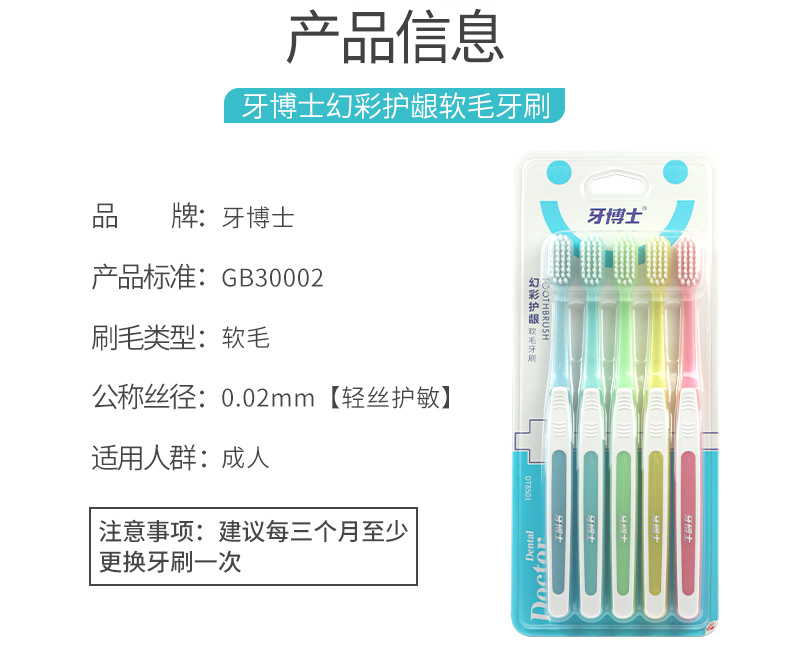 商品名称:牙博士幻彩护龈软毛牙刷牙刷5支/卡*1